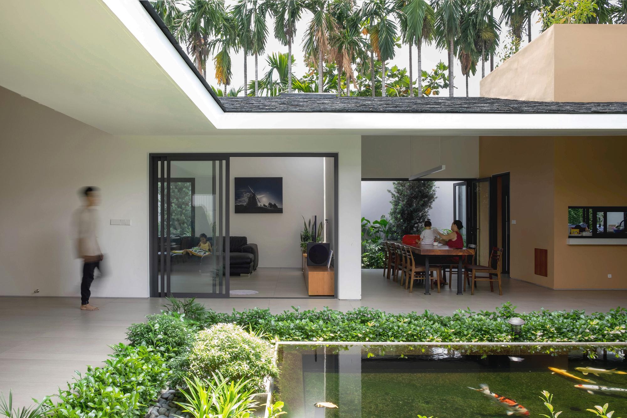 Mô tả văn bản do các kiến trúc sư cung cấp. Địa điểm nằm ở ngoại ô Thành phố Hồ Chí Minh, Việt Nam. Ngôi nhà là nơi sinh hoạt, vui chơi của một gia đình ba thế hệ. Ngôi nhà được thiết kế nhằm thích ứng với khí hậu nhiệt đới, tăng sự kết nối giữa con người với nhau và với thiên nhiên thông qua không gian sống bằng các giải pháp kiến trúc.