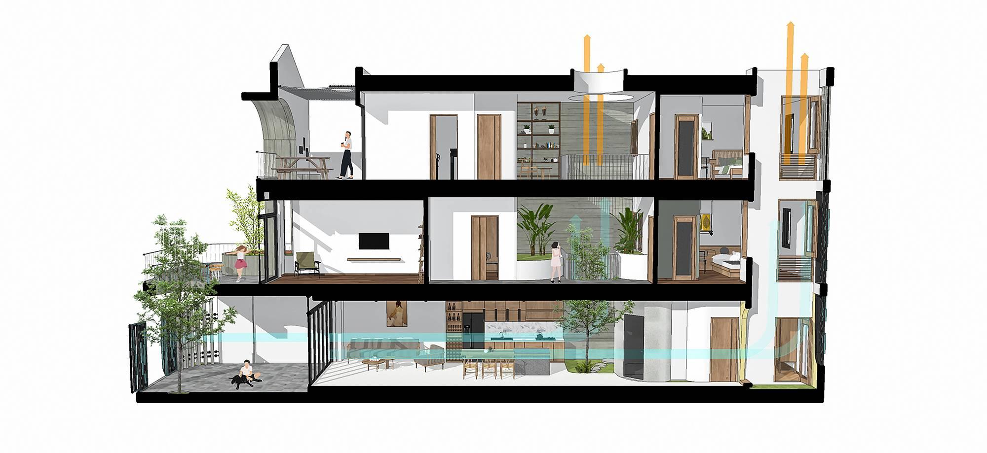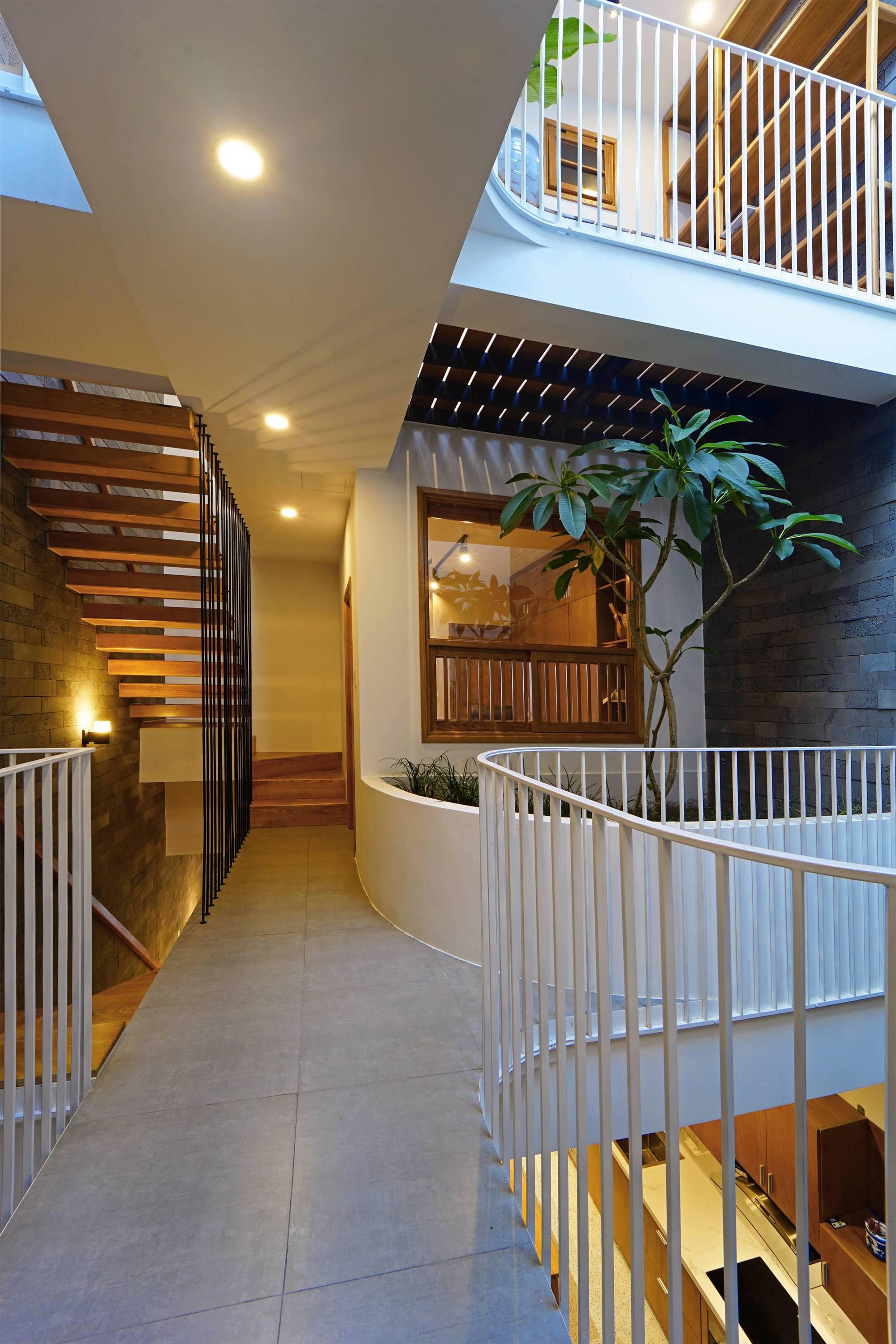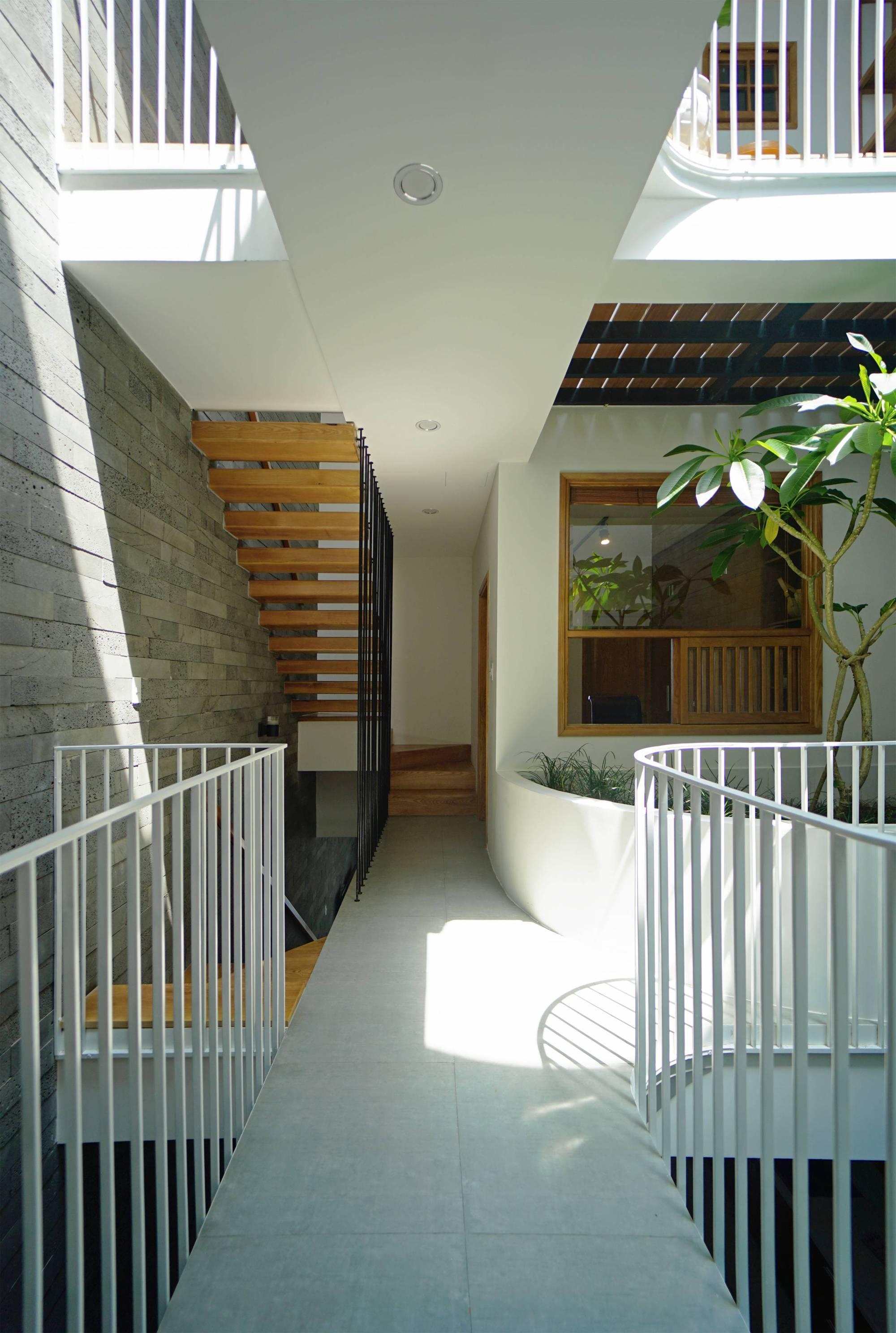 Với việc bố trí không gian chung ở tầng 1 và các không gian sân vườn, các KTS của chúng tôi mong muốn đẩy mạnh sự giao lưu, kết nối giữa những người sống trong nhà, tại các khoảng thông tầng mọi người có thể giao lưu với các không gian khác trong nhà. Từ đó khuyến khích các hoạt động chung của gia đình.