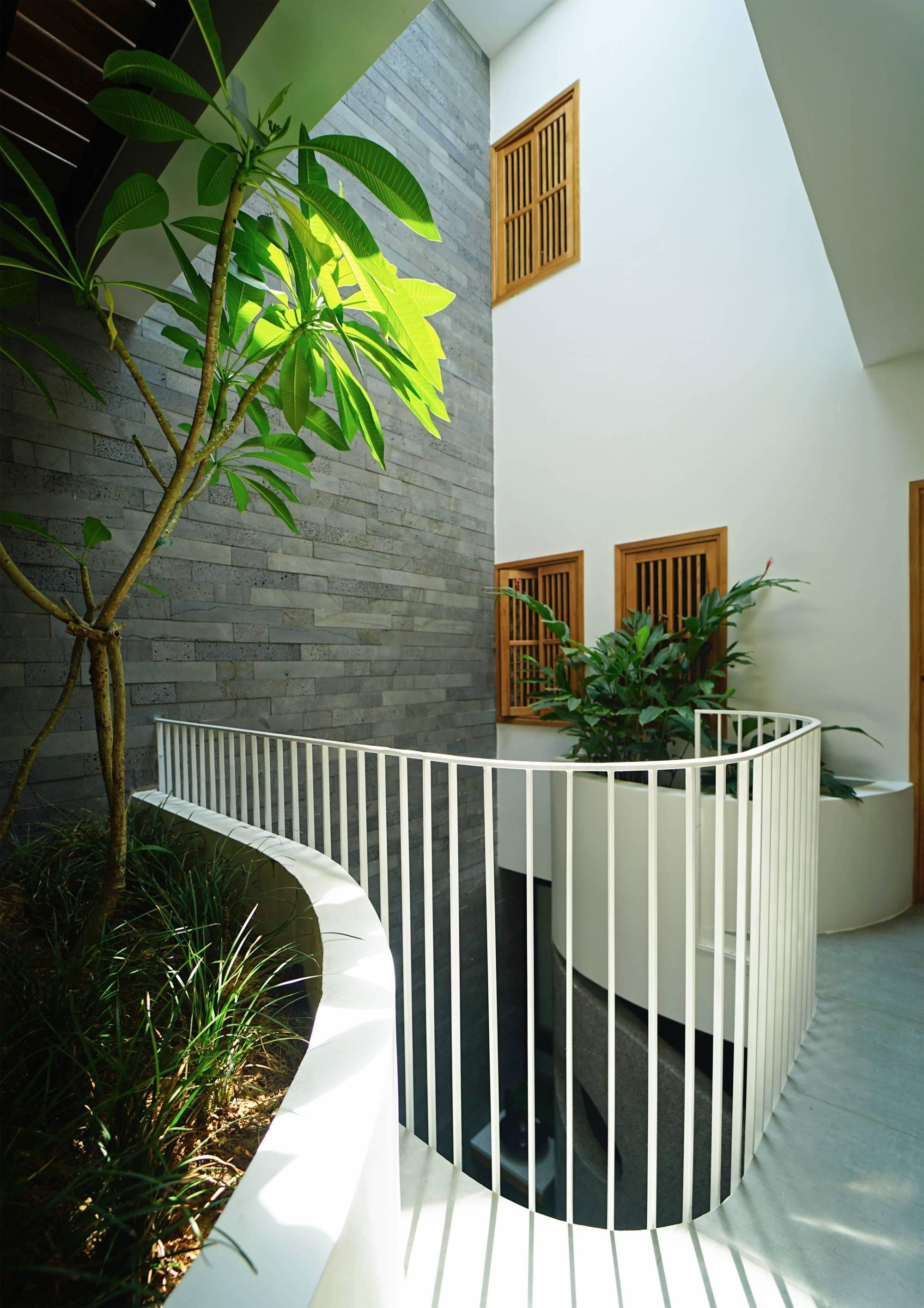 Ngoài ra, đan xen yếu tố cây xanh và thêm diện tích sân vườn vào từng khu vực lân cận của từng không gian sống, ngôi nhà như một sự kết nối liền mạch, không giới hạn giữa nhà và vườn - cảm giác bình yên.