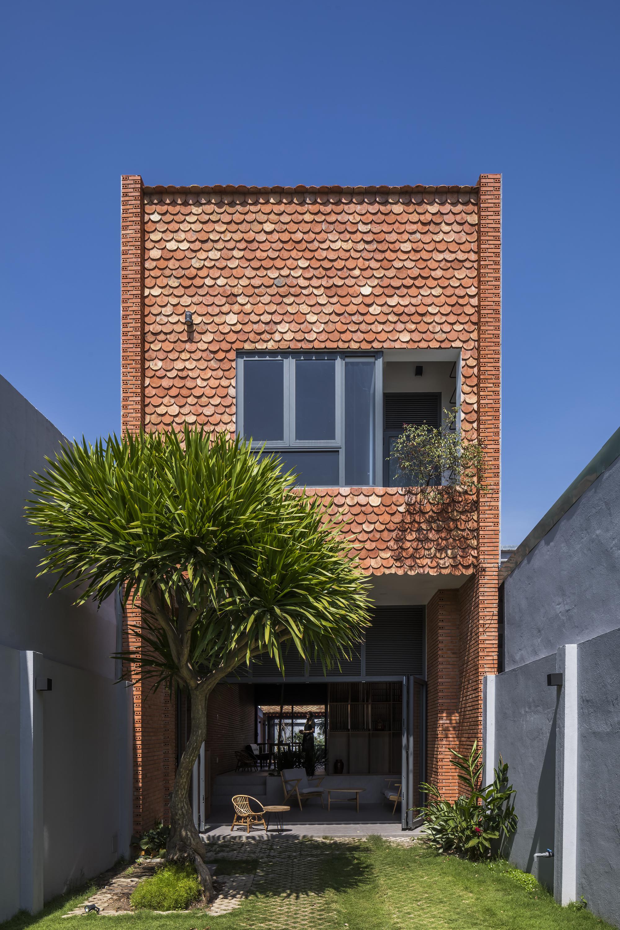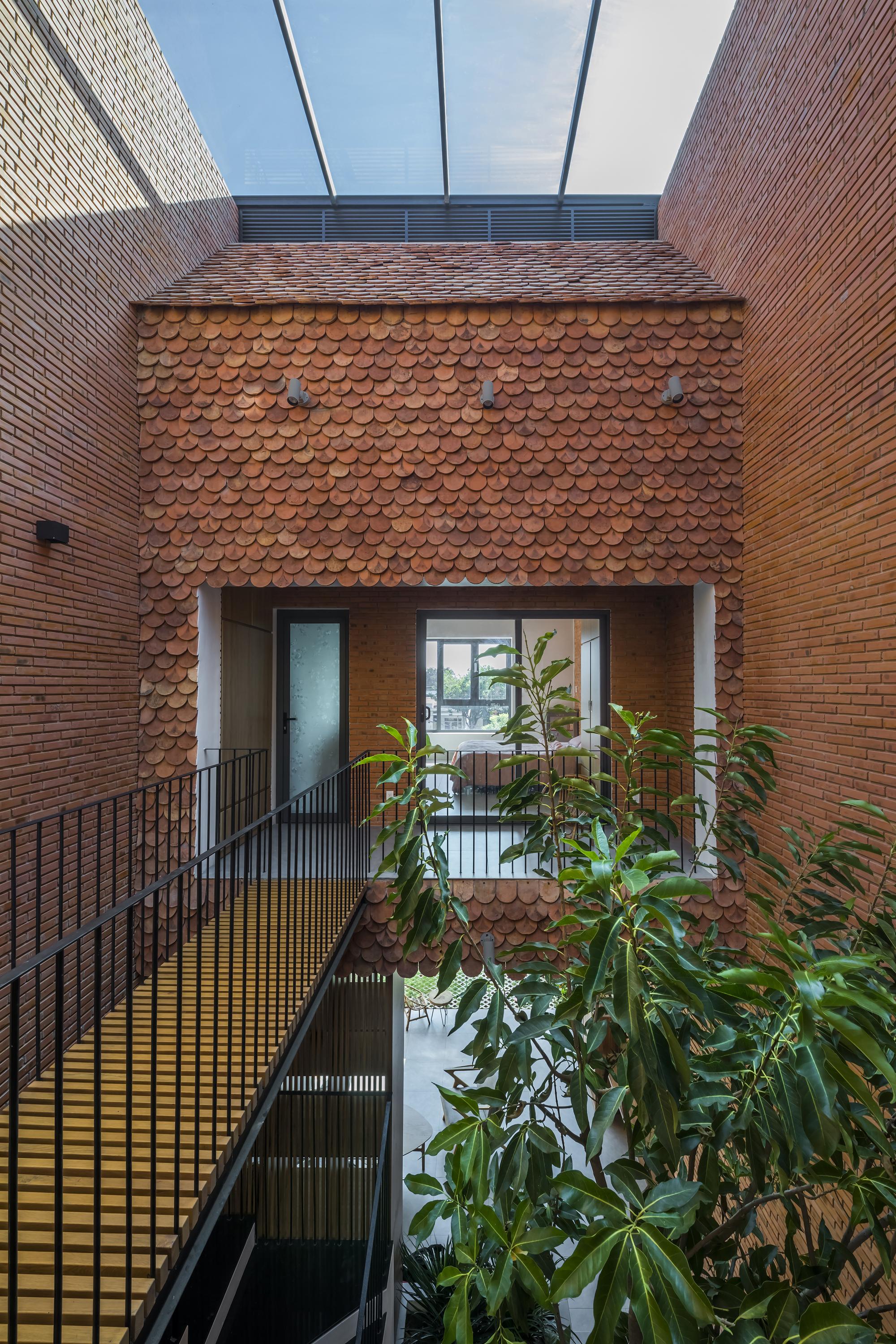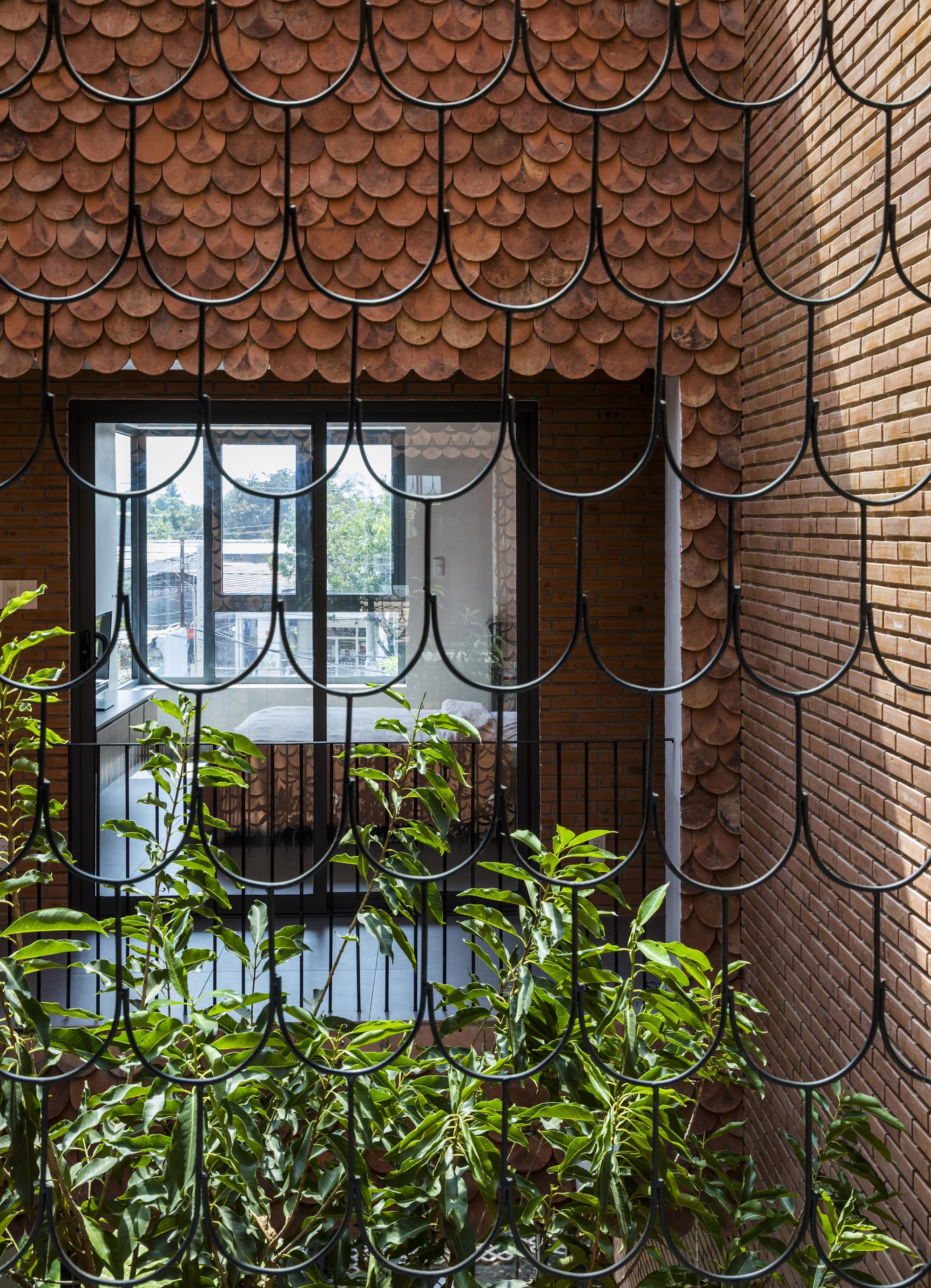 Ngoài việc xác định đủ nhu cầu xây dựng, việc sử dụng tường gạch thô còn giúp giảm chi phí hoàn thiện tường hay chi phí bảo dưỡng chống nứt, sơn, sửa tường hàng năm. Ngói vảy cá cũ được tái chế đã mang màu thời gian, cho ta cảm giác mộc mạc, gần gũi mà màu ngói mới khó có được. Hệ thống ngói vảy cá bao bọc bốn mái hiên trong và ngoài nhà tạo nên hình khối hài hòa với công năng sử dụng. Tất cả tạo nên một “hiên ngang bình yên” của riêng mình, một chốn bình yên lưu giữ mọi kỷ niệm của gia đình.