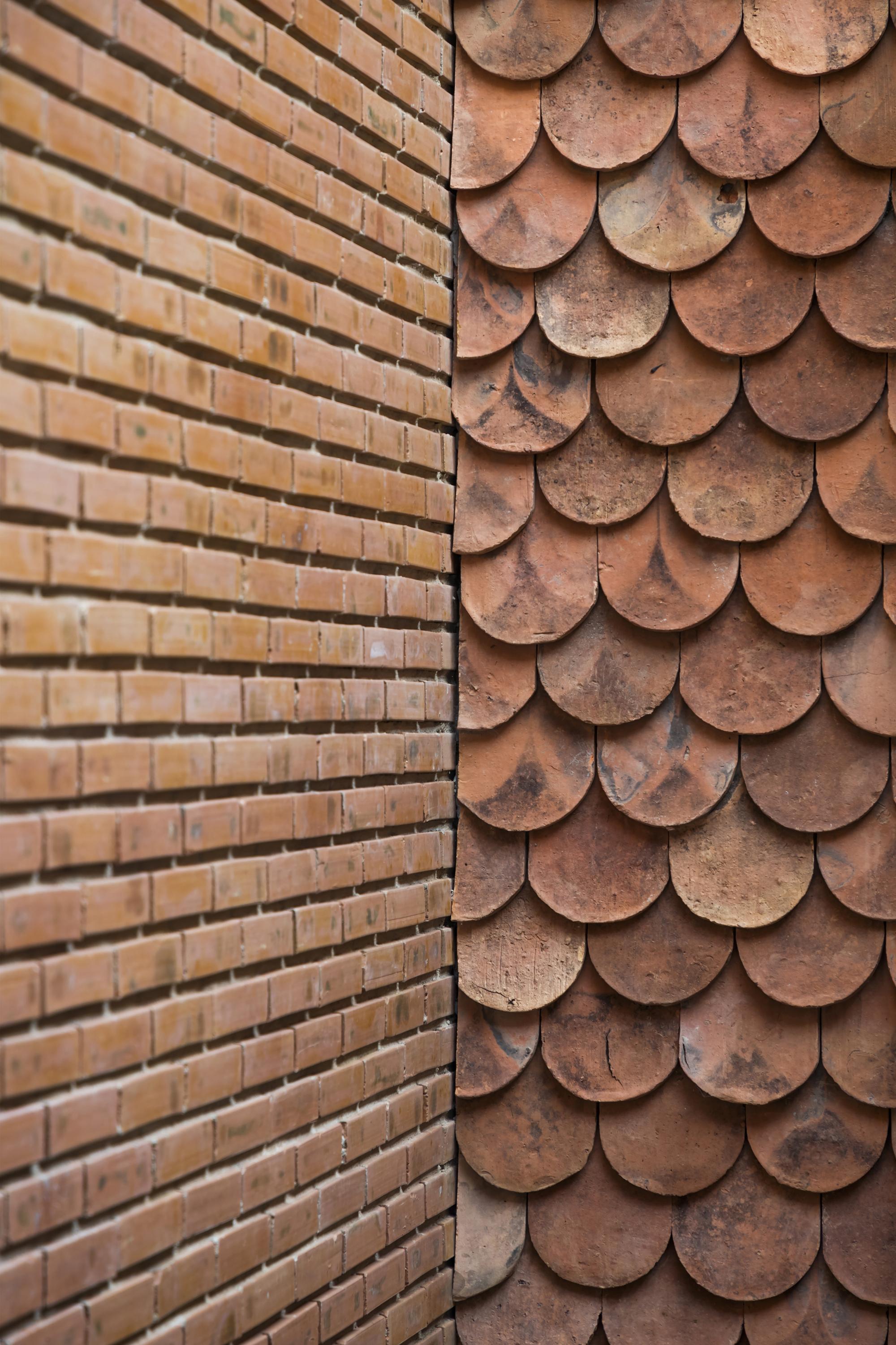 Về vật liệu, ngôi nhà được xây dựng chủ yếu bằng gạch thường đỏ và ngói vảy cá cũ, gần gũi với thiên nhiên, mang lại cảm giác riêng biệt và phù hợp với tinh thần của công trình. Gạch thô, không trát xi măng đã qua xử lý mang lại cảm giác ấm cúng, giản dị nhưng vẫn tạo được cảm xúc mạnh mẽ, đảm bảo mỹ quan và vệ sinh sử dụng.