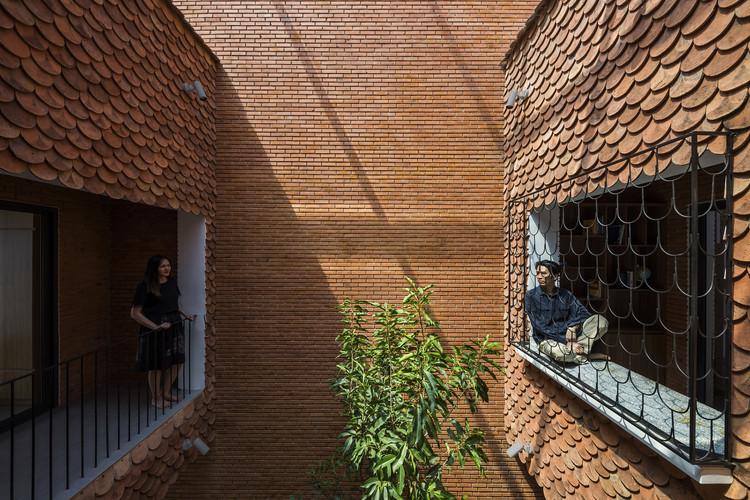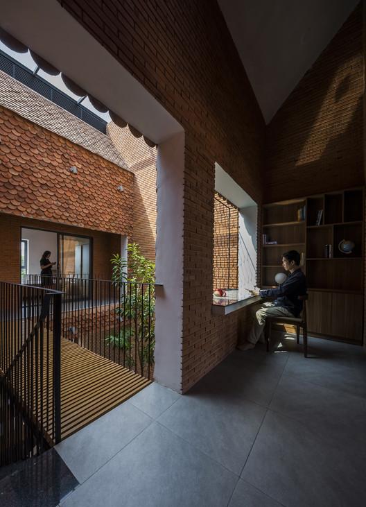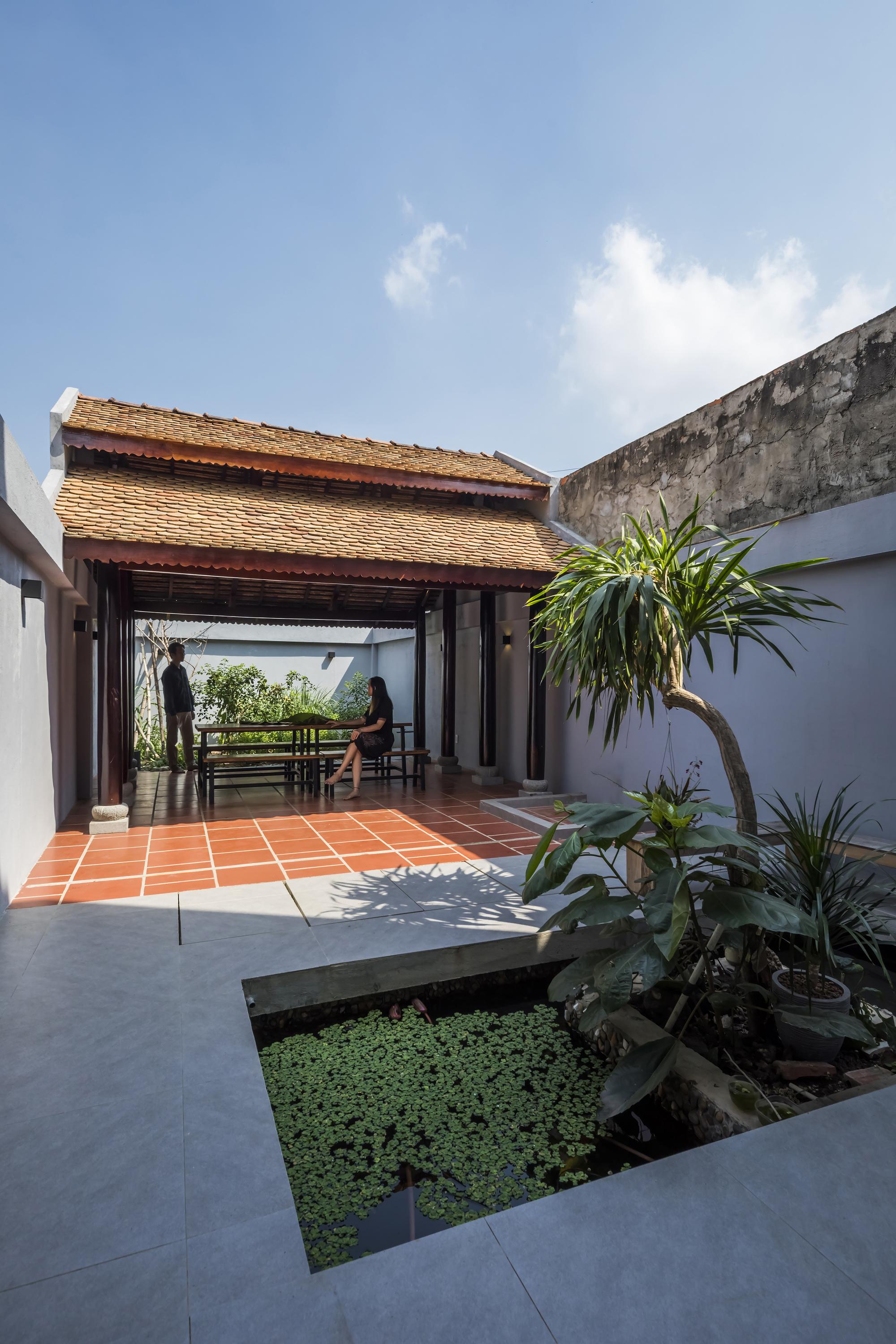 Trong ký ức của nhiều người, mái hiên không chỉ là không gian chuyển tiếp giữa trong và ngoài nhà, che nắng, che mưa, đón gió mát mà còn là nơi con cháu ngồi đợi bánh của bà ngoại. đi chợ về, nơi các bà các mẹ nhặt rau hay cả gia đình quây quần gói bánh chưng đón Tết ở Việt Nam. Trong ngôi nhà ở Tây Ninh này, ngoài hai mái hiên được bố trí ở phía trước và sau nhà, bên trong ngôi nhà còn có hai mái hiên khác, xung quanh là những viên ngói vảy cá cũ được tận dụng lại từ ngôi nhà cũ, tạo nên cảm xúc cho đây. không gian cụ thể.