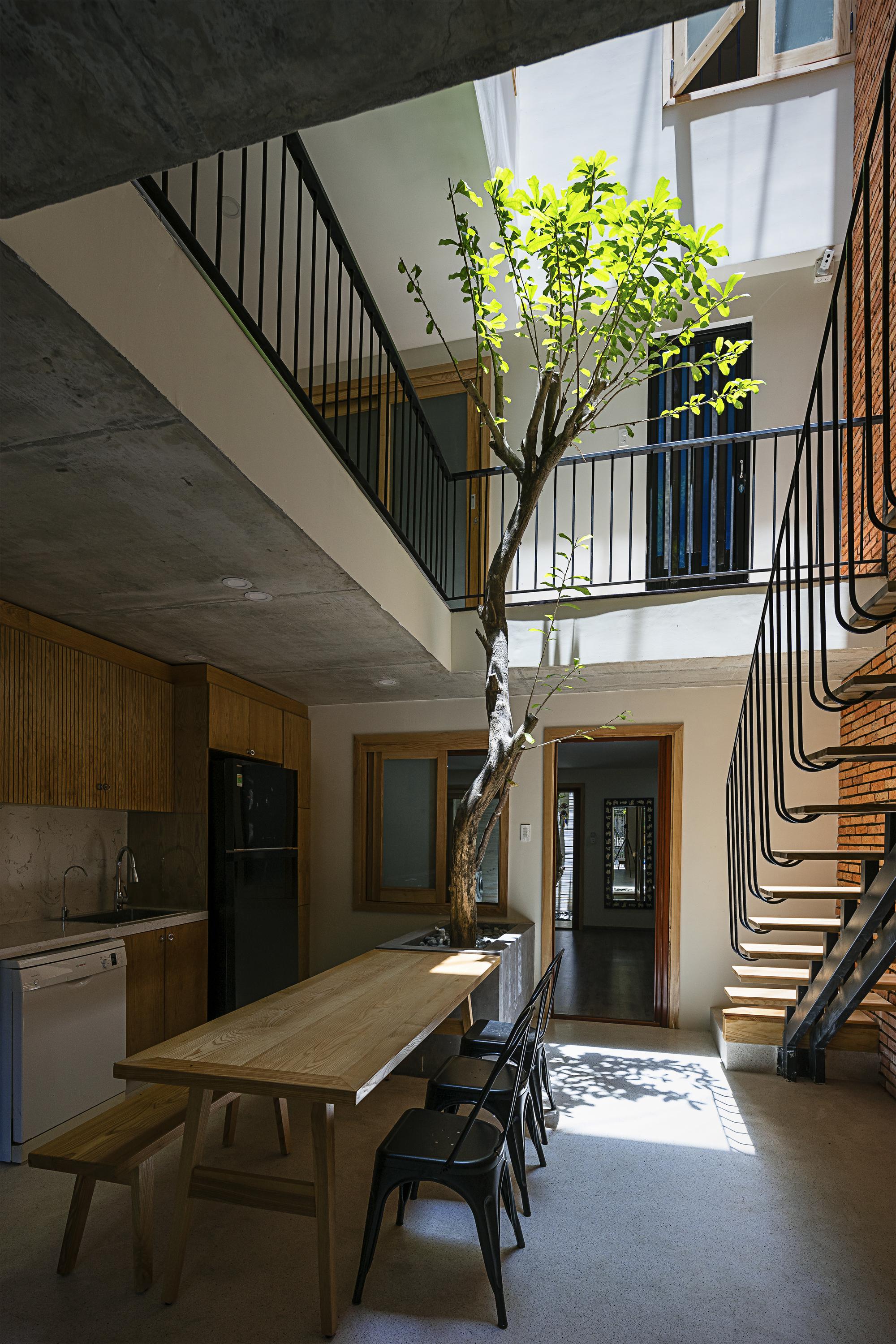 - Cây xanh là một phần không thể thiếu trong ngôi nhà. Nó được coi là điểm nhấn cho các khoảng thông tầng và giúp tạo cảm giác thư thái, thông thoáng trong ngôi nhà có diện tích nhỏ. Hơn hết, cây xanh trong nhà có thể được xem là sợi dây liên kết giữa các tầng nên các thành viên trong gia đình vẫn có thể nhìn thấy nhau và trò chuyện trong một không gian đóng mở như thế này.
