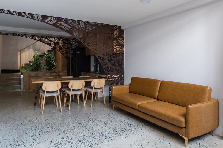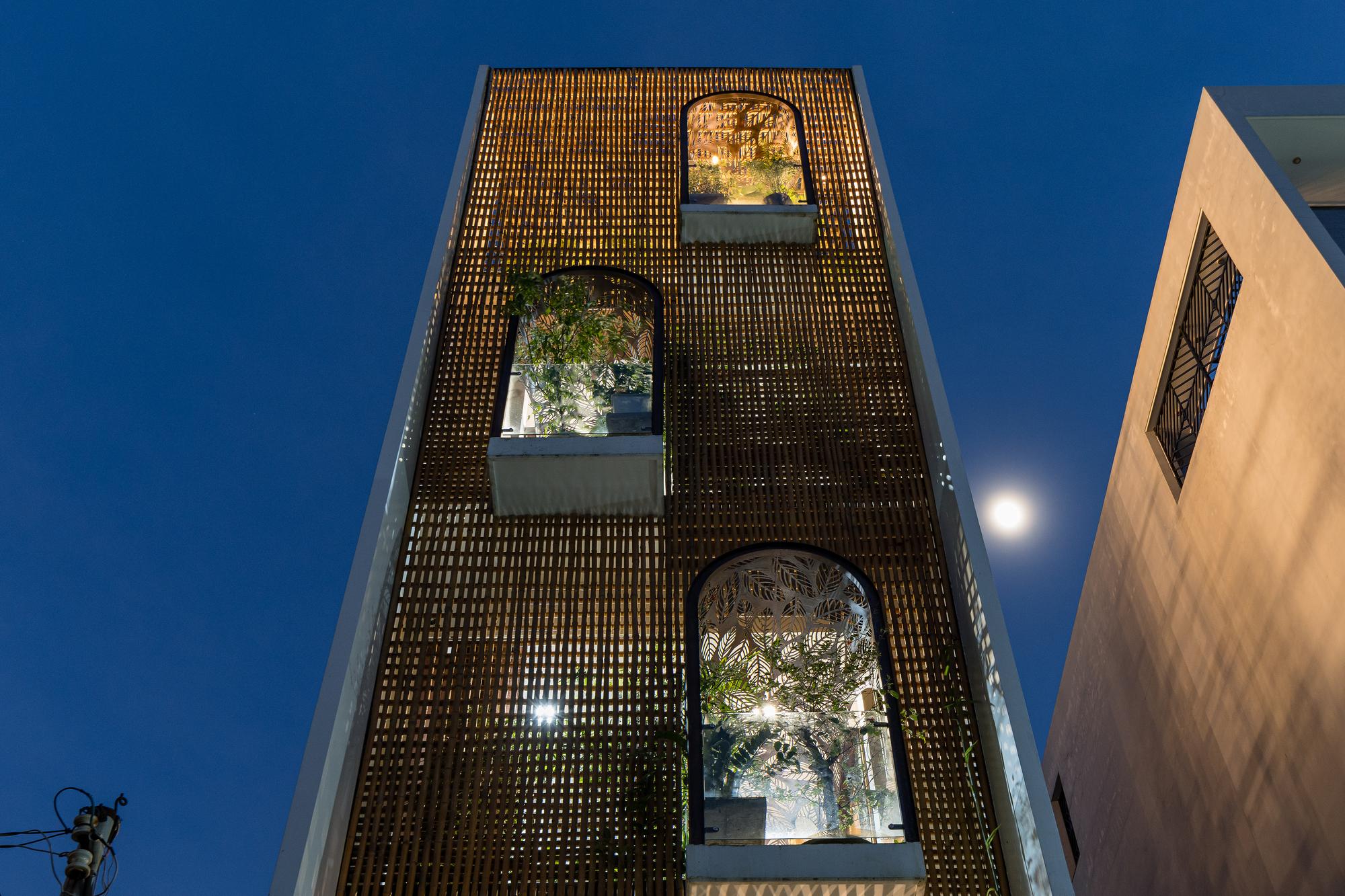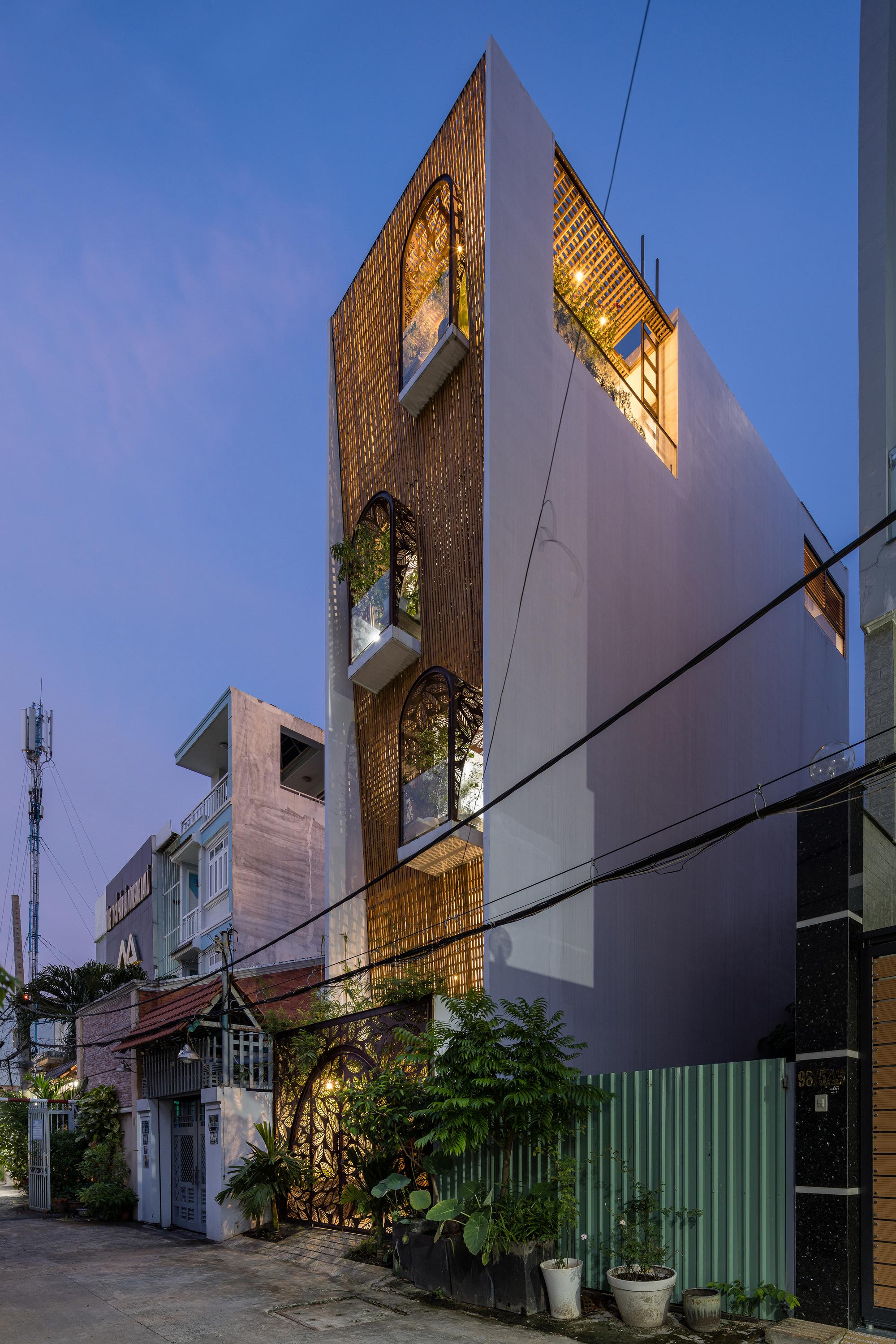 Những chiến lược khác biệt này khiến toàn bộ ngôi nhà có cảm giác nhẹ nhàng, như đang lơ lửng trong một không gian xanh rộng lớn và ngập tràn ánh sáng. Khi mặt trời lặn, ánh sáng từ trong nhà chiếu qua những kẽ hở giữa những lũy tre và những vết cắt trên vách sắt khiến ngôi nhà như một chiếc đèn lồng giữa xóm.
