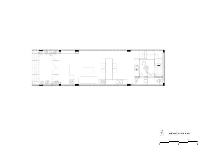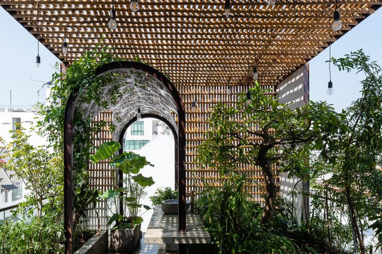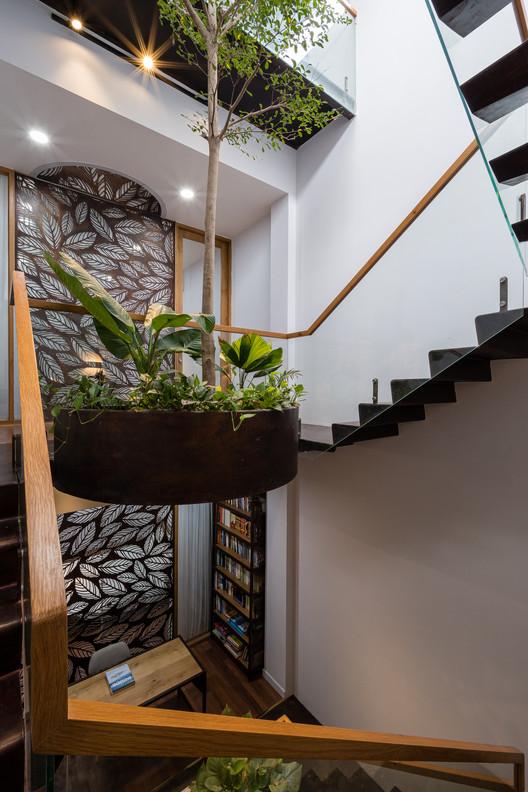 Mô tả văn bản do các kiến trúc sư cung cấp. Floating Nest, cũng giống như nhiều ngôi nhà ống khác ở Sài Gòn, tọa lạc trên một lô đất hẹp (4x12m) trong khu dân cư đông đúc của thành phố, bị các công trình lân cận chắn 3 mặt, chỉ có một mặt hướng ra bên ngoài, chưa về hướng. phía tây. Đến với NgNg, cô chủ đam mê làm vườn mong muốn hơn hết là một không gian thoáng đãng, thư thái sau một ngày làm việc mệt mỏi, với những mảng xanh dồi dào để thỏa mãn sở thích về quê.