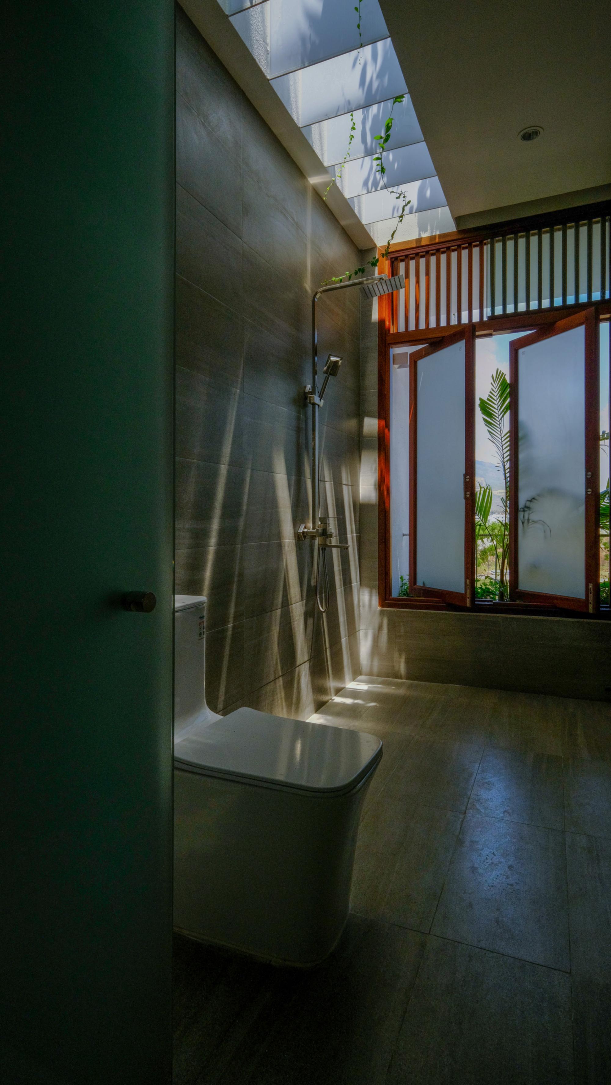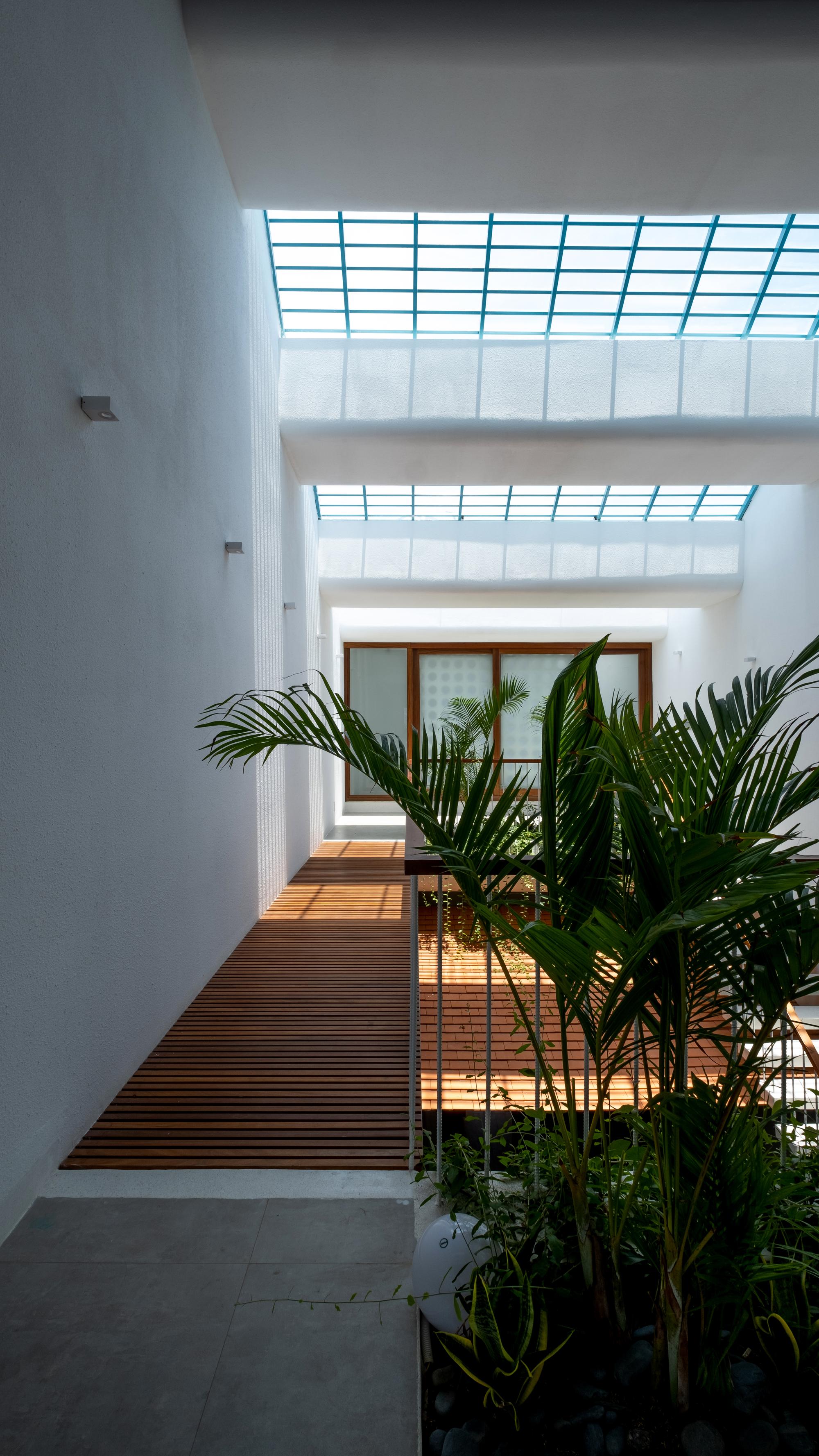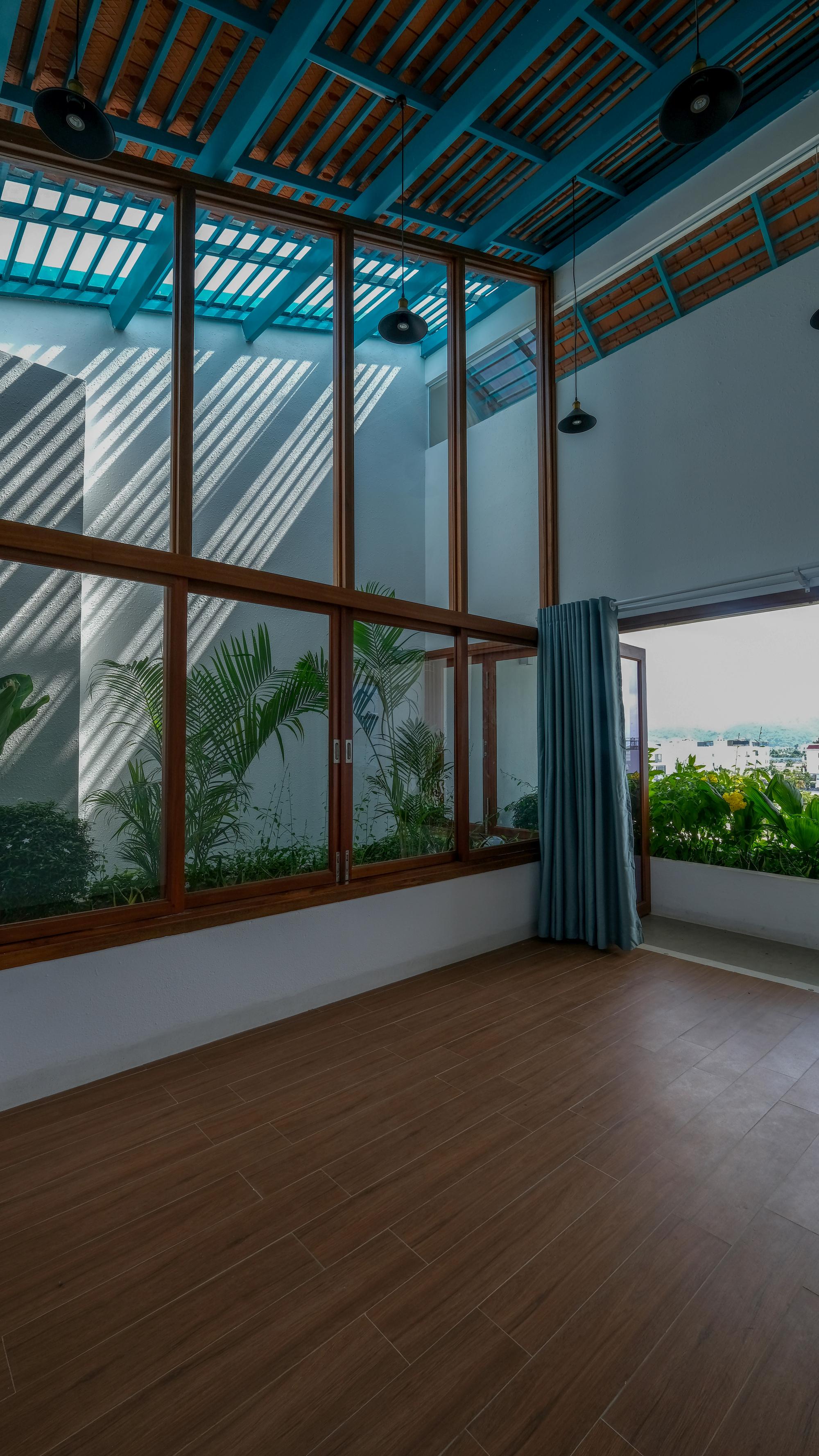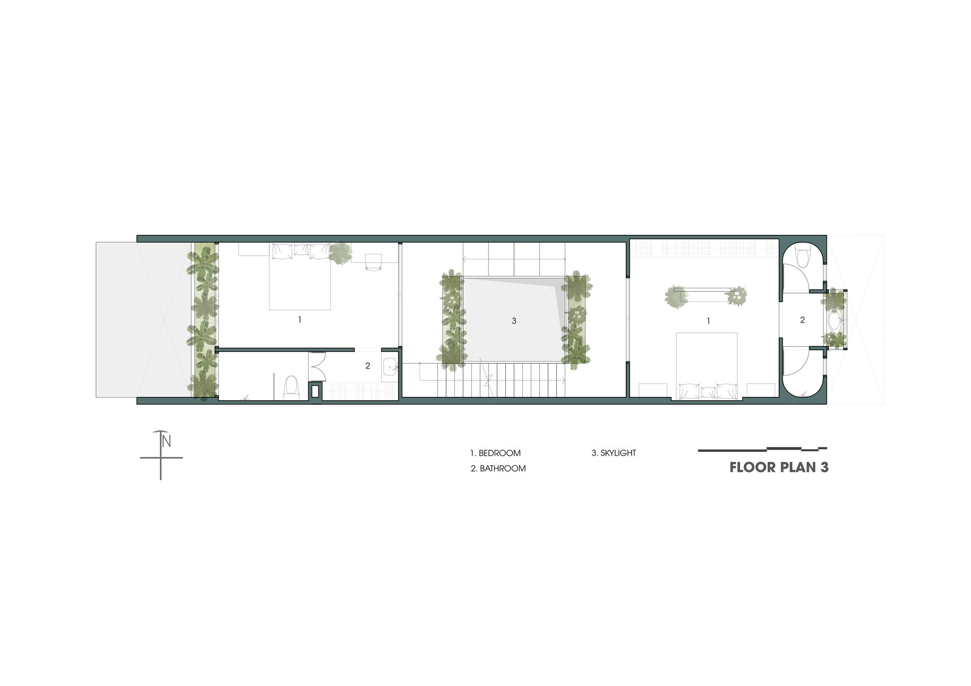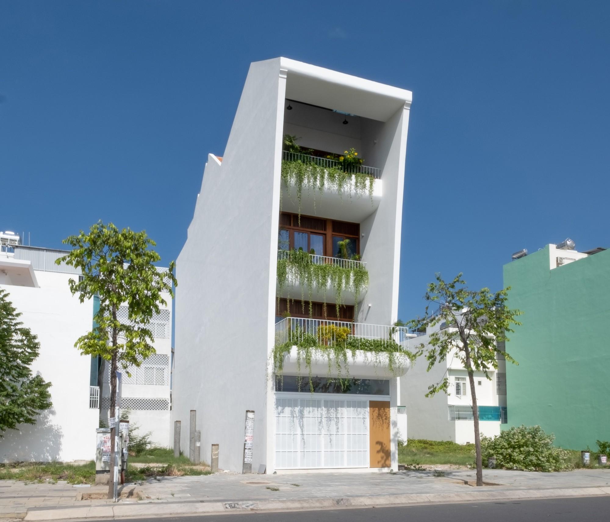 Không gian bậc thang và hệ thống mái thái tạo nên những khu vườn thông tầng liên hoàn, có khoảng lùi sâu che chắn nắng nóng buổi trưa. Từ mỗi phòng ngủ, mọi người cảm nhận được ánh nắng ban mai chiếu qua những tán lá xanh mướt bên những khung cửa lớn. Với hành lang công cộng, ban công, chúng tôi muốn tạo ra một số khoảng thông tầng giữa không gian chung và không gian riêng. Đó là sự chuyển đổi ánh sáng, không gian thiên nhiên, tầm nhìn và sự kết nối của con người trong các không gian vừa mở, vừa bao trùm, vừa riêng tư và nhạy cảm.