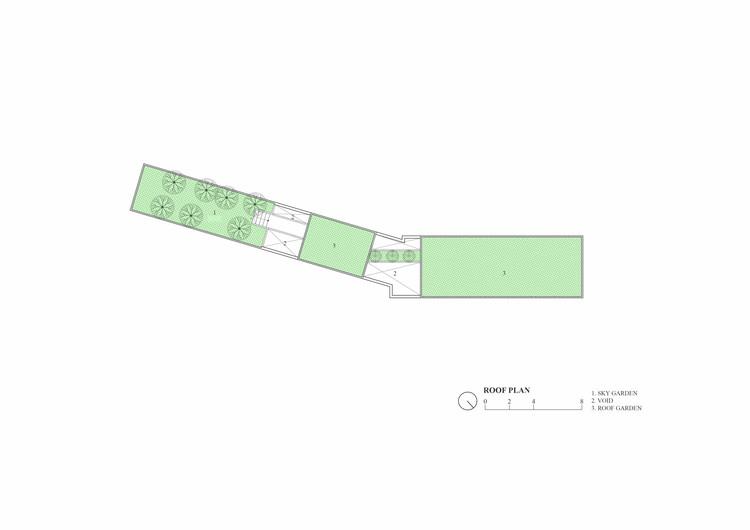 Ý tưởng và giải pháp thiết kế của "Ngôi nhà xanh" bao gồm một không gian tầng 4 với một "khu vườn trên bầu trời" mở với cây cao và cỏ tươi tốt, muốn đặt một không gian xanh vào một ngôi nhà phố nằm trong một khu vực ồn ào và chật chội.