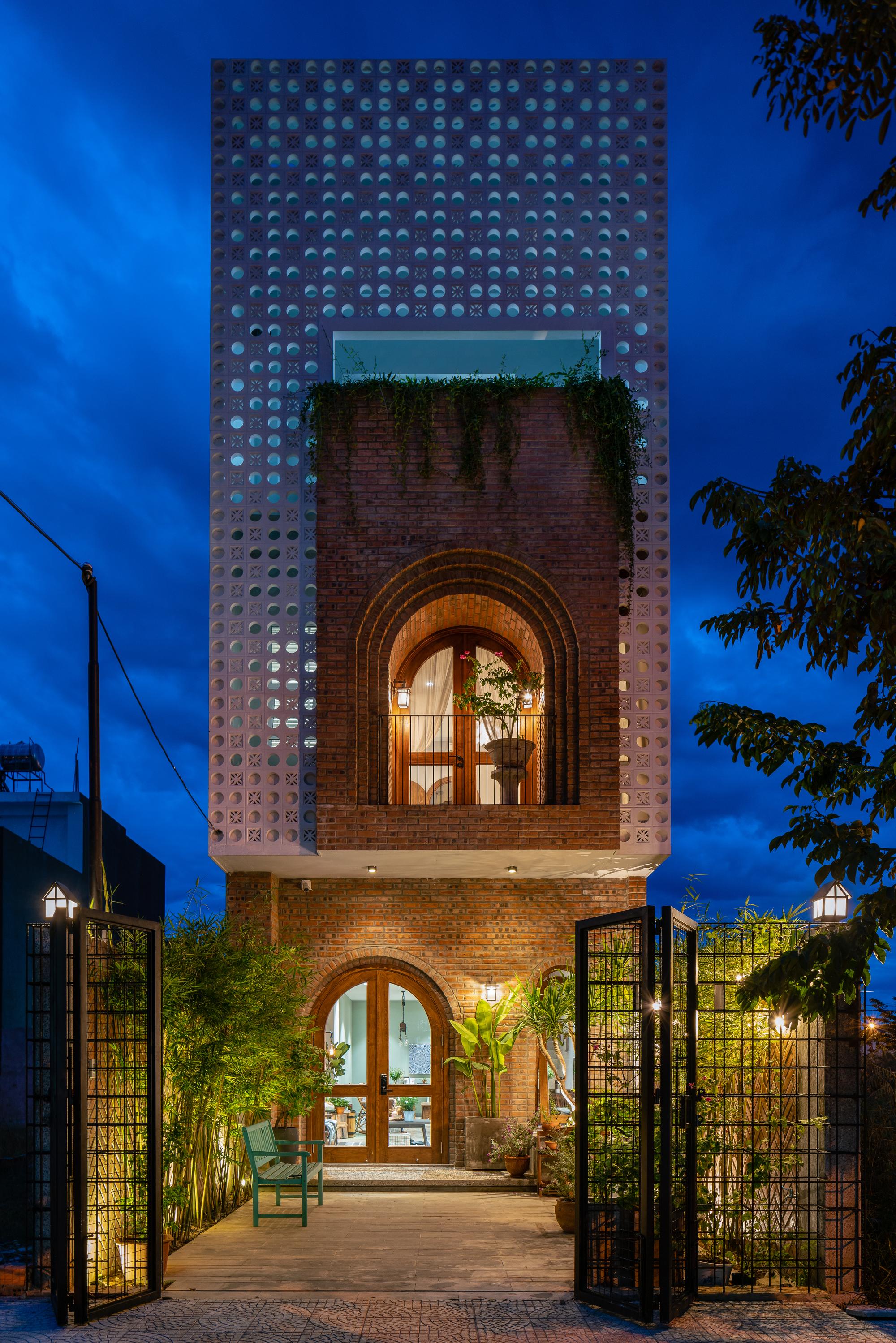 Ngôi nhà càng lộng lẫy và thu hút mọi ánh nhìn khi lên đèn vào ban đêm bởi màu sắc hài hòa. Tính thẩm mỹ của ngôi nhà được tạo nên bởi sự sắp đặt khéo léo của hàng trăm bông hoa gió, kết hợp với những mảng tường thô giúp lấy sáng vào bên trong và mở rộng tối đa tầm nhìn ra bên ngoài. Với thiết kế độc đáo, nội thất gần gũi với thiên nhiên, ngôi nhà chắc chắn sẽ mang đến cho bạn những trải nghiệm thú vị.