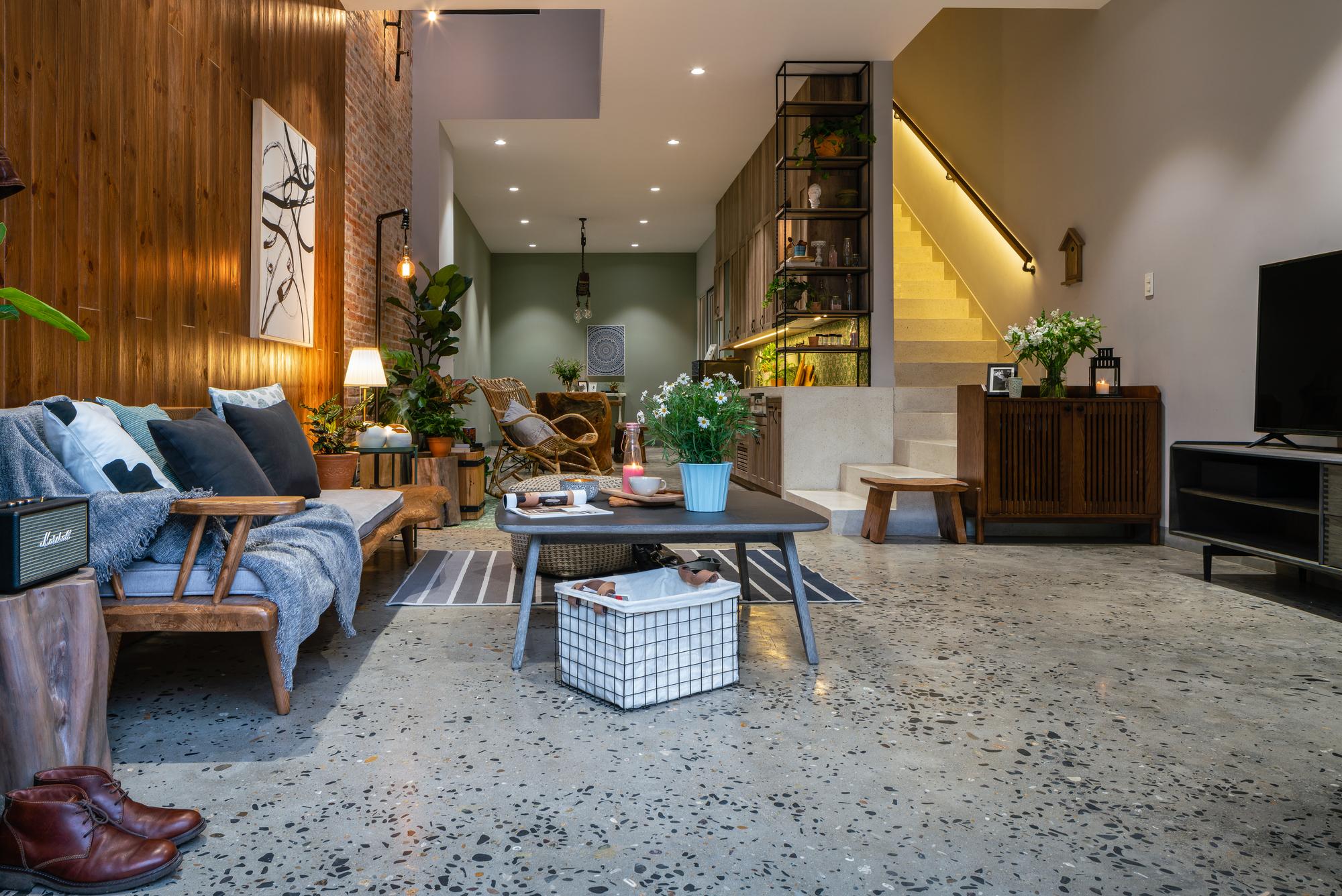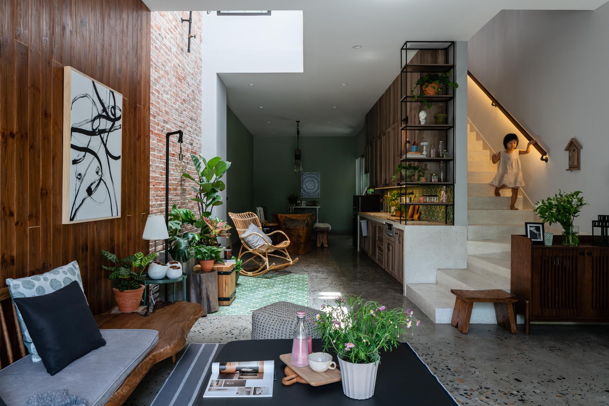 Phòng khách khá rộng rãi, được trưng bày nội thất bằng gỗ tự nhiên, hài hòa với năng lượng xanh của những chậu cây nhỏ do mỗi thành viên trong gia đình tự trồng. Với mong muốn không chỉ xây dựng một ngôi nhà để ở mà còn là nơi để xây dựng tình yêu thương, tình thân và lưu lại những khoảnh khắc đẹp bên nhau.