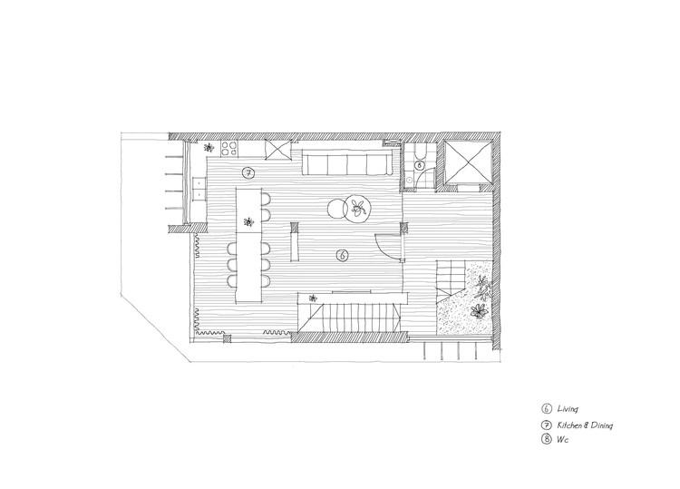 Mô tả văn bản do các kiến trúc sư cung cấp. Ngôi nhà hiện tại là một ngôi nhà phố 5 tầng được xây dựng từ những năm 2000 tại một ngã tư của những con phố sôi động của Hà Nội . Góc phố là sự giao thoa vô thức của những cuộc hành trình và những cá thể khác nhau tạo nên khung cảnh đáng sống. Chủ nhân ngôi nhà là một phụ nữ trung niên, sinh ra và lớn lên tại Hà Nội . Cô ấy thích cuộc sống hàng ngày diễn ra trong khu vực.