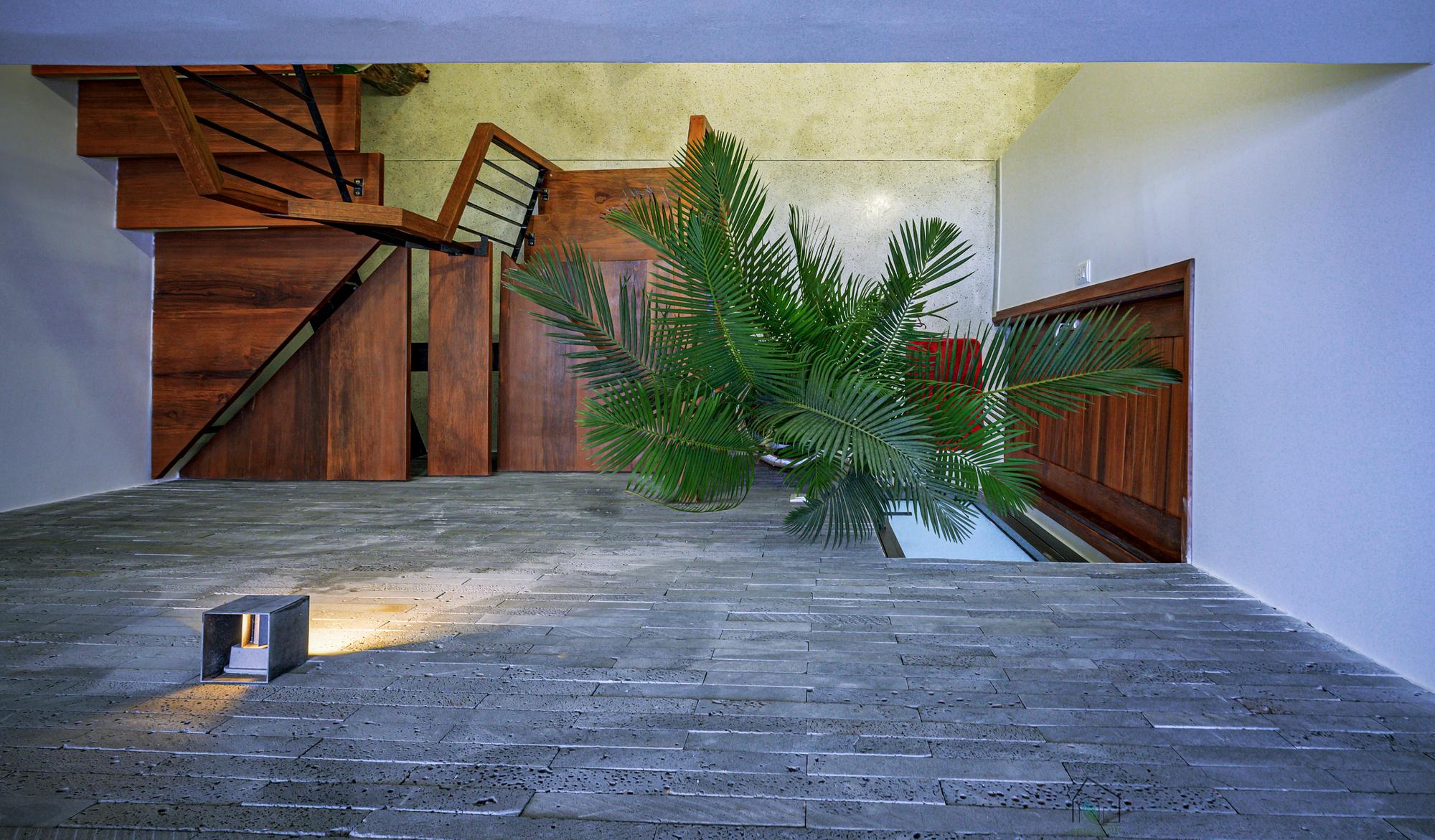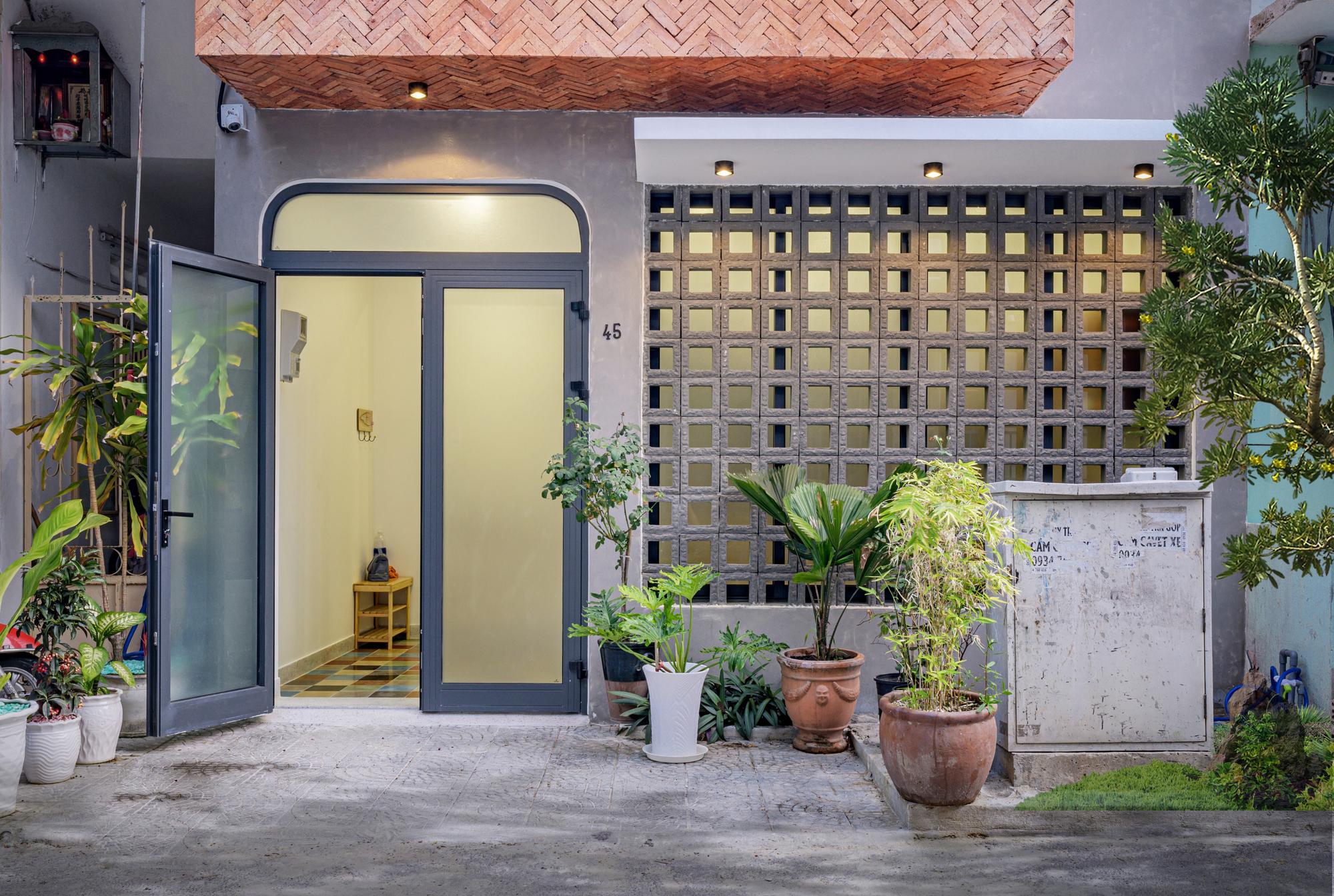 Như vậy, với những yêu cầu đưa ra, chúng tôi đã kết hợp cây trồng với những vật liệu có màu sắc thô mộc như: Tone màu đỏ gạch, tường xi măng bên ngoài để sơn ngoại thất tự nhiên và mộc mạc. Điểm nhấn chính của nội thất là gỗ; Bức tường được sơn tone màu trắng giúp không gian trở nên rộng và sang trọng hơn. Bài toán kinh tế là điểm mà chúng tôi tâm đắc nhất trong thiết kế của 45 House. Vì chi phí xây nhà rất hợp lý cho đôi vợ chồng trẻ. Đồng thời, mặt tiền của ngôi nhà cũng khác biệt và nổi bật trong con hẻm nhỏ.