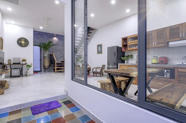 Mô tả văn bản do các kiến trúc sư cung cấp. Ngôi nhà nằm giữa con hẻm nhỏ với mảnh đất chỉ 50m2, là sự giao thoa nhẹ nhàng giữa kiến trúc hiện đại pha chút hoài cổ… Căn nhà gồm 3 phòng ngủ, phòng khách, bếp và sân chơi nhỏ. Tuy diện tích khá hạn chế nhưng không gian nhà vẫn tràn ngập ánh sáng và tạo cảm giác gần gũi với thiên nhiên. Bên cạnh đó, phòng khách còn là nơi gắn kết các thành viên trong gia đình tạo cho họ không gian hàn huyên tâm sự cùng nhau. Đôi khi đó cũng là một góc gợi nhớ tuổi thơ với những món đồ cũ. Nó khiến họ nhớ nhất những người thân yêu của mình…