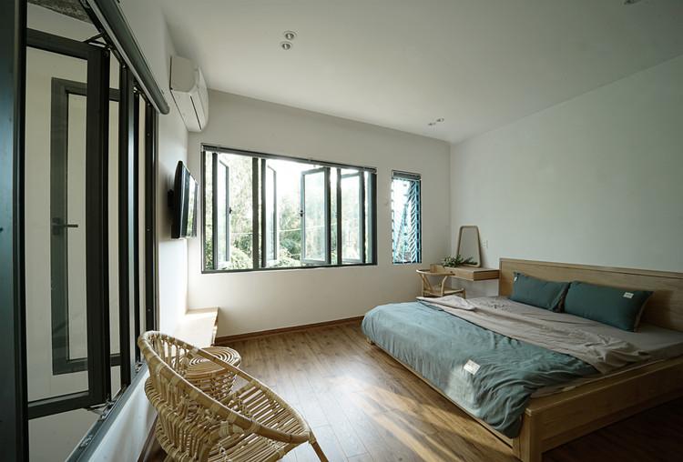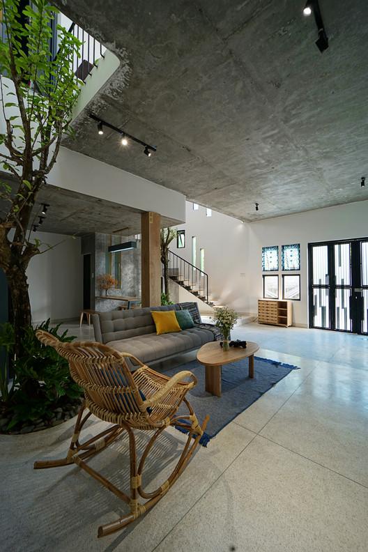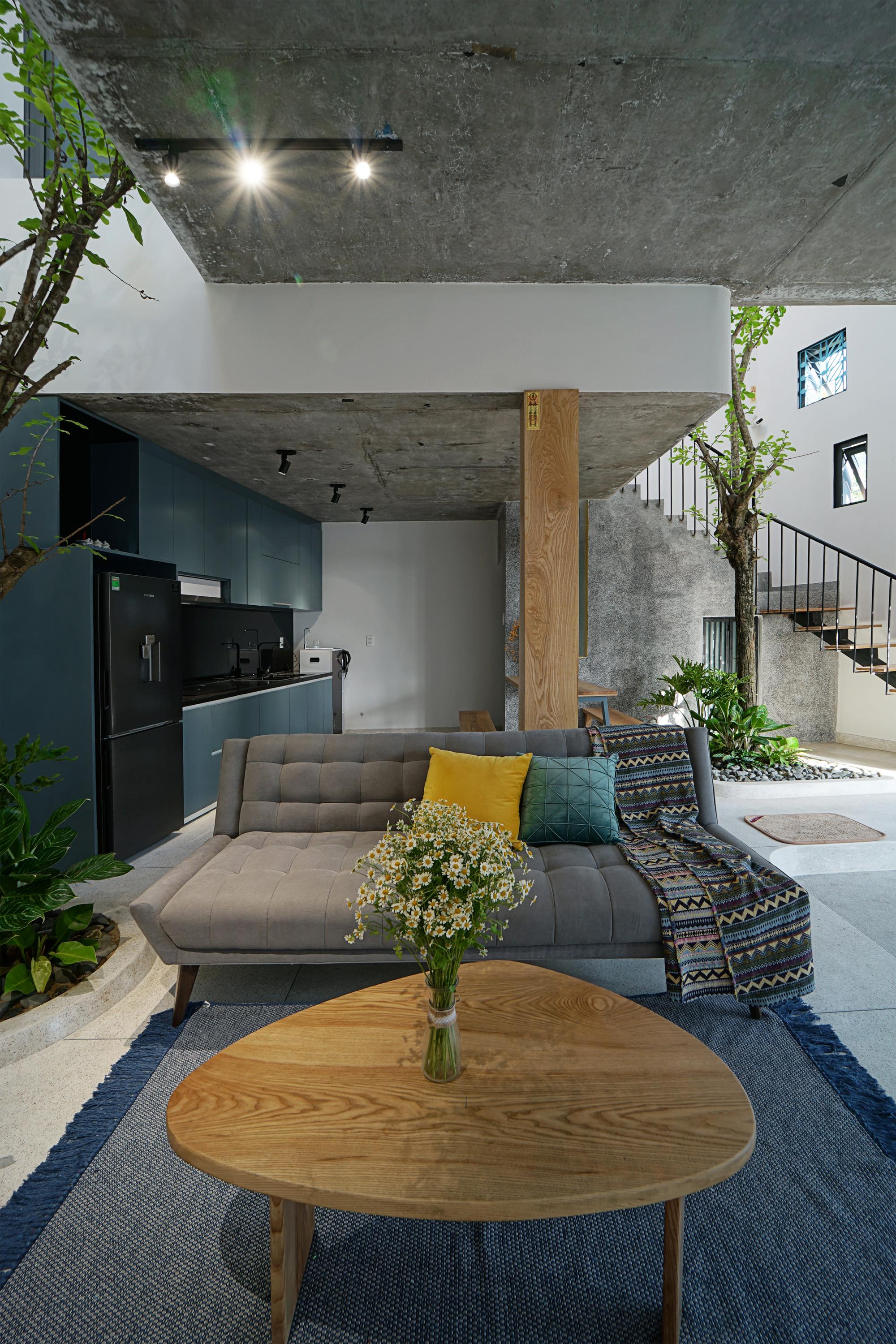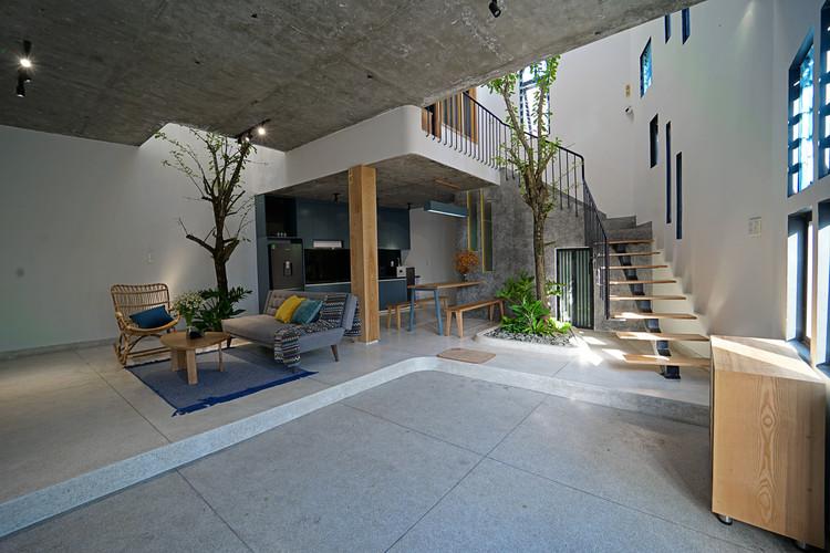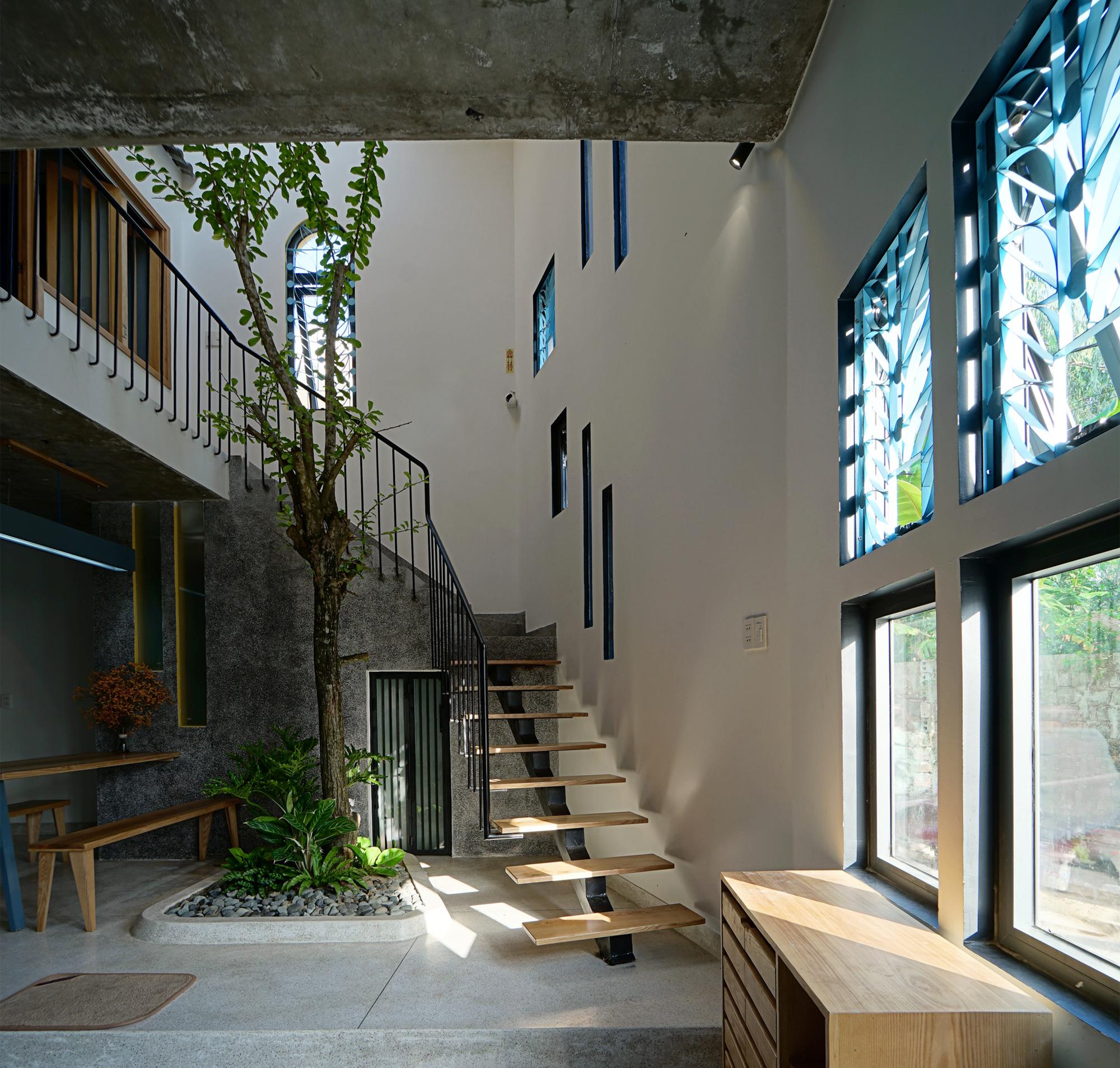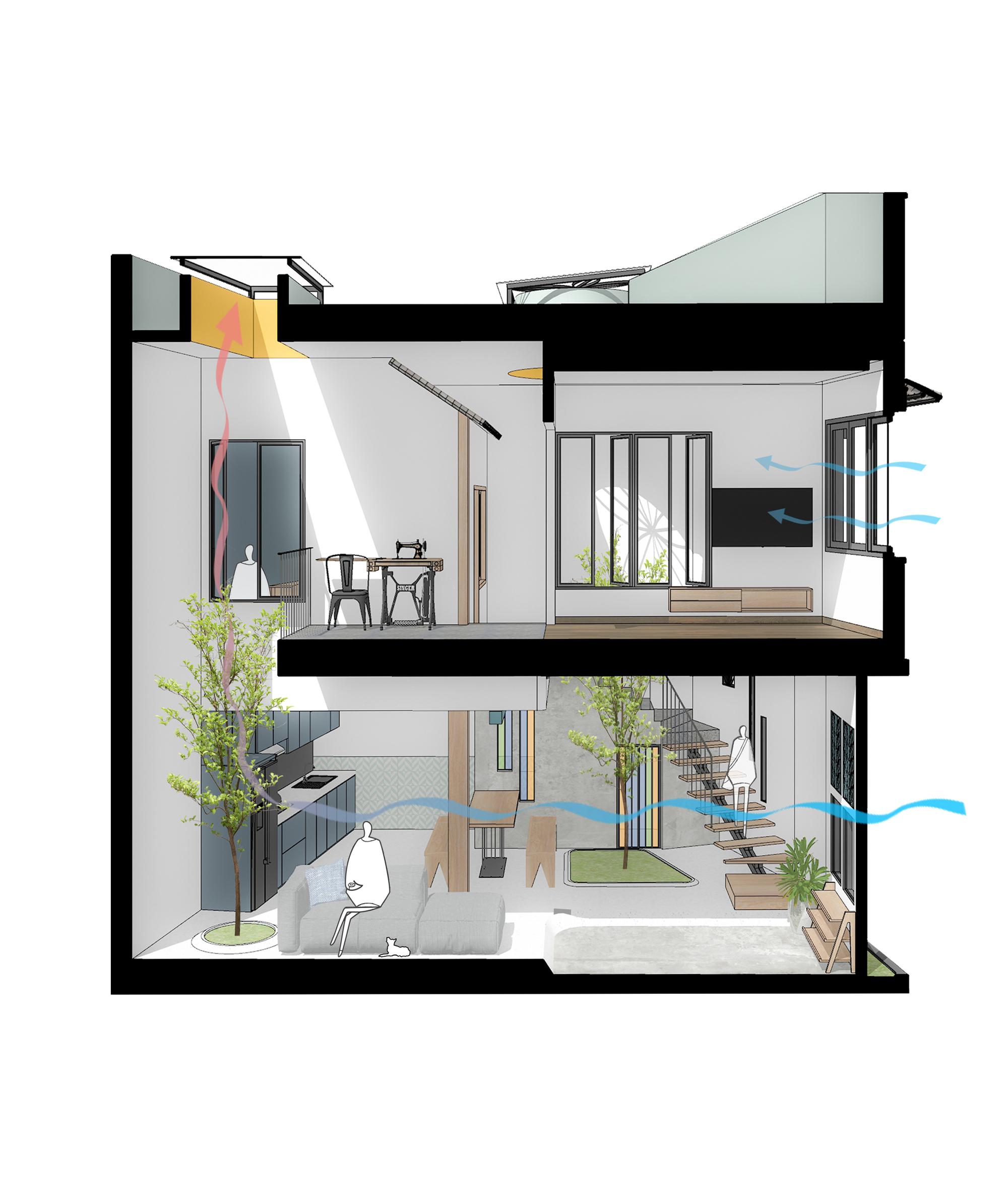 Điều kiện khí hậu khắc nghiệt của miền Trung Việt Nam đặt ra thách thức trong việc tiếp xúc tối đa với ánh sáng nhưng hạn chế nhiệt độ mà nó tạo ra. Để giải quyết vấn đề này, ngoài việc sử dụng các vật liệu thô, màu sắc trung tính, ngôi nhà còn được bố trí các ô cửa nhỏ với cây xanh bao quanh khiến nó giống như một hộp điều hòa lớn.