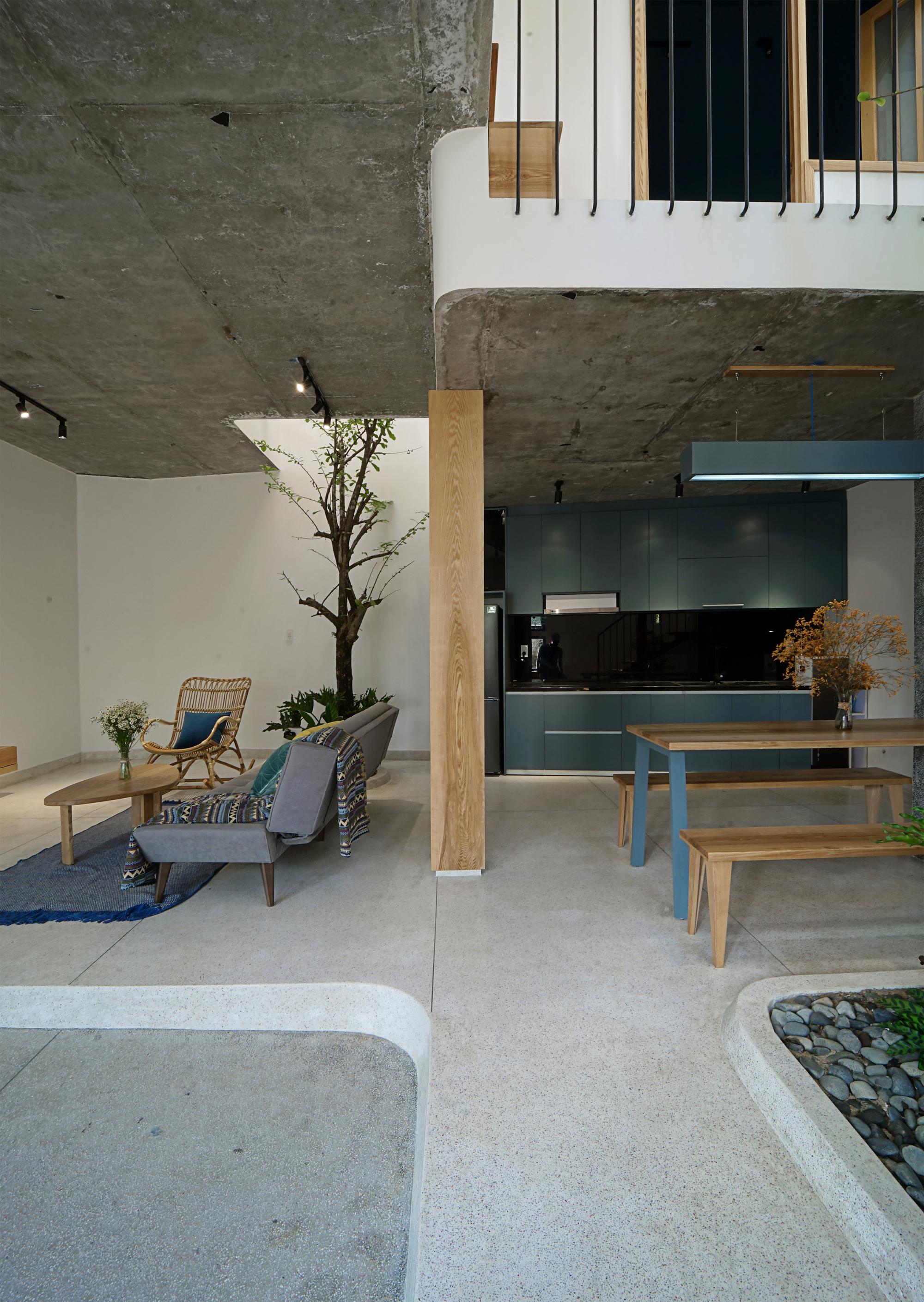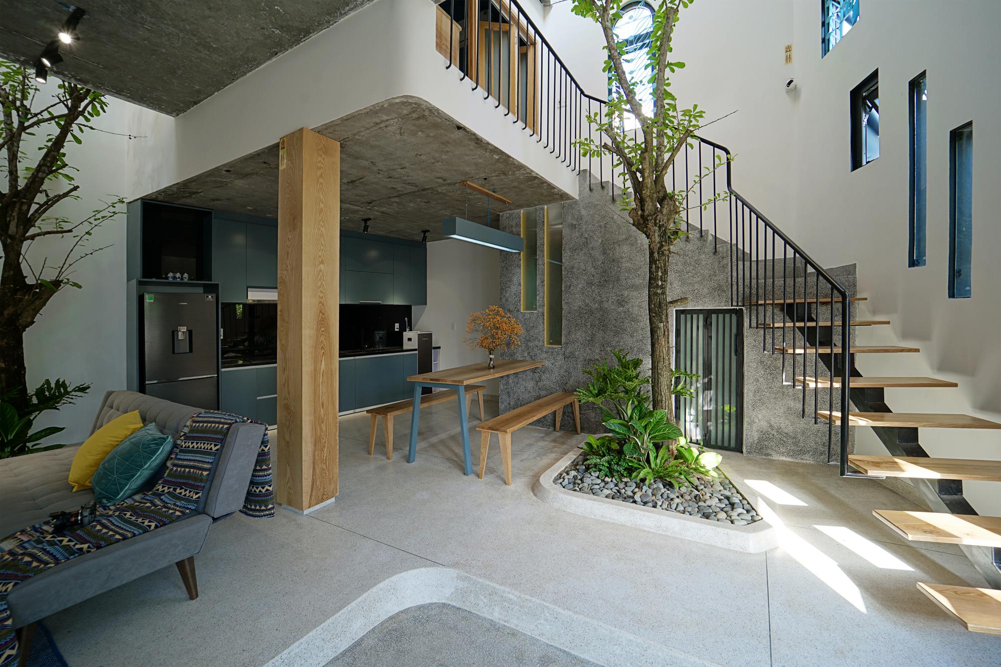 Bên cạnh đó, khi tạo ra một không gian mở, tất cả các phòng trong nhà sẽ được kết nối với nhau bằng hai sân thượng chiếm 1/3 diện tích căn nhà. Không gian này kết hợp với cây xanh vô cùng quý giá vì nó sẽ đóng vai trò là lá phổi tự nhiên hoạt động liên tục cả ngày.