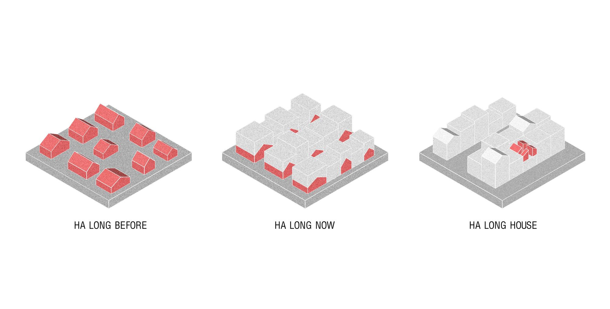 Tuy nhiên, chúng tôi nhận thấy Hạ Long đang tập trung quá nhiều vào phát triển xây dựng mới, đó là nguyên nhân chính khiến mật độ xây dựng tăng nhanh và thu hẹp môi trường sống của người dân. Trong bối cảnh đó, giải pháp cho dự án này là tạo ra những không gian thông thoáng đối lập với sự phát triển dày đặc của thành phố, đồng thời giữ cho các thành viên trong gia đình được kết nối với nhau. Mà cần được chú ý trong thời buổi kinh tế phát triển nhanh chóng như hiện nay.