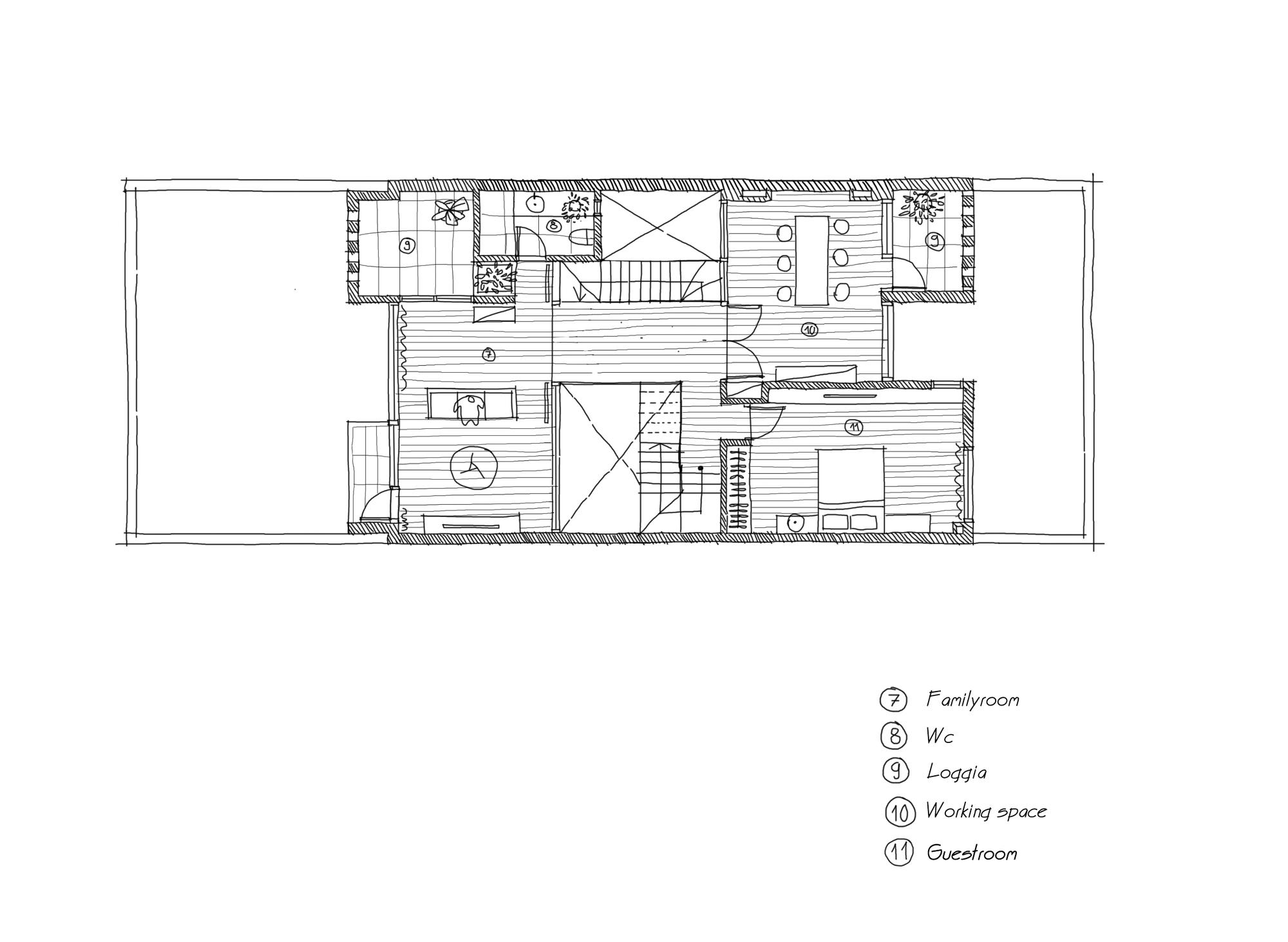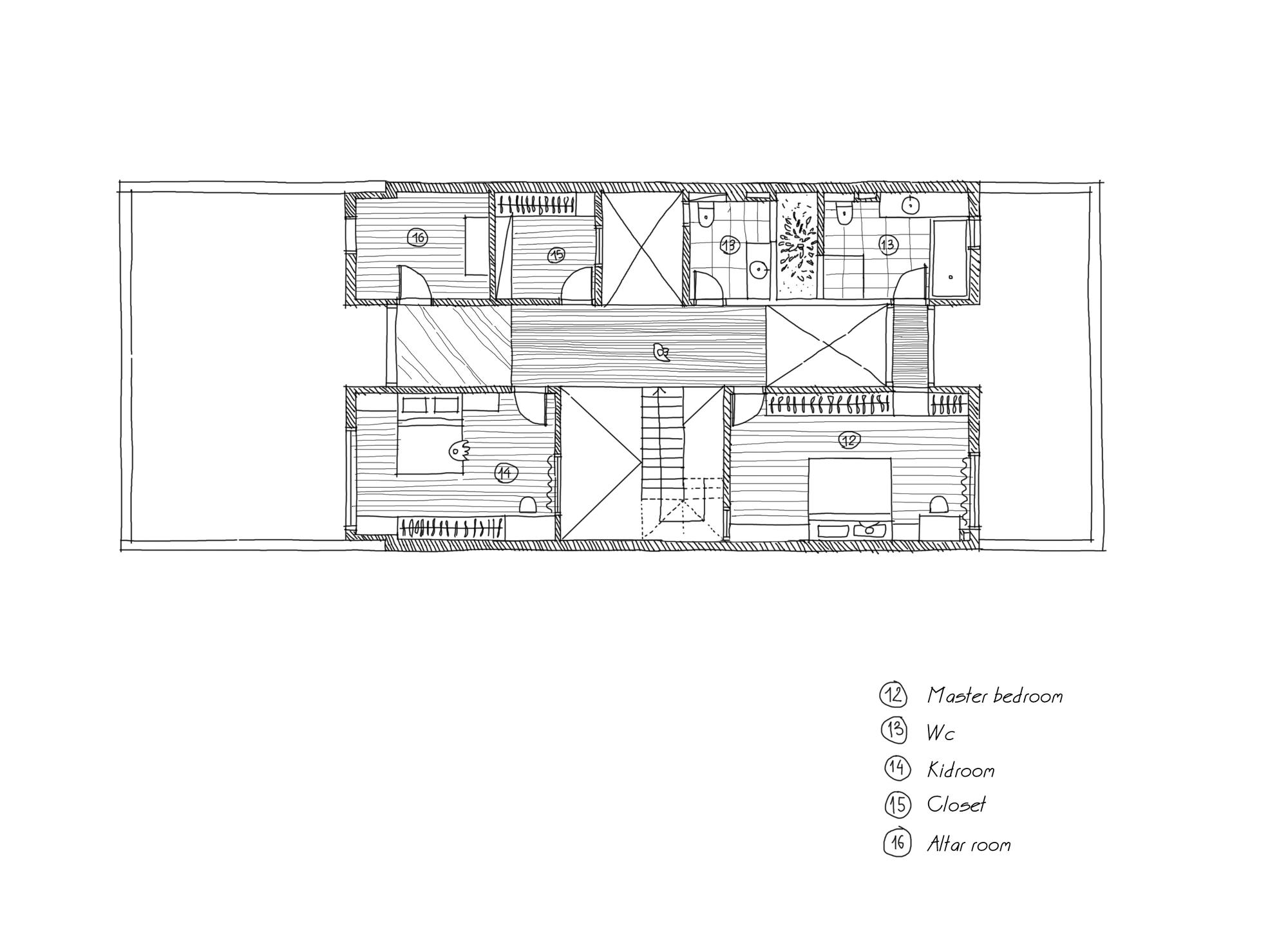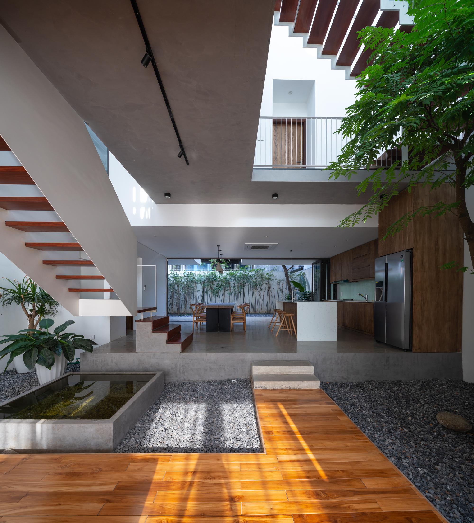 Căn nhà nằm cách bờ biển khoảng 1km, được thiết kế với không gian mở để đón trọn vẹn không khí trong lành từ biển. Ngoại trừ không gian riêng tư, mọi thứ trong nhà đều được kết nối hoàn hảo. Hãy tưởng tượng rằng người vợ đang dọn dẹp ở sân trước có thể dễ dàng trò chuyện với người chồng đang làm vườn ở sân sau. Trẻ em chơi trên lầu có thể nhìn thấy cha mẹ của chúng bất cứ lúc nào chúng muốn.
