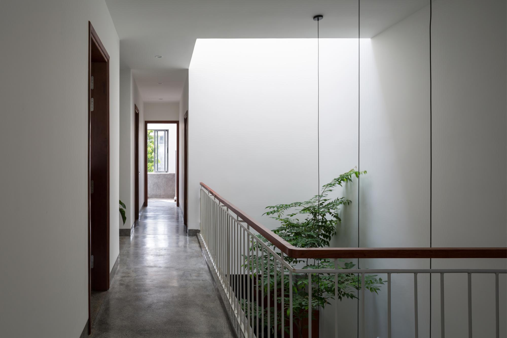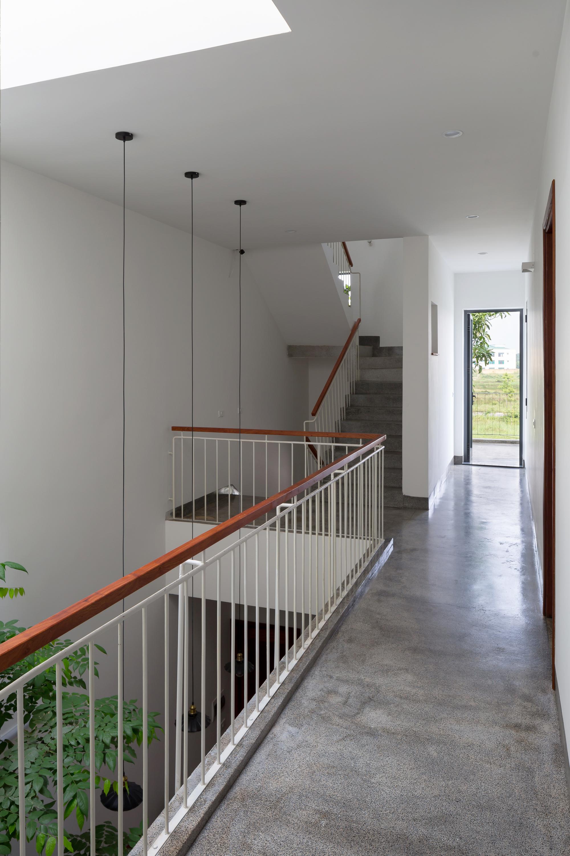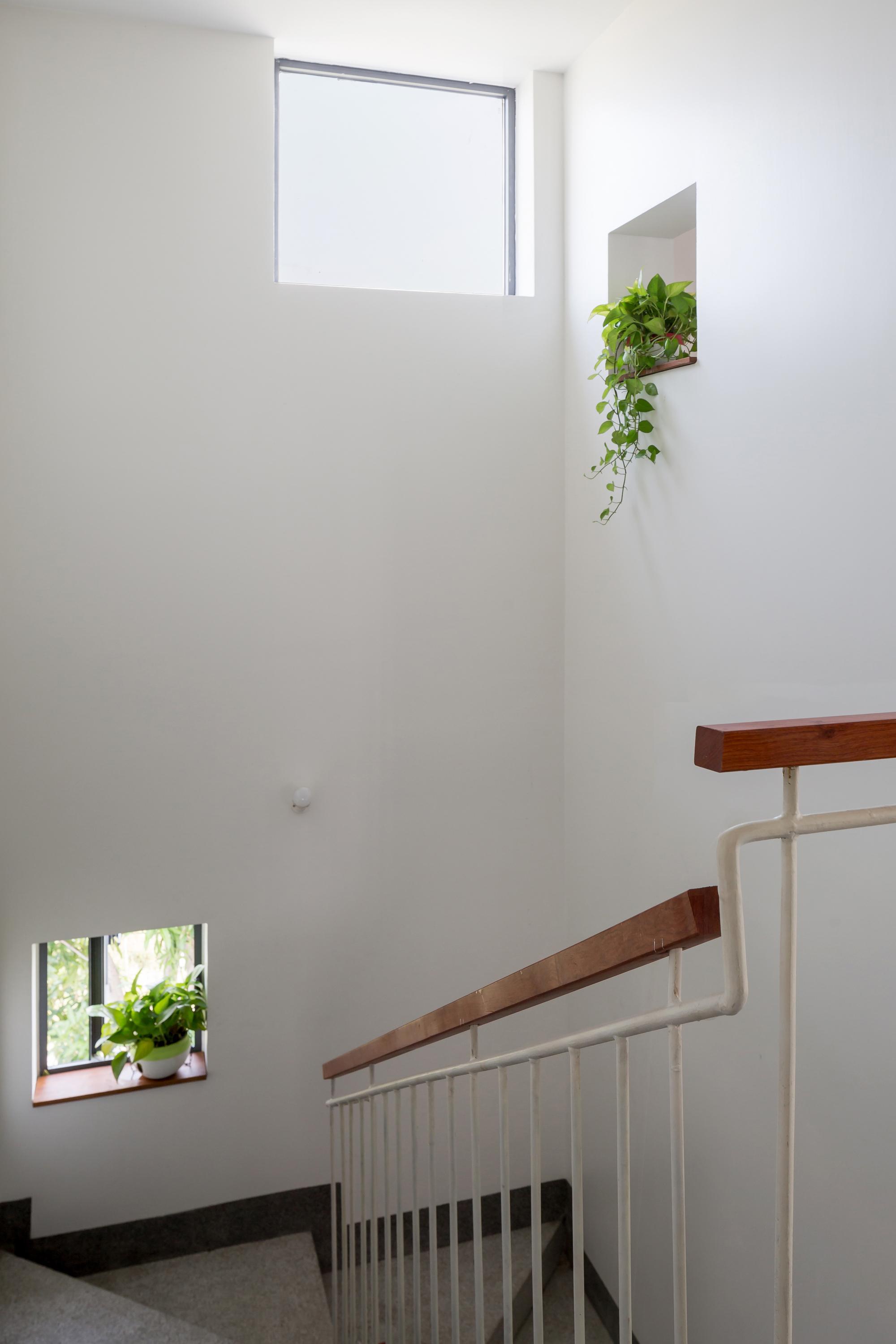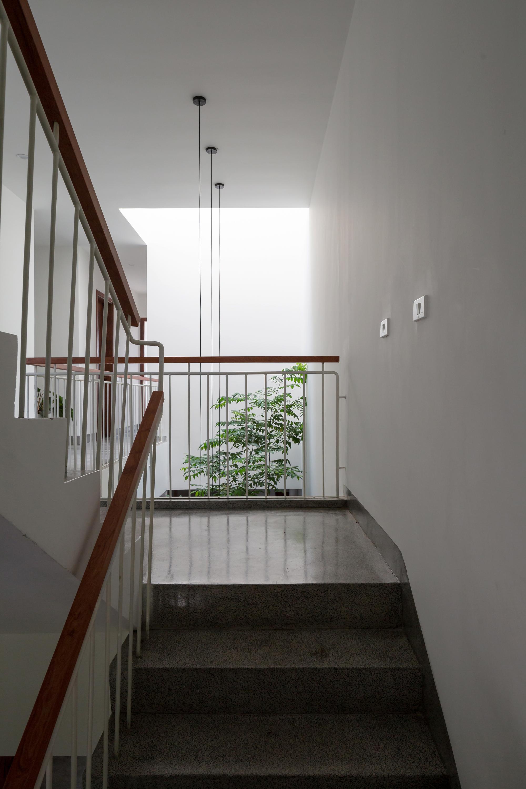 Chúng tôi đưa ánh sáng vào nhà bằng cách tạo ra một trục trung tâm với khoảng trống xuyên qua các tầng, giải pháp này kết nối không gian bên trong và bên ngoài. Ánh sáng được phân bổ đồng đều giữa khu vực công cộng và khu vực riêng tư. Có thể nhìn thấy bầu trời trong trẻo qua giếng trời trên tầng thượng, điều này mang lại cảm giác nhẹ nhõm cho người sử dụng. Chủ nhân là một giáo viên. người cung cấp các lớp học tại nhà. Chúng tôi đã tạo một cầu thang ở phía trước để tạo lối đi dễ dàng và riêng biệt cho học sinh ra vào.