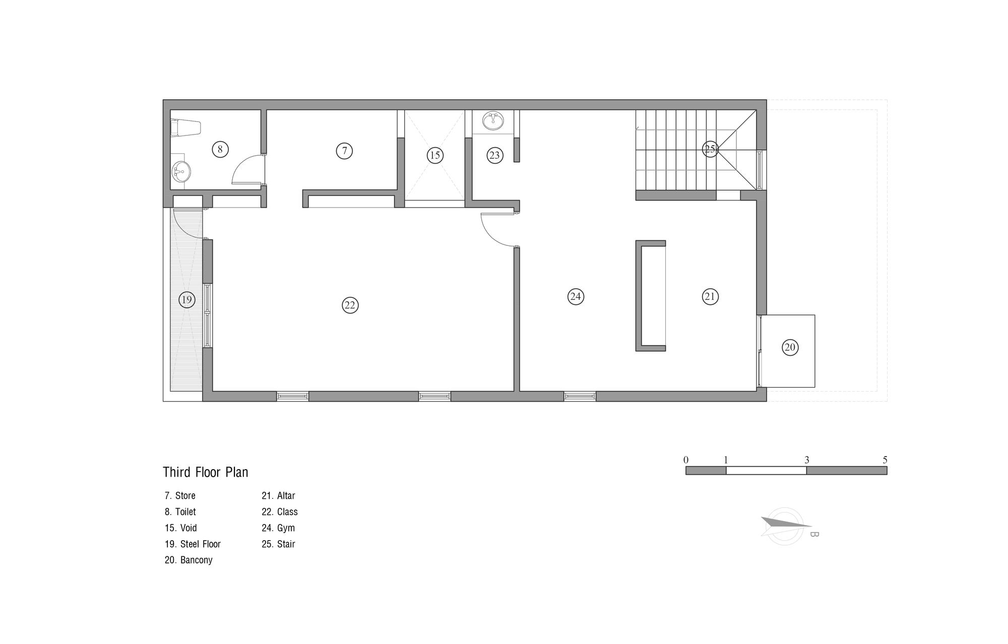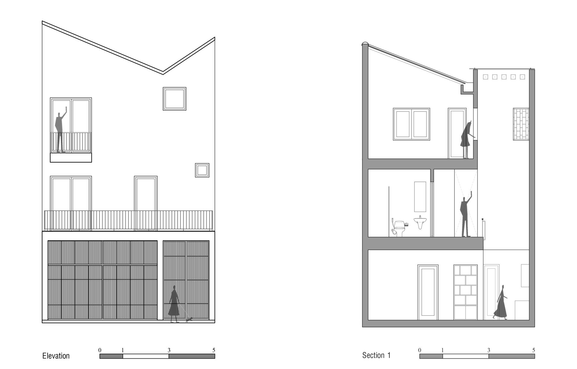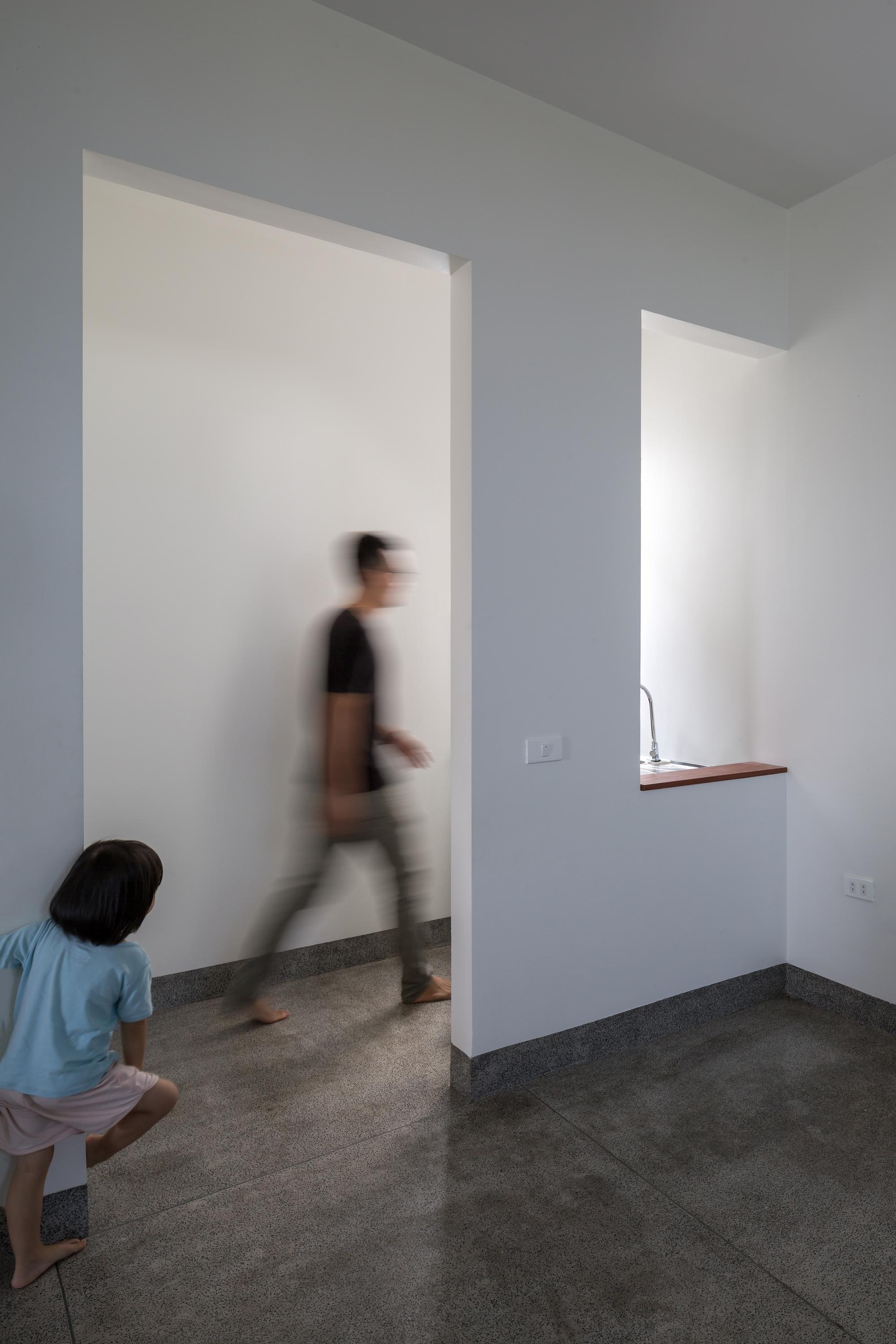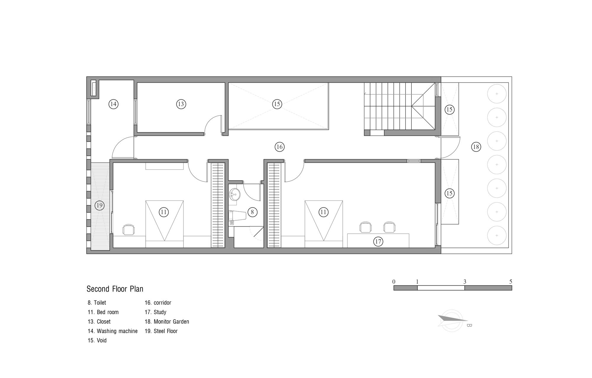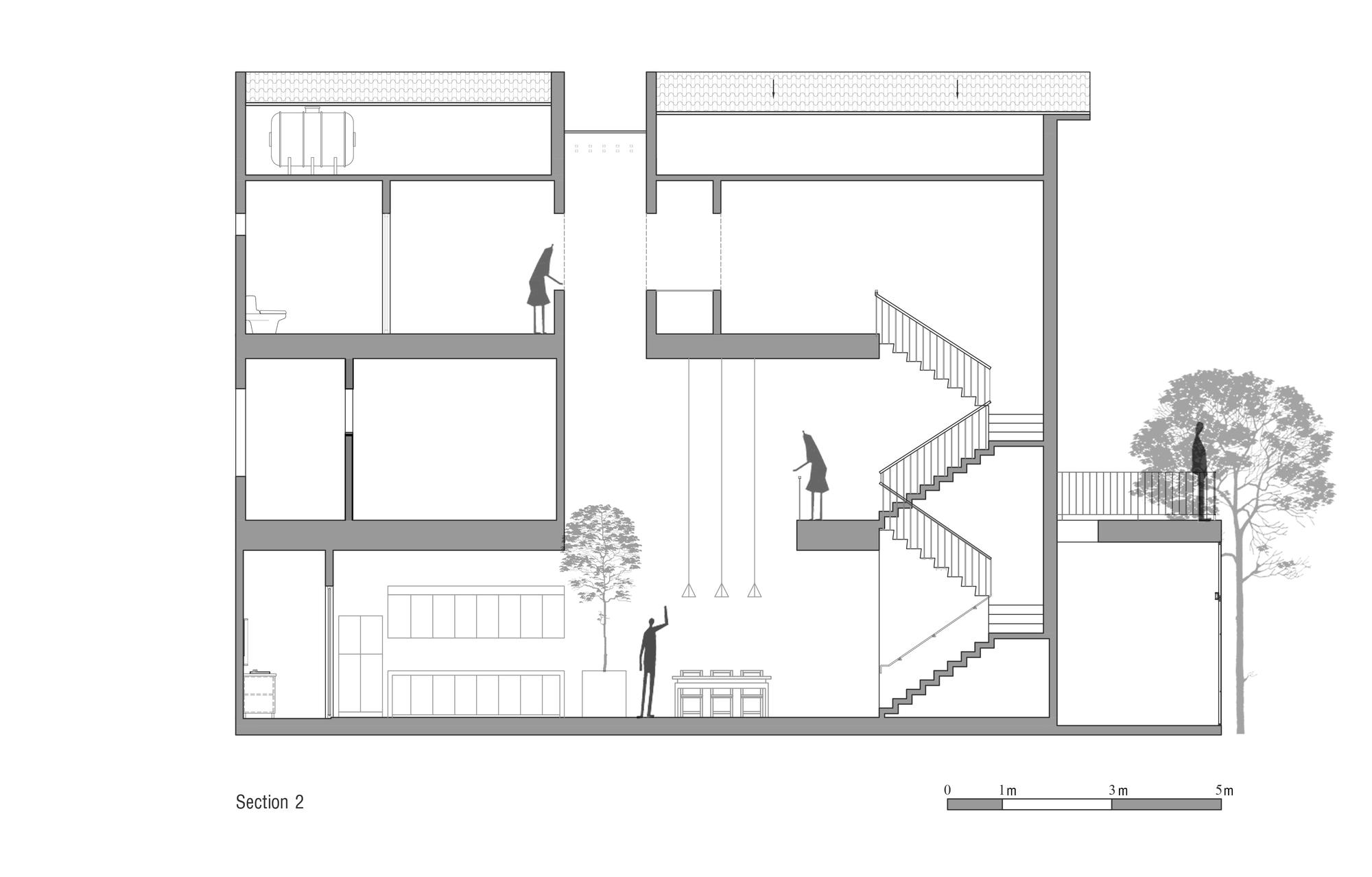 Chúng tôi đưa ánh sáng vào nhà bằng cách tạo ra một trục trung tâm với khoảng trống xuyên qua các tầng, giải pháp này kết nối không gian bên trong và bên ngoài. Ánh sáng được phân bổ đồng đều giữa khu vực công cộng và khu vực riêng tư. Có thể nhìn thấy bầu trời trong trẻo qua giếng trời trên tầng thượng, điều này mang lại cảm giác nhẹ nhõm cho người sử dụng. Chủ nhân là một giáo viên. người cung cấp các lớp học tại nhà. Chúng tôi đã tạo một cầu thang ở phía trước để tạo lối đi dễ dàng và riêng biệt cho học sinh ra vào.