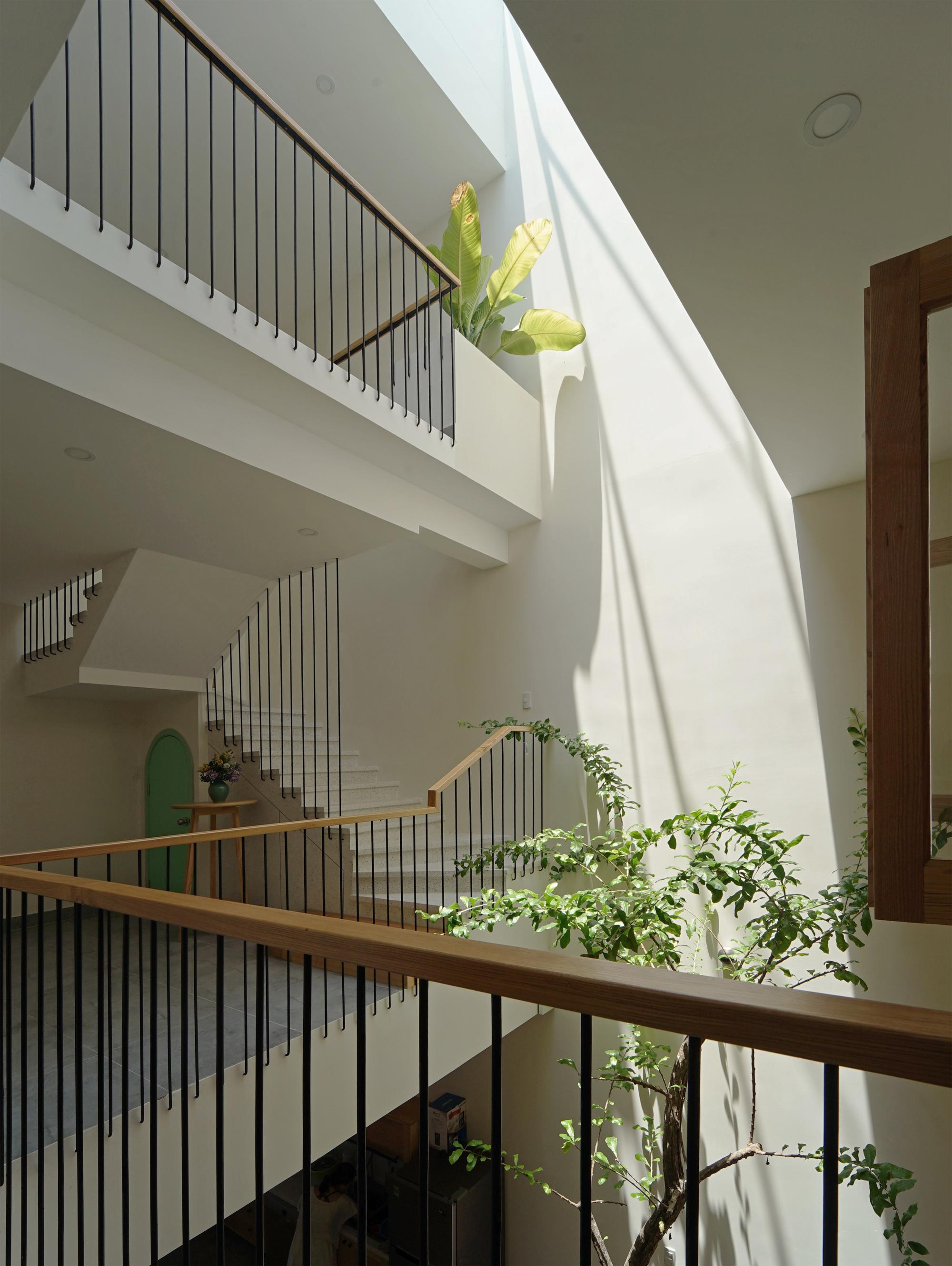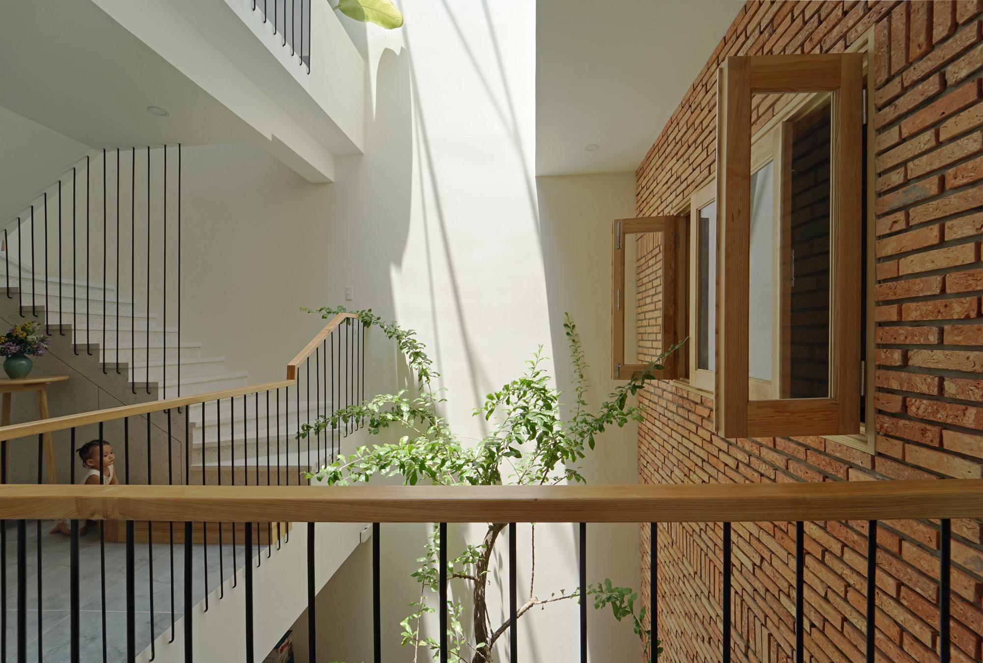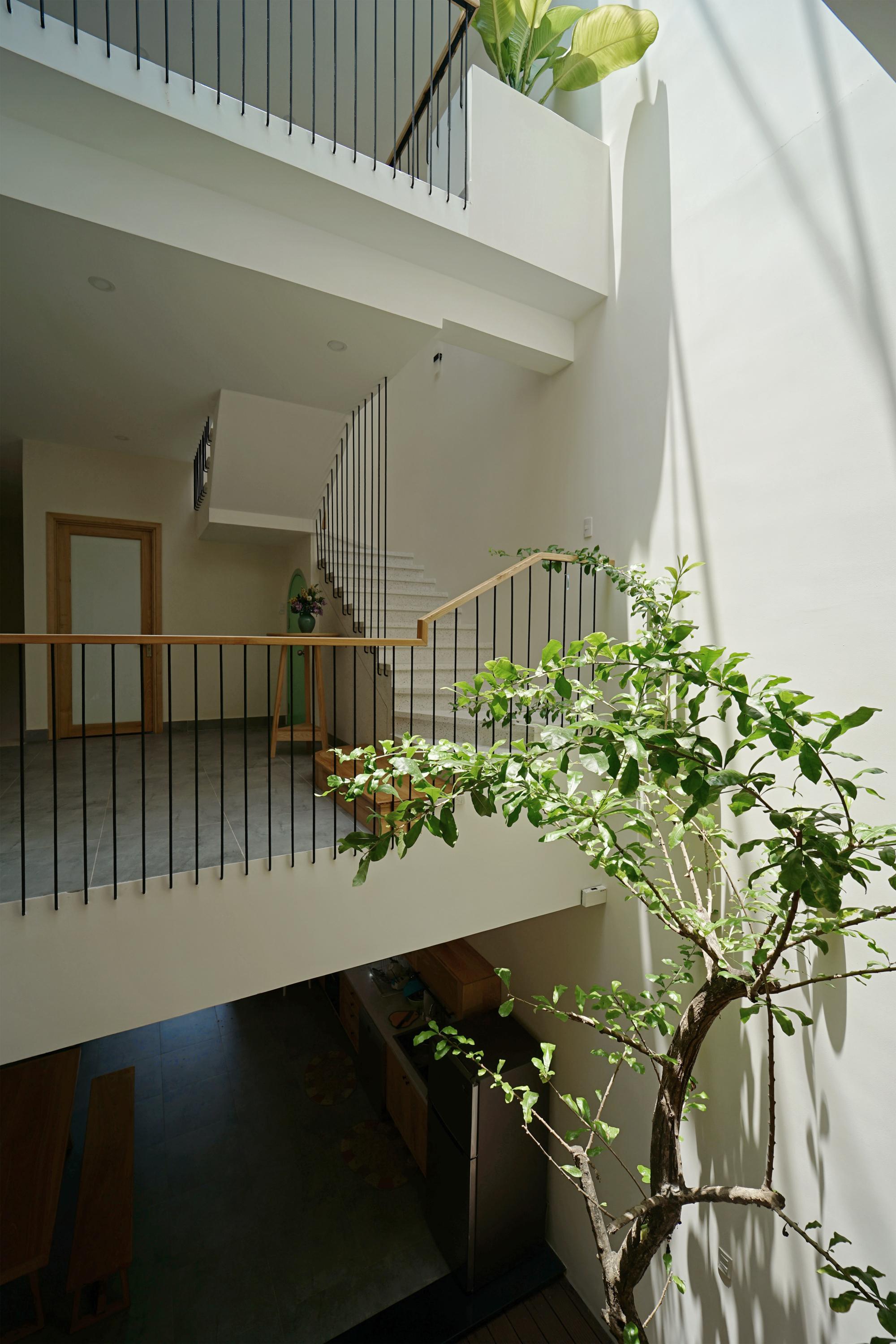 Cây xanh đóng một phần quan trọng trong ngôi nhà. Là điểm nhấn cho công trình mang lại cảm giác thư thái, thông thoáng cho ngôi nhà có diện tích nhỏ. Nói một cách dễ hiểu, cây xanh trong nhà được coi là sợi dây liên kết giữa các tầng và thông qua sự liên kết, các thành viên trong gia đình có thể nhìn thấy nhau và trò chuyện trong một không gian kín và thoáng.