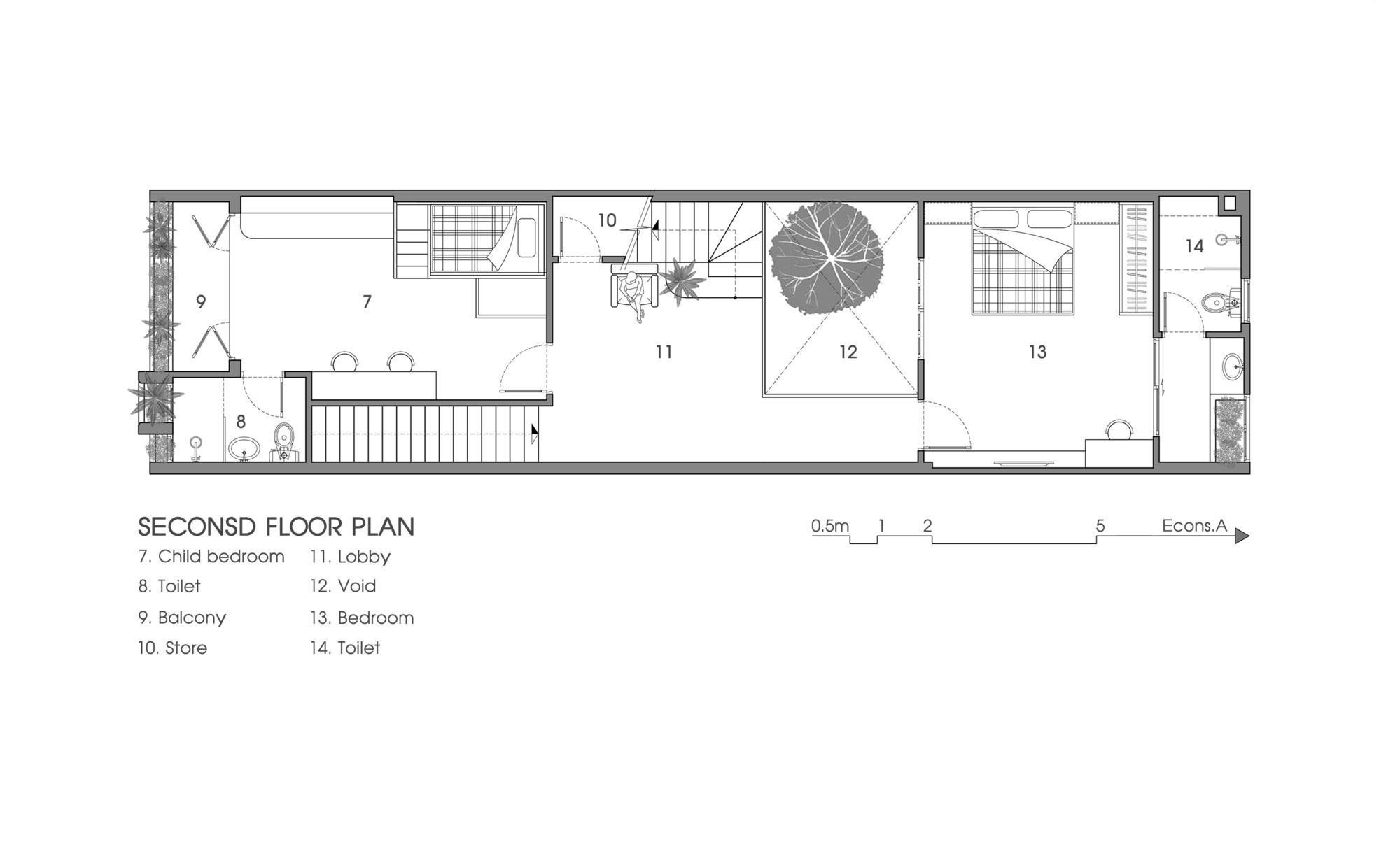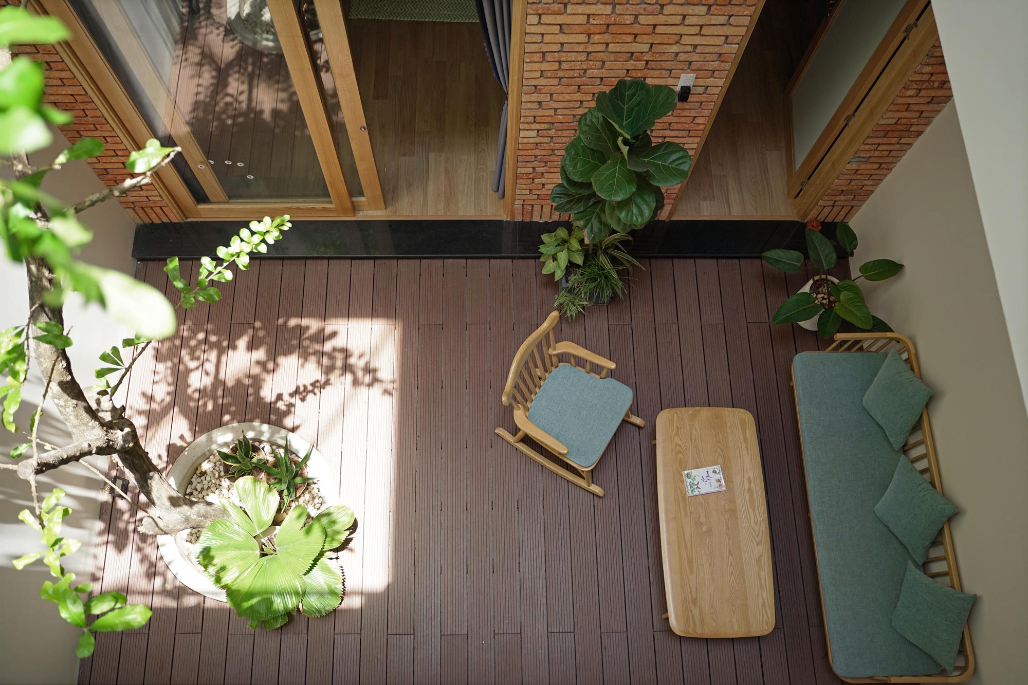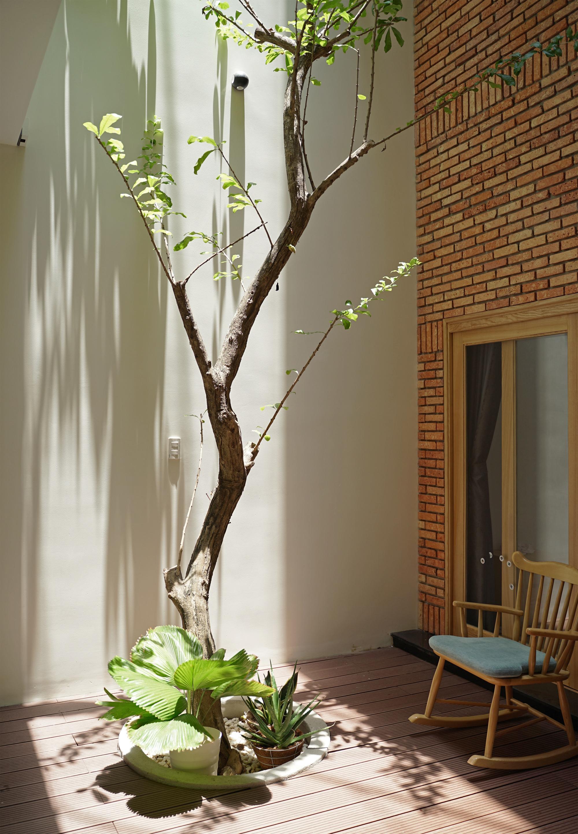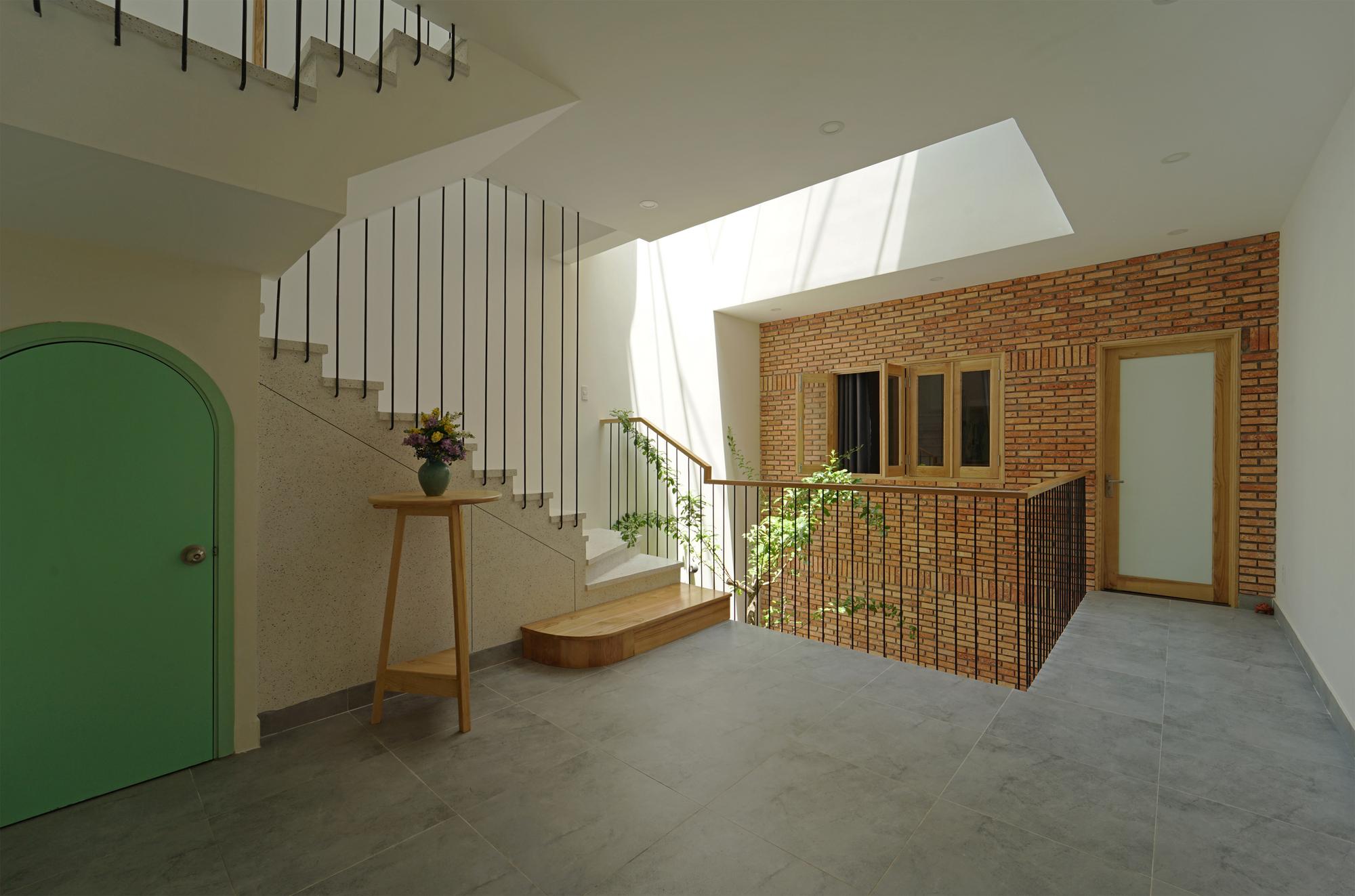 Cây xanh đóng một phần quan trọng trong ngôi nhà. Là điểm nhấn cho công trình mang lại cảm giác thư thái, thông thoáng cho ngôi nhà có diện tích nhỏ. Nói một cách dễ hiểu, cây xanh trong nhà được coi là sợi dây liên kết giữa các tầng và thông qua sự liên kết, các thành viên trong gia đình có thể nhìn thấy nhau và trò chuyện trong một không gian kín và thoáng.