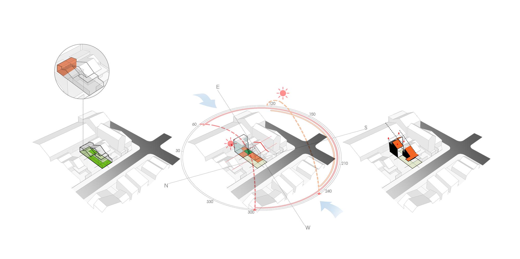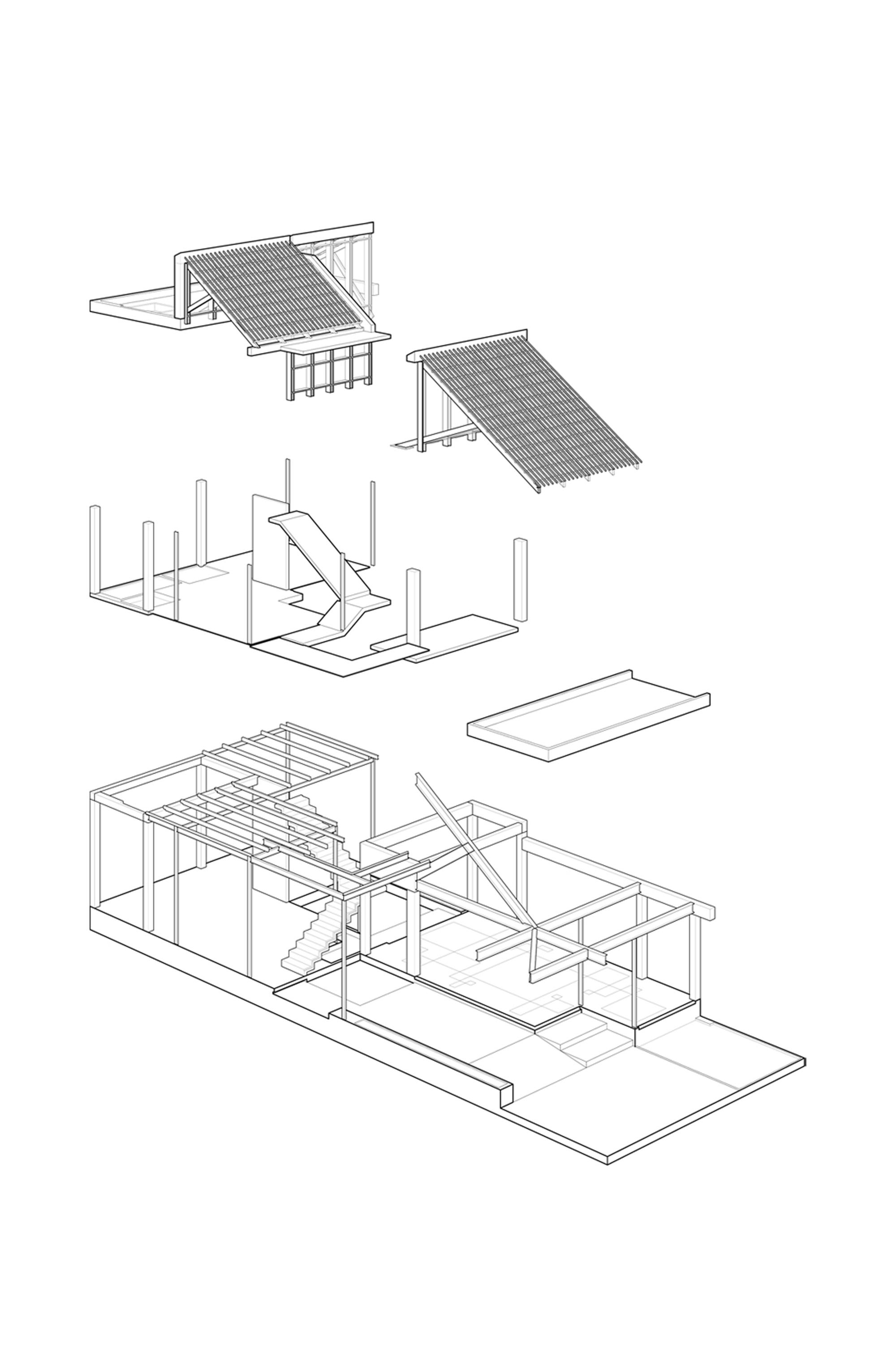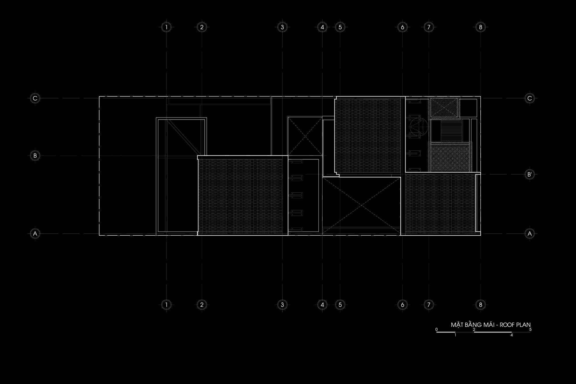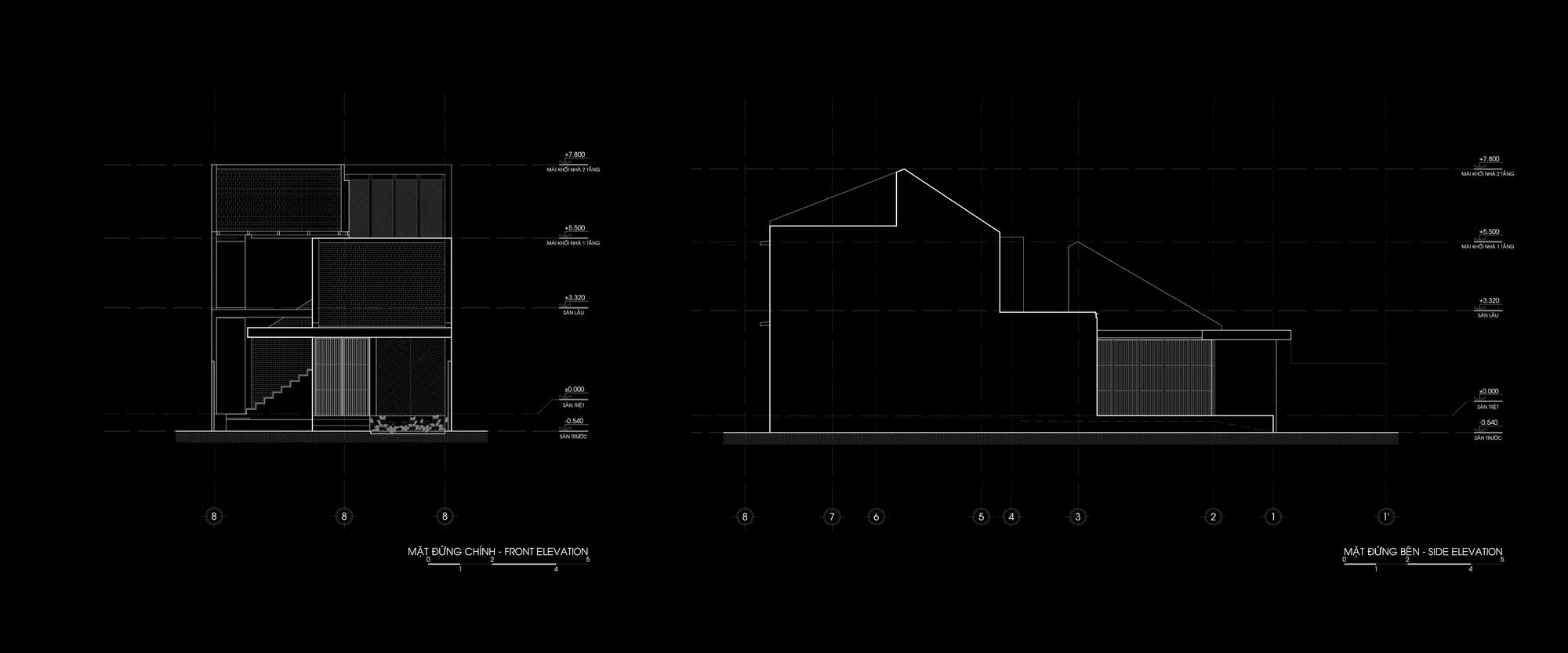Phương pháp thiết kế là giữ một nửa mái nhà hiện có và máng xối để duy trì sự hài hòa cho toàn bộ khung cảnh và tinh thần của một ngôi nhà phía Nam. Từ đó, ngôn ngữ “HALF ROOF” được áp dụng cho khối sau để tạo sự đồng nhất cho tòa nhà. Ngôn ngữ hình thành bắt đầu từ ngôi nhà hiện tại sẽ làm cho ngôi nhà hiện đại nhưng quen thuộc. Cấu trúc cũ được xử lý theo một cách mới; các cột dưới máng xối được rút lui, kết cấu thép được sử dụng để tạo ra một khoảng 5 mét, tạo ra một không gian mở hoàn toàn, bên trong và bên ngoài của ngôi nhà được ngăn cách bởi cửa trượt được kết nối thông qua không gian này. Cây được đưa vào các nhóm bao gồm nhà nghỉ. Những điều này giúp chủ nhà giữ gìn thói quen sống của họ dưới mái hiên, xung quanh khu vườn nhưng trong một tòa nhà rộng rãi và hiện đại.