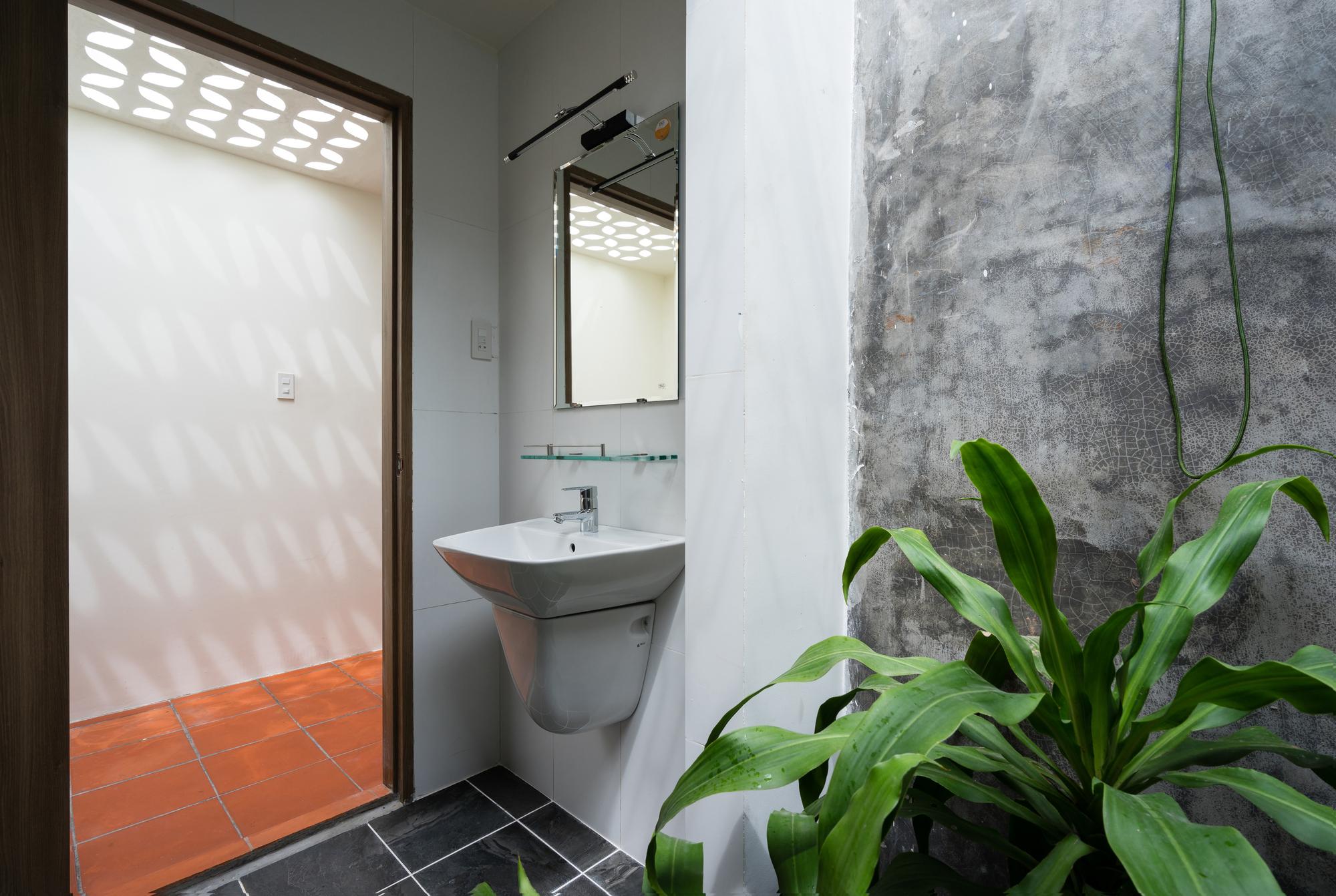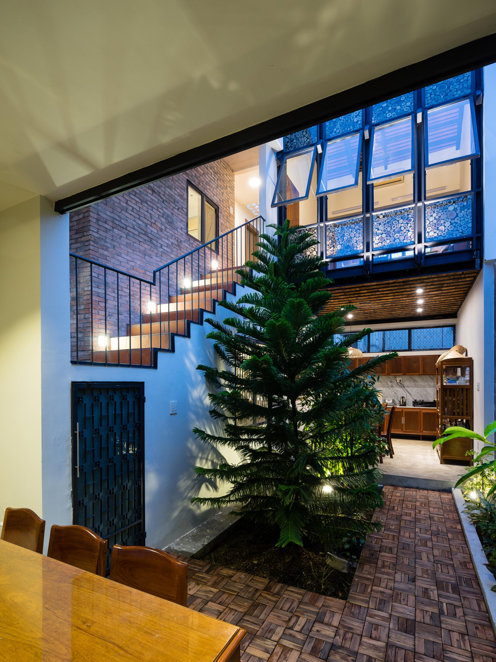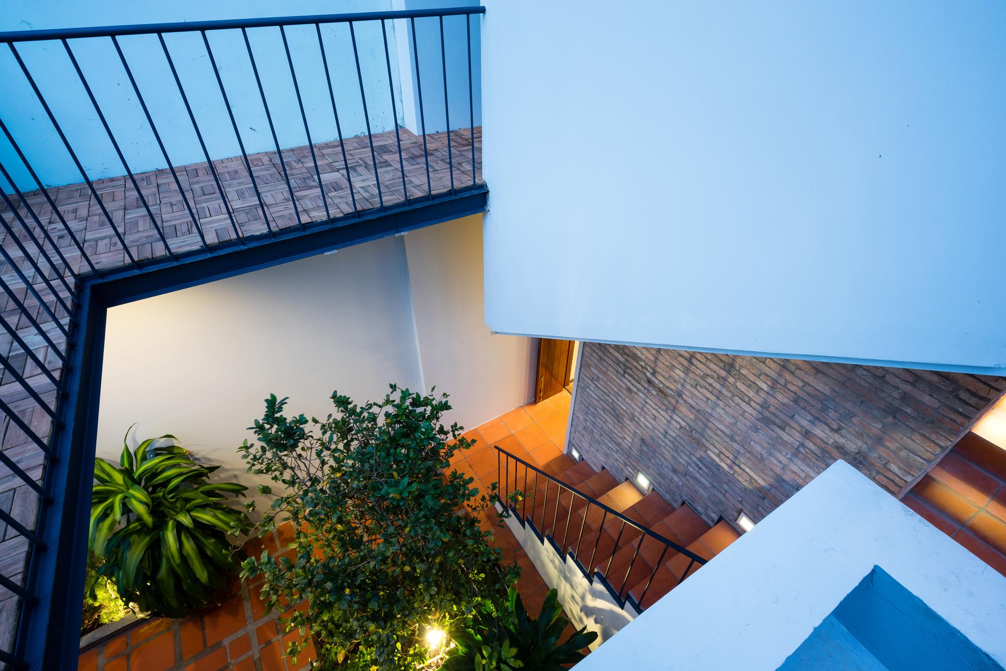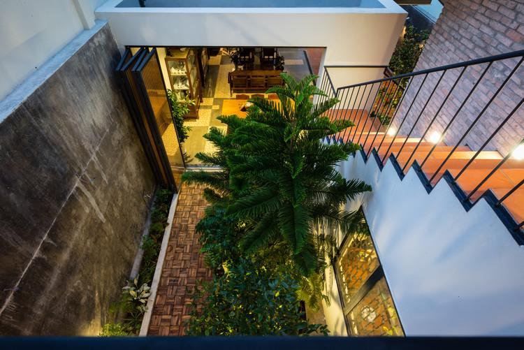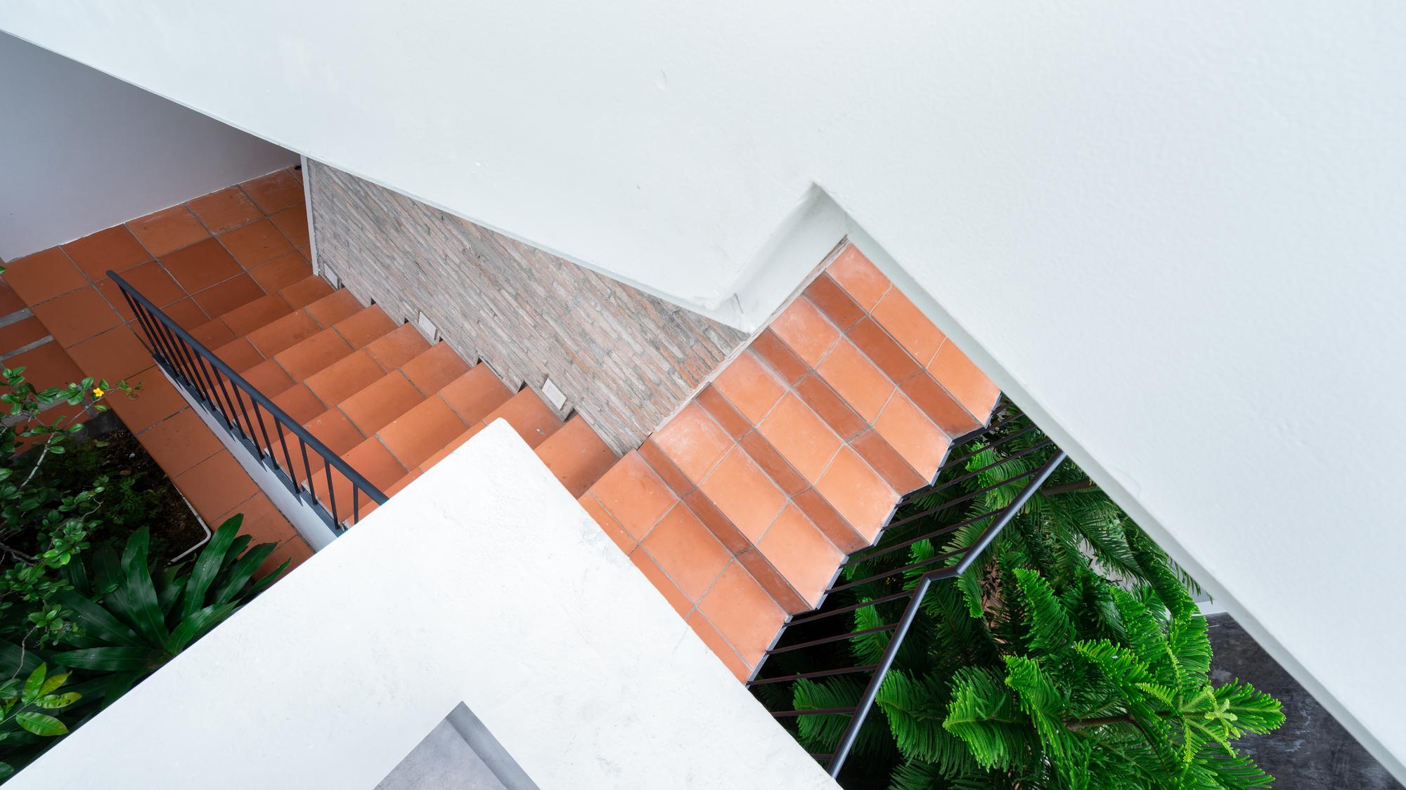 Mô tả Sản phẩm. Với ngân sách hạn chế, hầu hết các vật liệu tái chế của ngôi nhà cũ được tái sử dụng: gạch hoa văn được làm sạch và sử dụng để ốp lát sàn phòng khách, gạch mái cũ của không gian phụ để trang trí trần nhà bếp, khung cấu trúc tầng lửng và ván được tái sử dụng cho tầng trên mới, những chiếc máy tiện cũ, những mái vòm của mái nhà đã trở thành những cái cửa mái hiên.