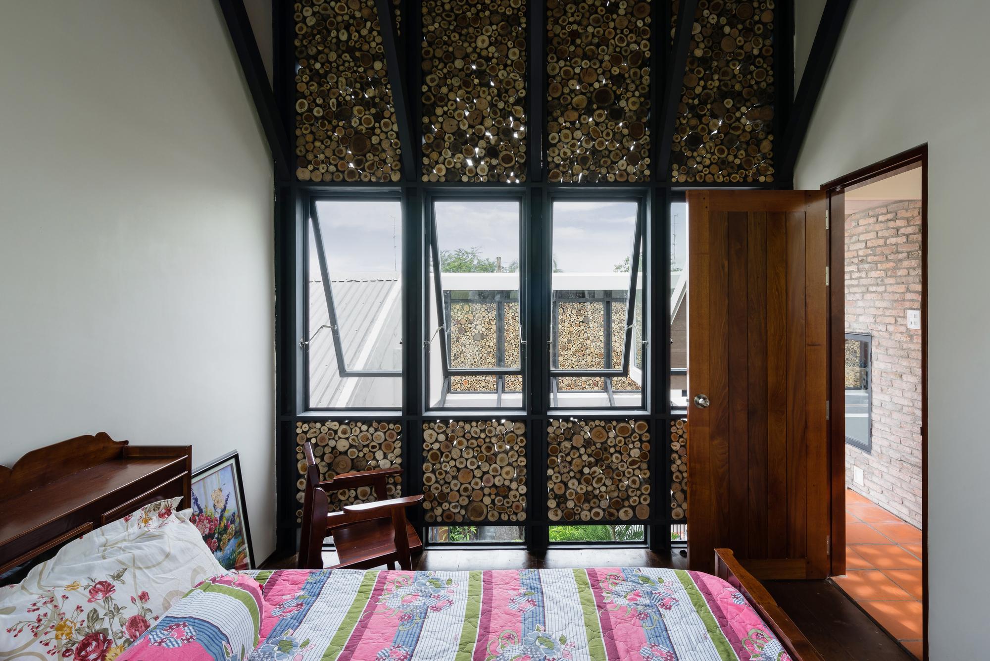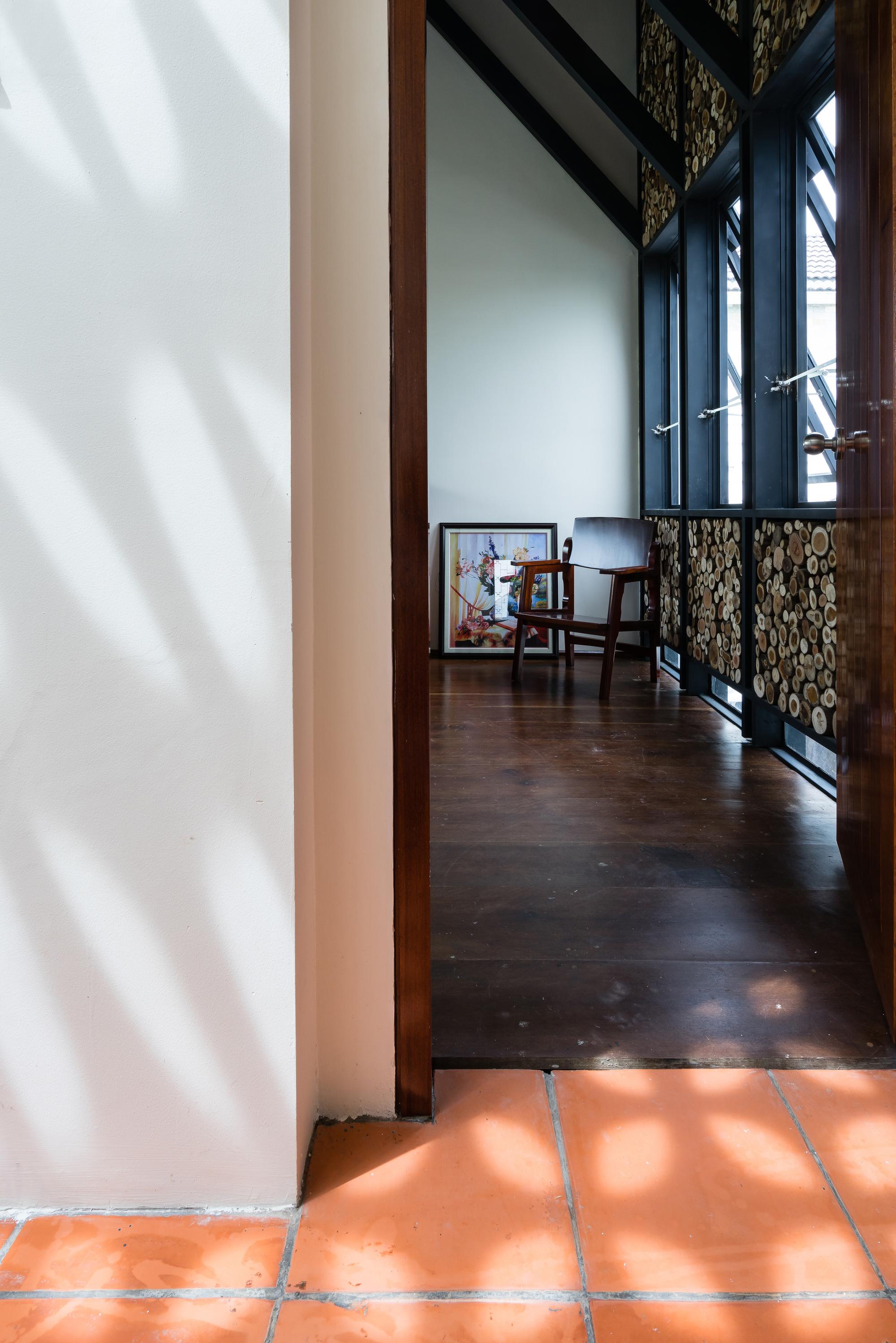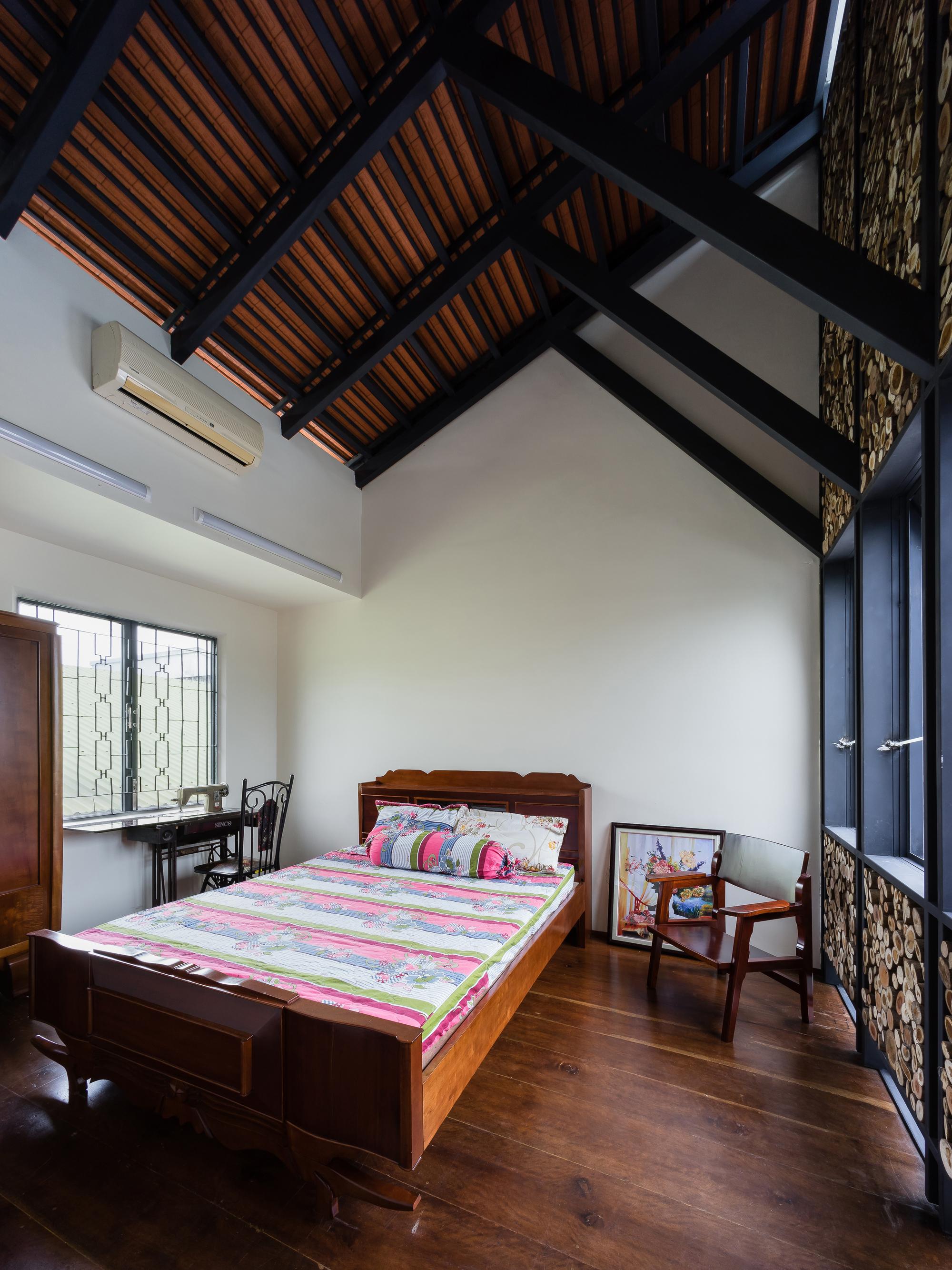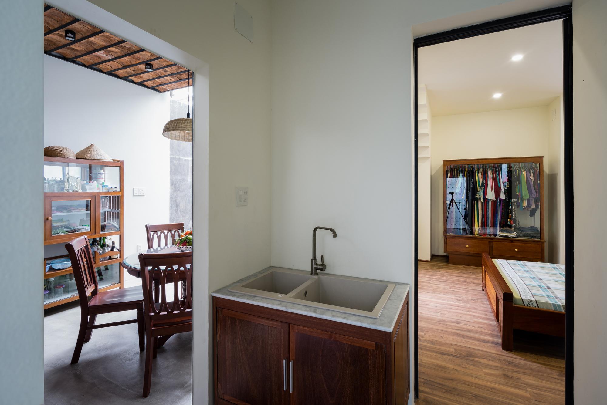 Mô tả Sản phẩm. Với ngân sách hạn chế, hầu hết các vật liệu tái chế của ngôi nhà cũ được tái sử dụng: gạch hoa văn được làm sạch và sử dụng để ốp lát sàn phòng khách, gạch mái cũ của không gian phụ để trang trí trần nhà bếp, khung cấu trúc tầng lửng và ván được tái sử dụng cho tầng trên mới, những chiếc máy tiện cũ, những mái vòm của mái nhà đã trở thành những cái cửa mái hiên.