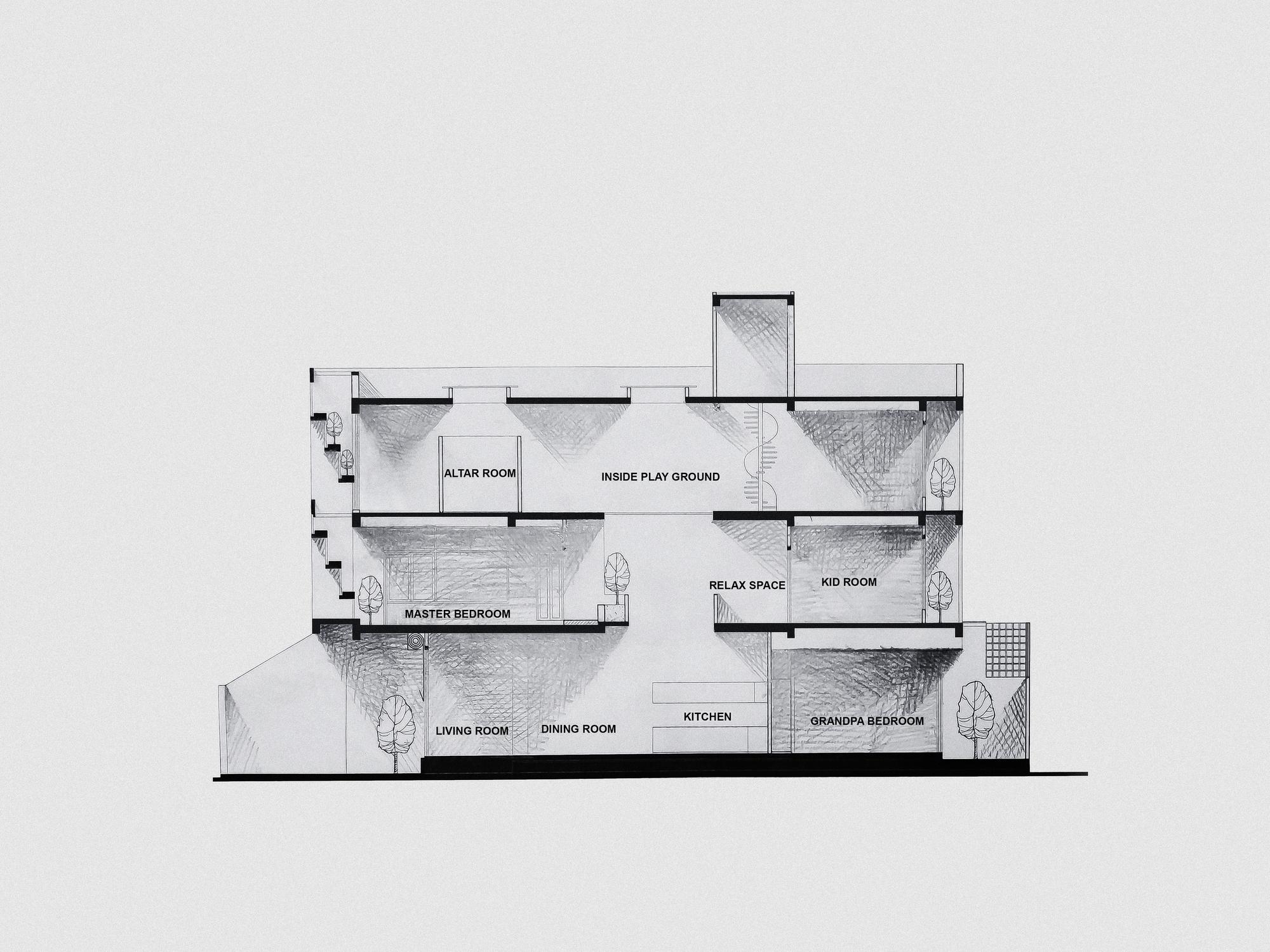 Ưu tiên của các kiến trúc sư không chỉ là thiết kế một chỗ ở được trang bị đầy đủ mà còn là trải nghiệm về không gian, ánh sáng và gió bên trong ngôi nhà. Khái niệm của chúng tôi trình bày một không gian mở cho cả kích thước ngang và dọc của ngôi nhà để tận dụng ánh sáng và gió tự nhiên, rất cần thiết trong môi trường xanh và thoáng mát.