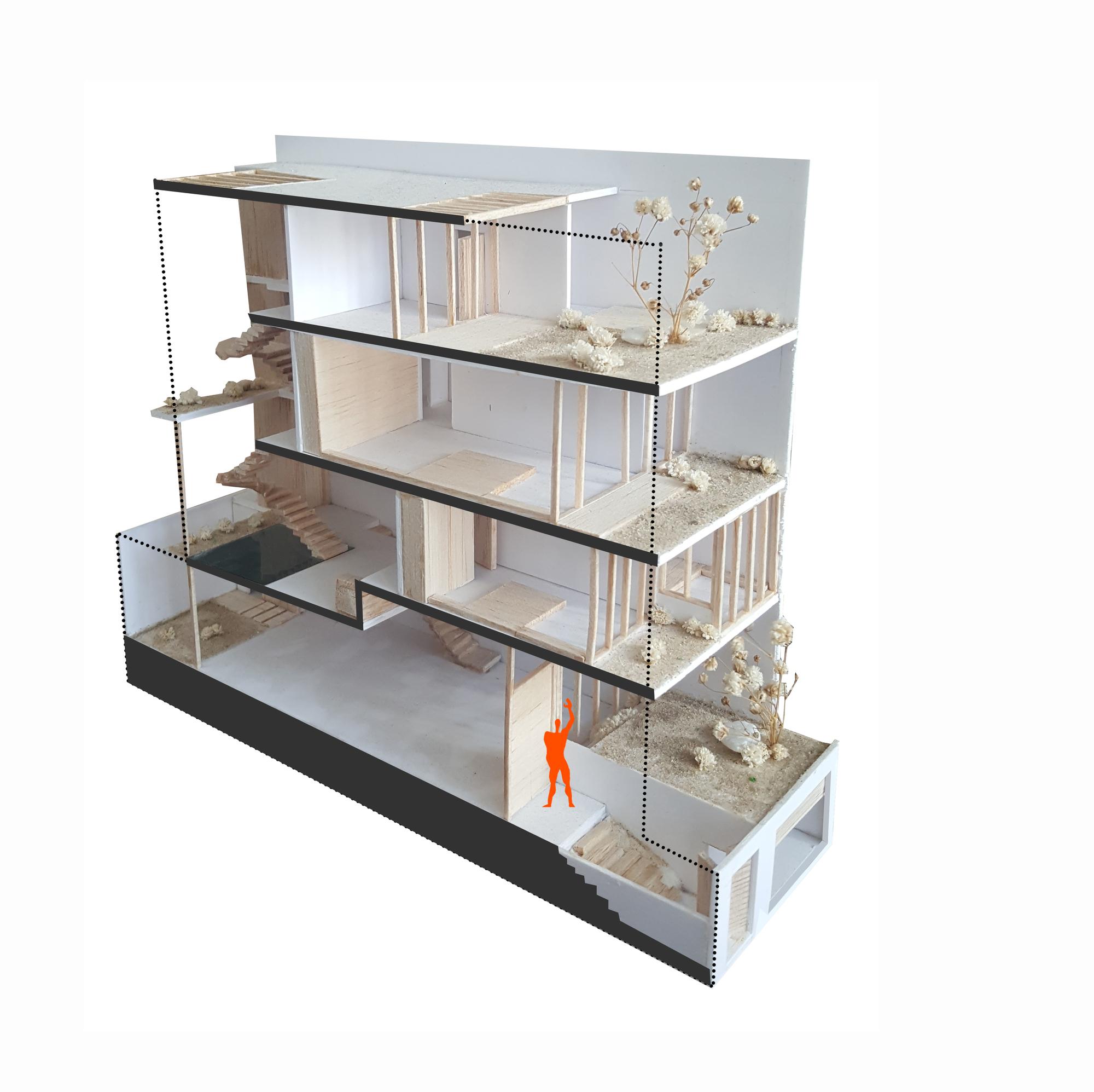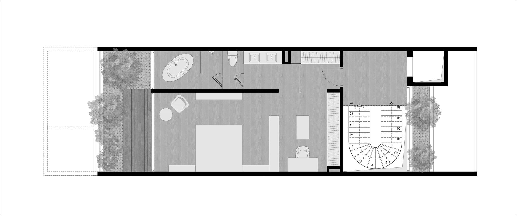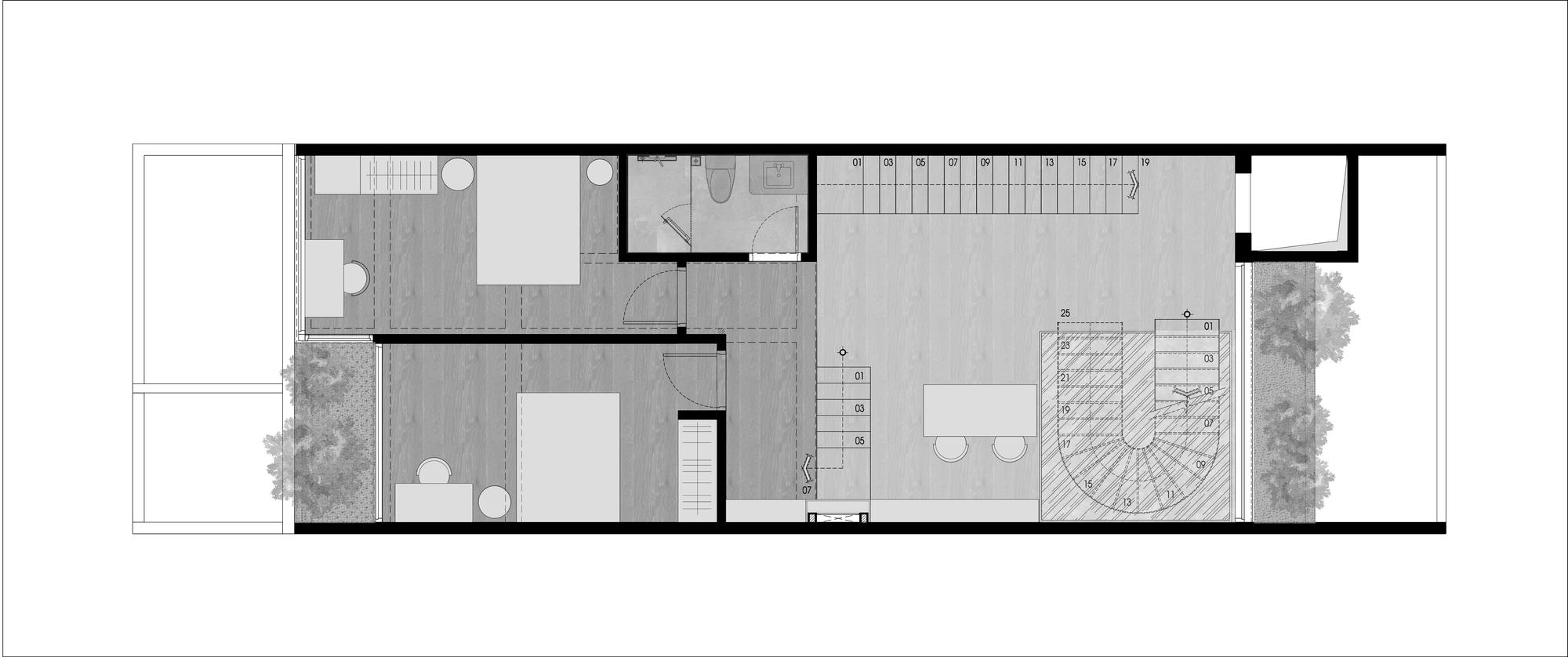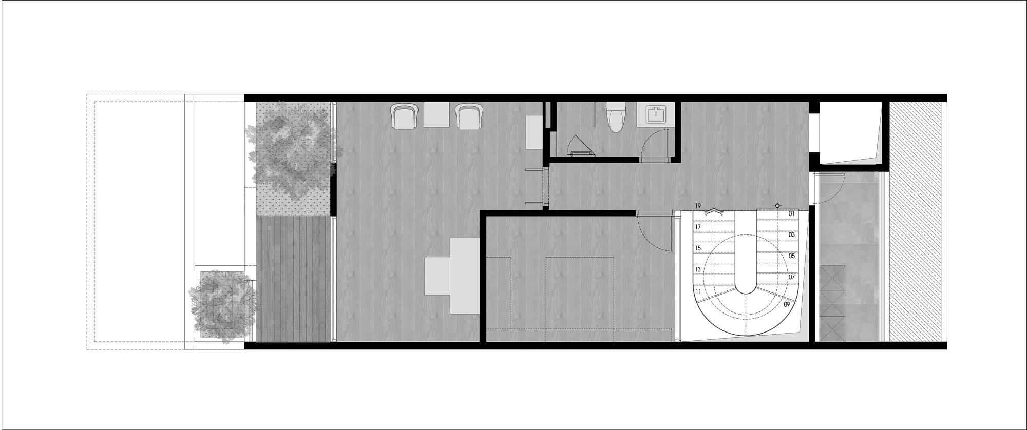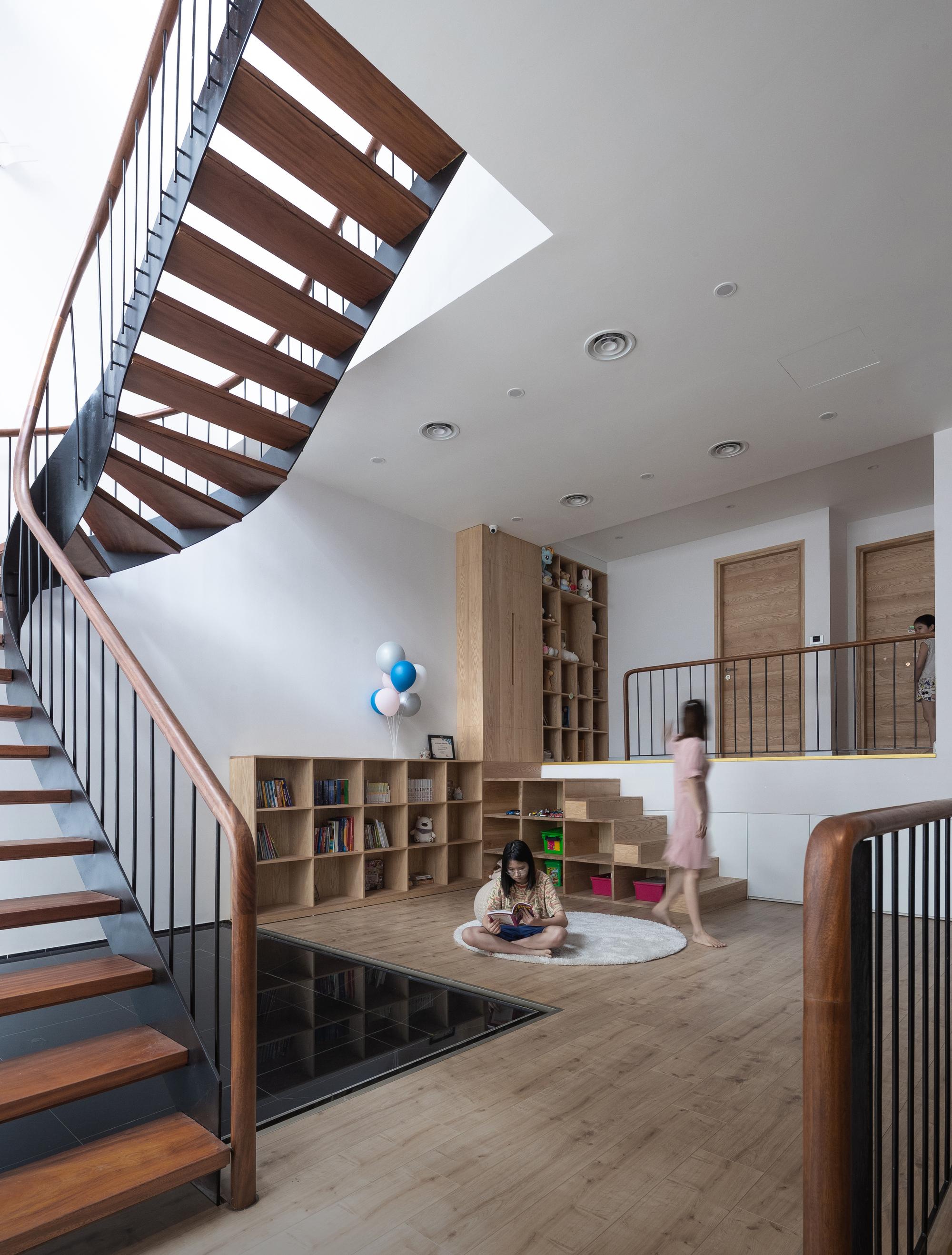 Mô tả văn bản do các kiến trúc sư cung cấp. Các vấn đề đô thị. Nhà liền kề trong khu đô thị mới là loại hình nhà ở rất phổ biến ở Việt Nam. Mặc dù hạn chế về thiết kế không theo quy hoạch trong nhà ở chia lô nhưng các khu đô thị mới hiện nay đang trở nên vô hồn với lối kiến trúc cũ kỹ, nghèo nàn, lặp đi lặp lại với cách bố trí “cầu thang giữa chia đôi” đã lạc hậu. Việc xây dựng một ngôi nhà mới trong khu đô thị hiện tại. Bên cạnh đó, ngôi nhà sẽ đạt tiêu chuẩn hiện đại với sự đột phá về cấu trúc không gian, tạo nên một tổng thể kiến trúc hài hòa.