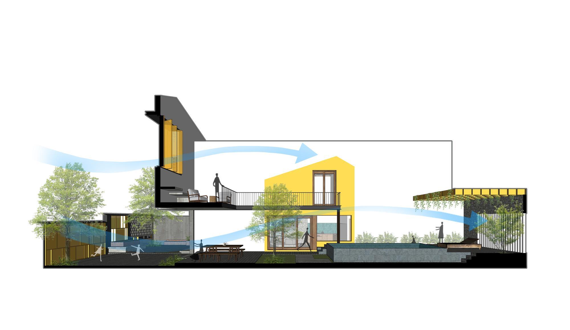 Không gian bên trong và bên ngoài ngôi nhà sẽ trở nên sinh động và mát mẻ với sự lưu thông không khí theo hướng bắc nam. Cả khu vực đóng và mở sẽ có gió chuyển động suốt cả ngày, giúp tận dụng tối đa các nguồn năng lượng tự nhiên.