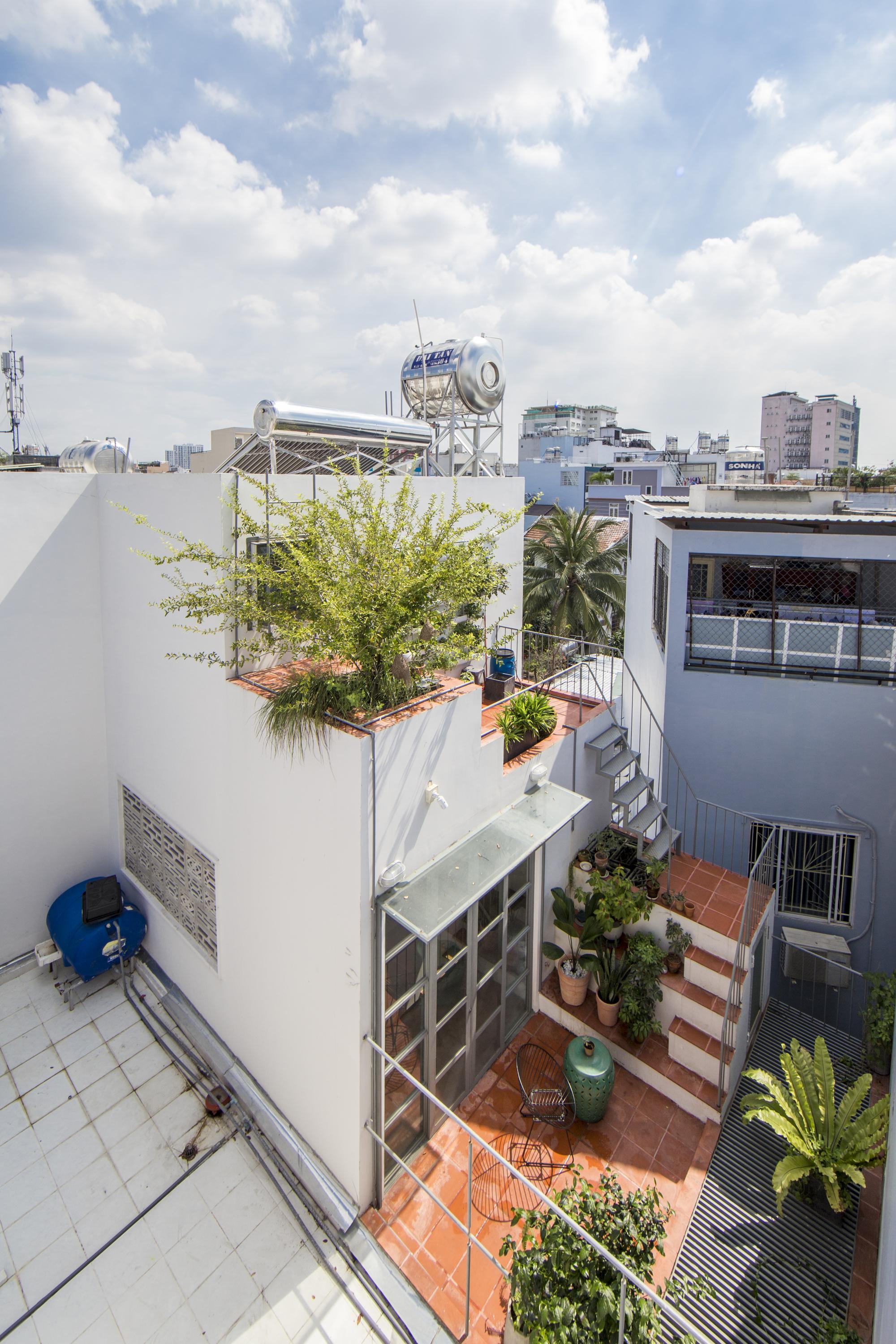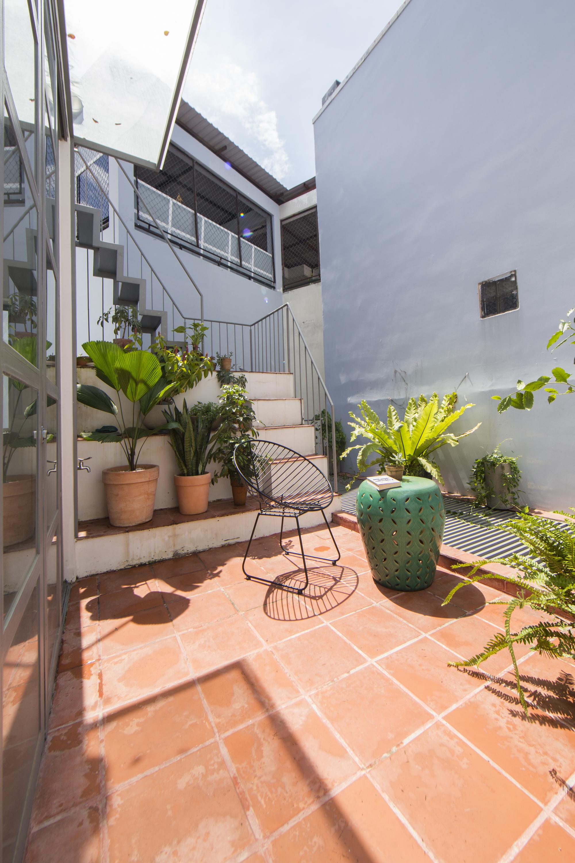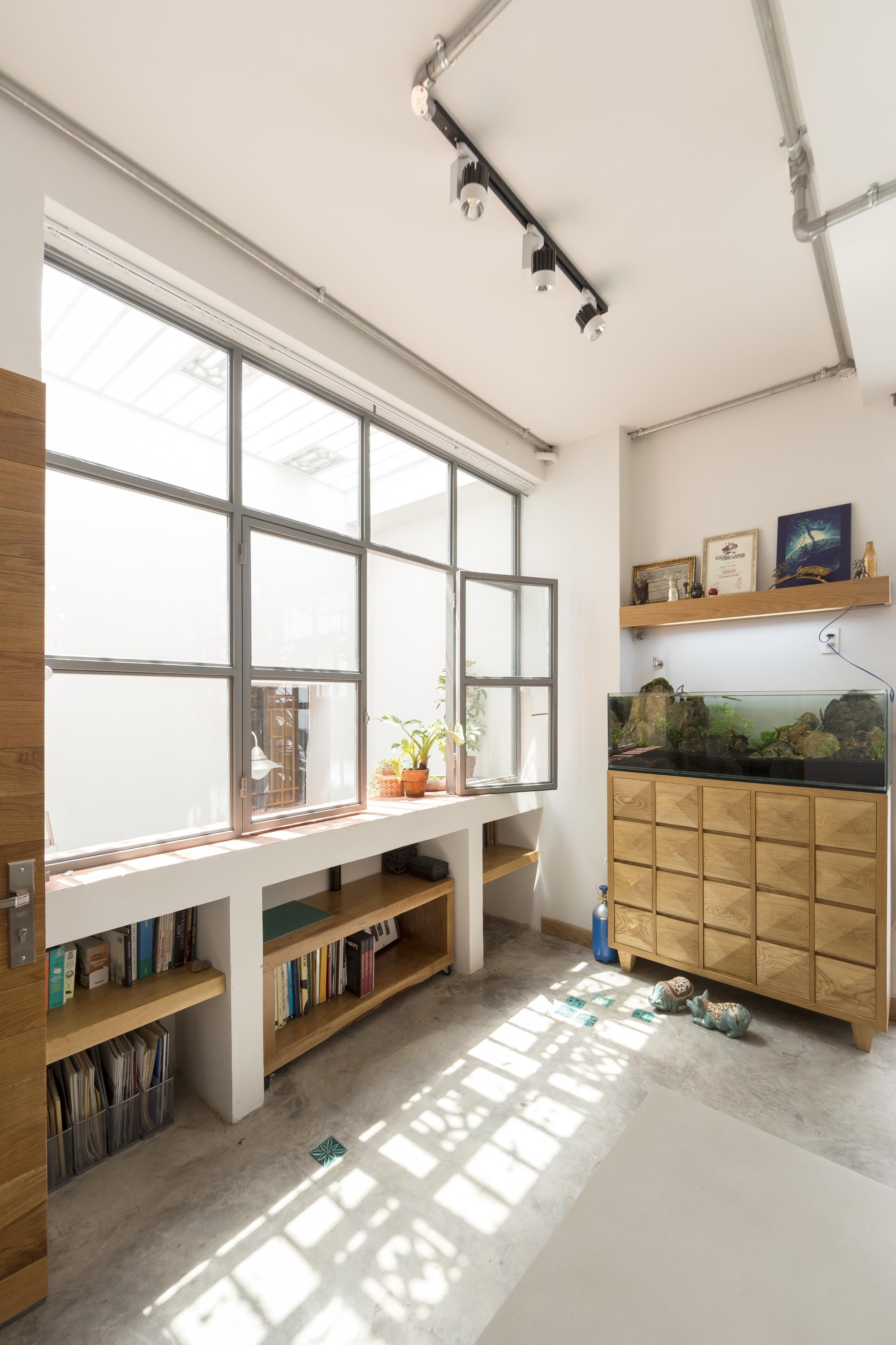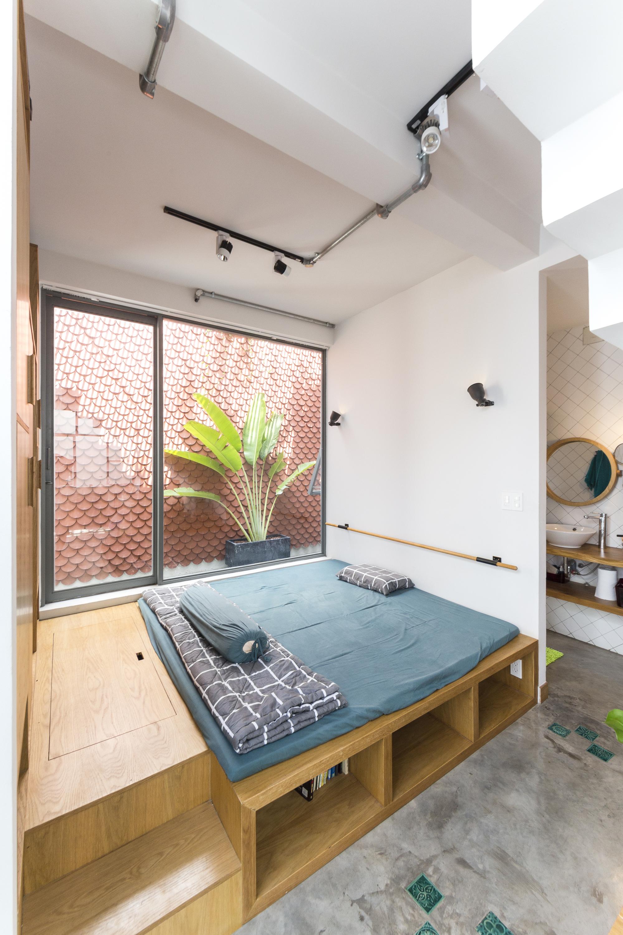 Là một nhà thiết kế, chủ sở hữu đóng góp rất lớn vào thiết kế nội thất, hoàn thành ngôi nhà của riêng mình với một bảng màu mộc mạc của sơn trắng, xi măng xám, và bê tông cùng với đất nung đỏ và đá. Một tính năng quan trọng khác của thiết kế là giếng trời rải rác với cây xanh. Những thứ này lấp đầy không gian bằng ánh sáng tự nhiên, một phương tiện kết hợp tất cả các màu sắc và vật liệu khác nhau của thiết kế.
