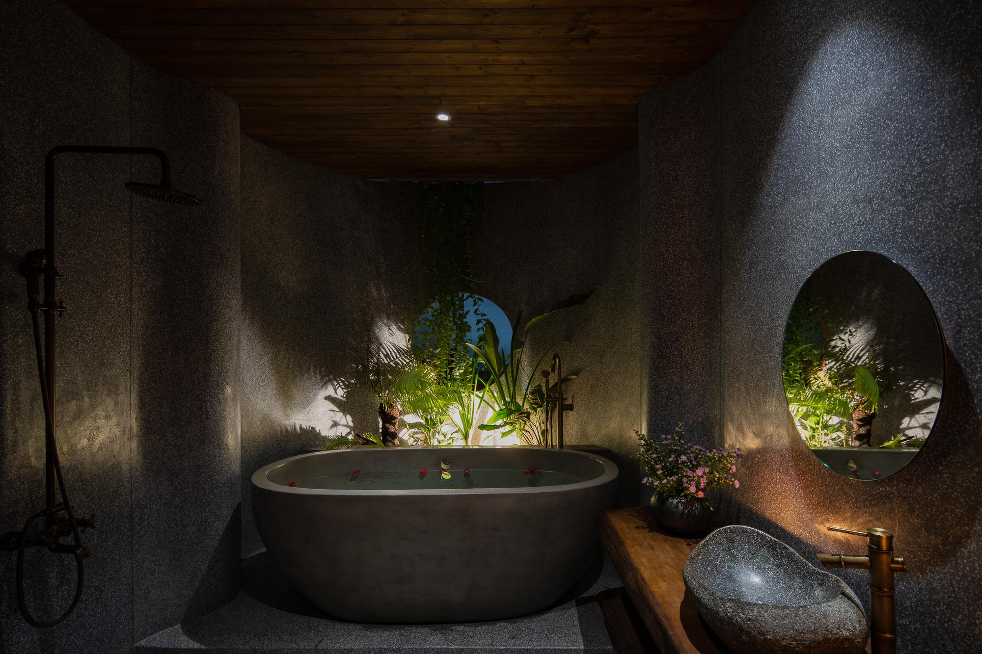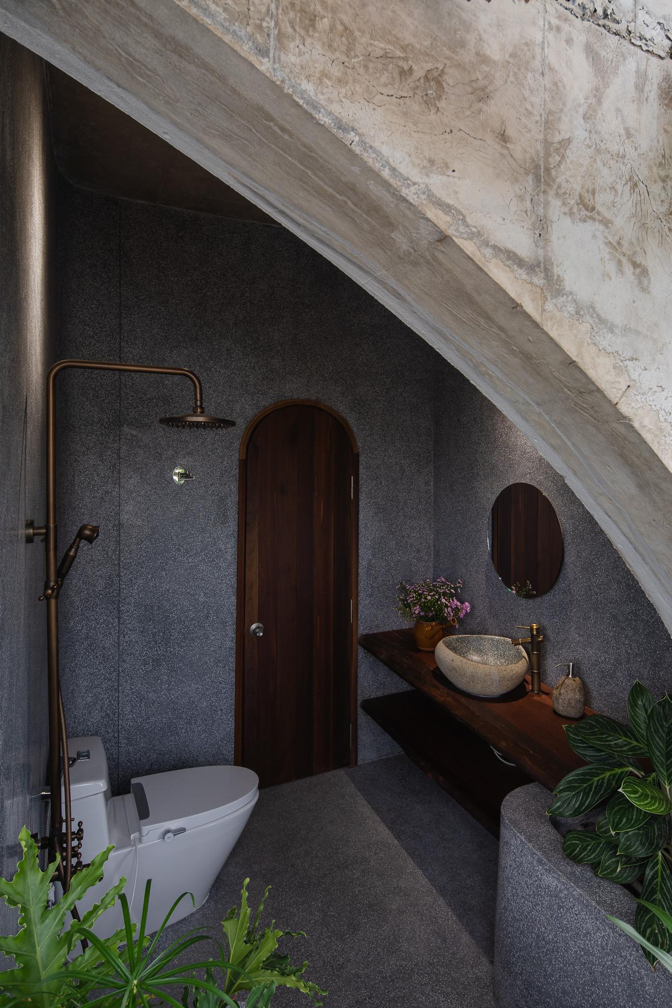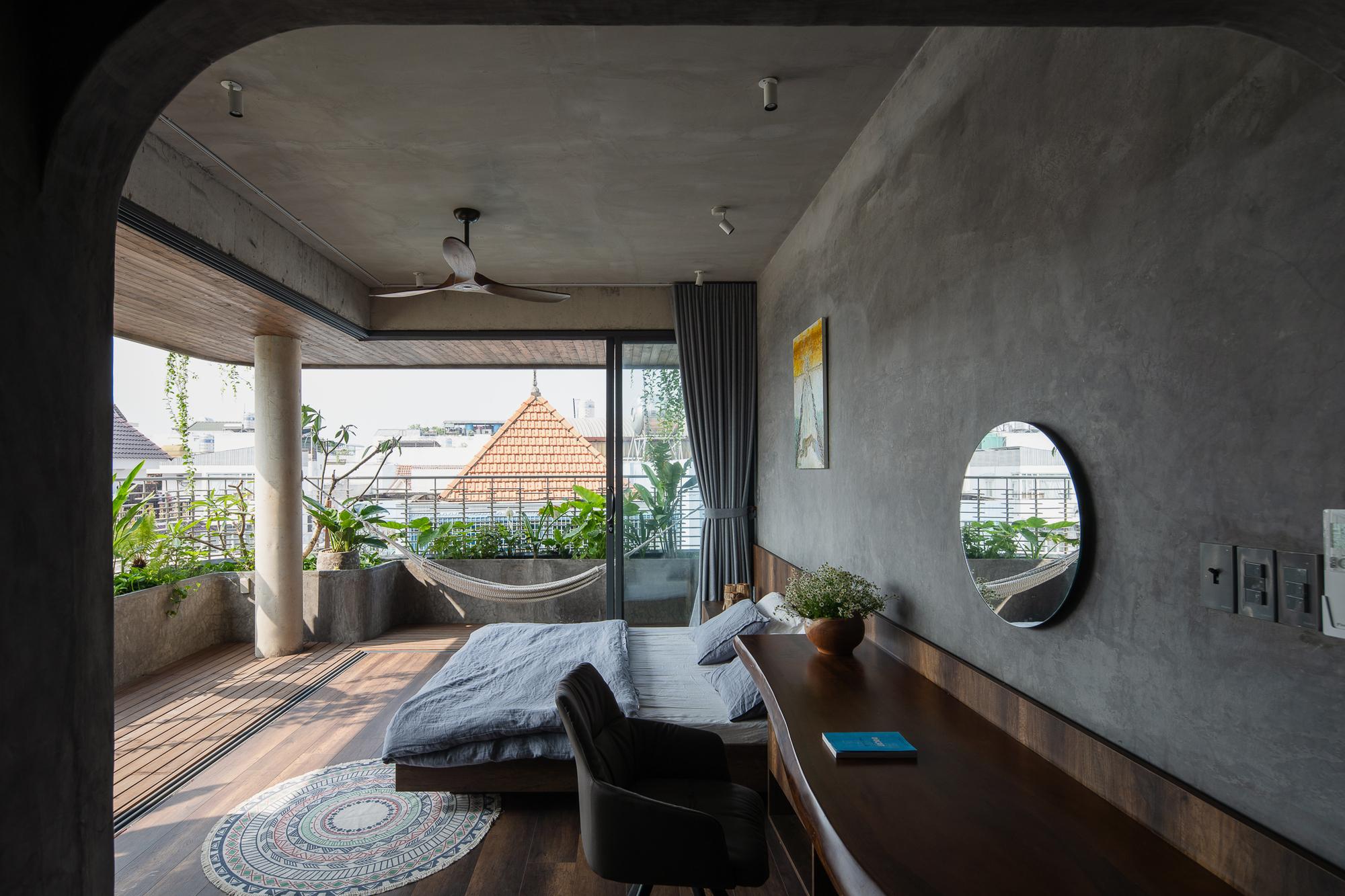 Gia chủ sống tại Sài Gòn và có thời gian làm việc bận rộn nên mong muốn ngôi nhà của mình nơi có không gian tận hưởng phong cách nghỉ dưỡng đích thực và trở thành điểm nhấn ấm áp giữa phố chợ đông đúc. Vì vậy, tất cả các phòng ngủ, bếp, phòng làm việc, phòng vệ sinh đều được chiếu sáng bằng đèn vàng và có view xanh mát.