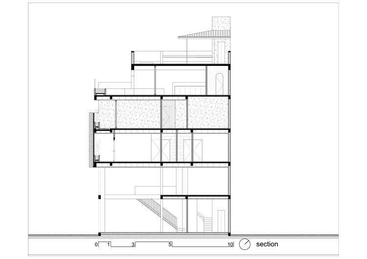 Mô tả văn bản do các kiến trúc sư cung cấp. Ngôi nhà được xây dựng trên mảnh đất 113m2. Mục đích là không gian bên ngoài tối giản, bên trong hiện đại và đầy đủ chức năng. Ngôi nhà thể hiện rõ cá tính của gia chủ: thực tế, không gian tràn ngập cây xanh và vật liệu thô mộc.