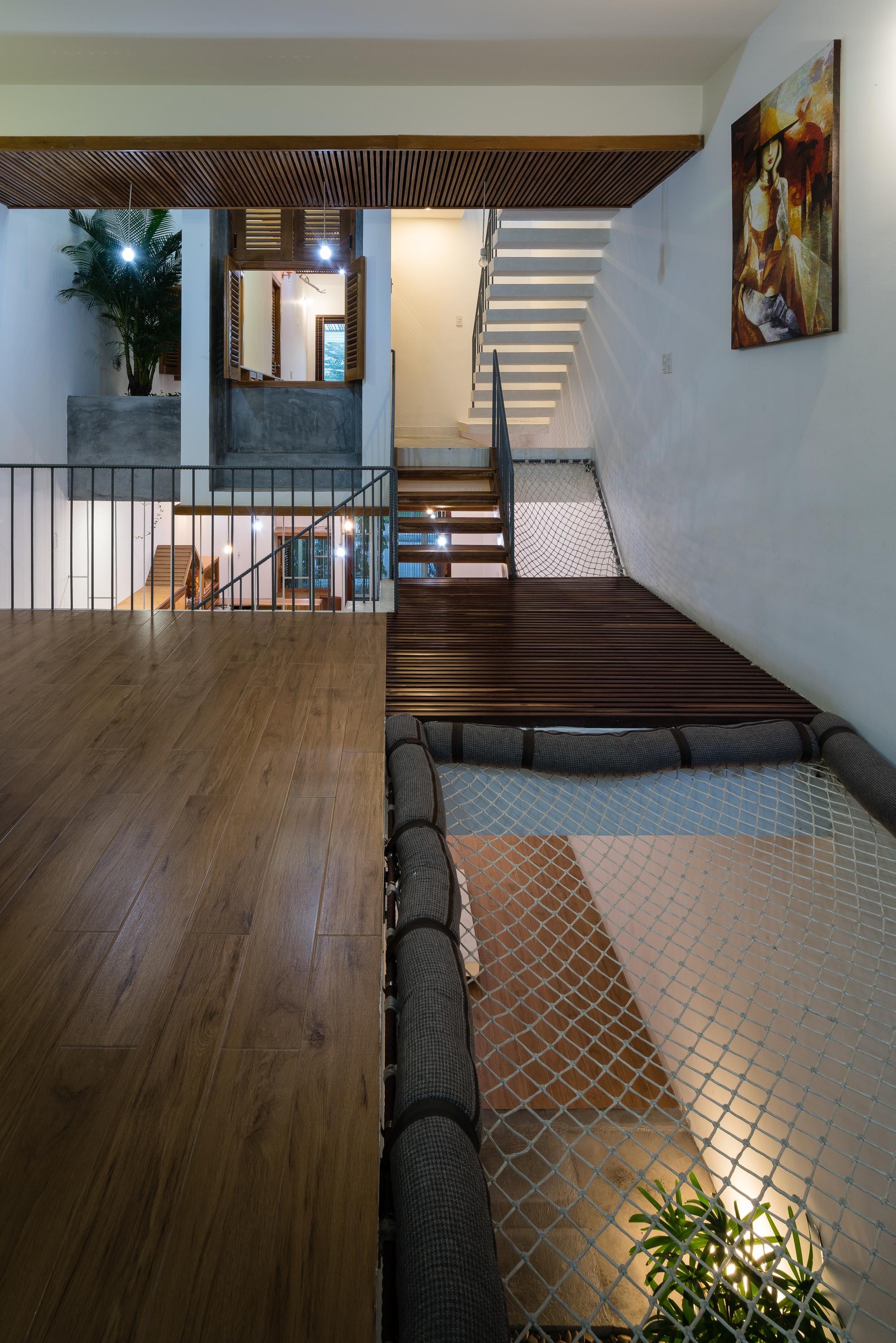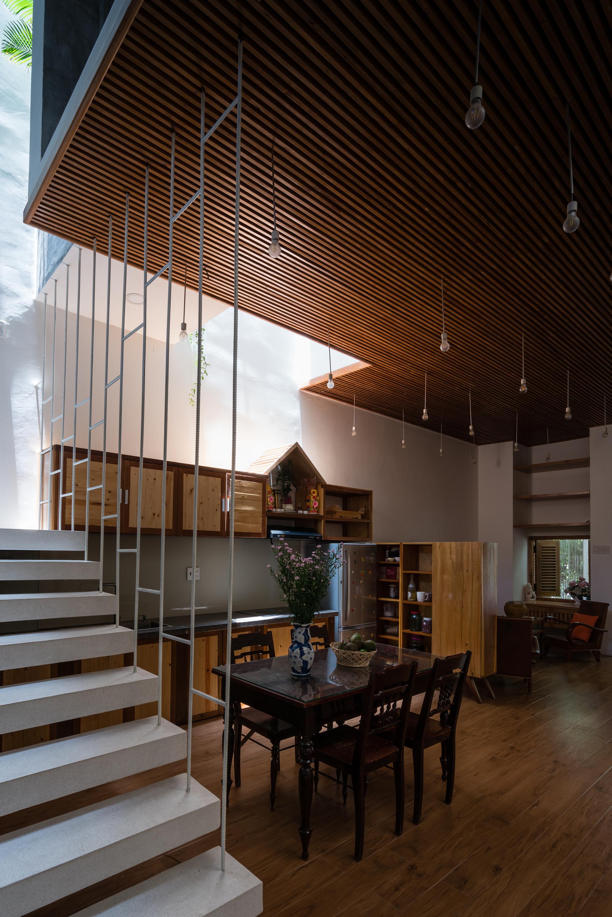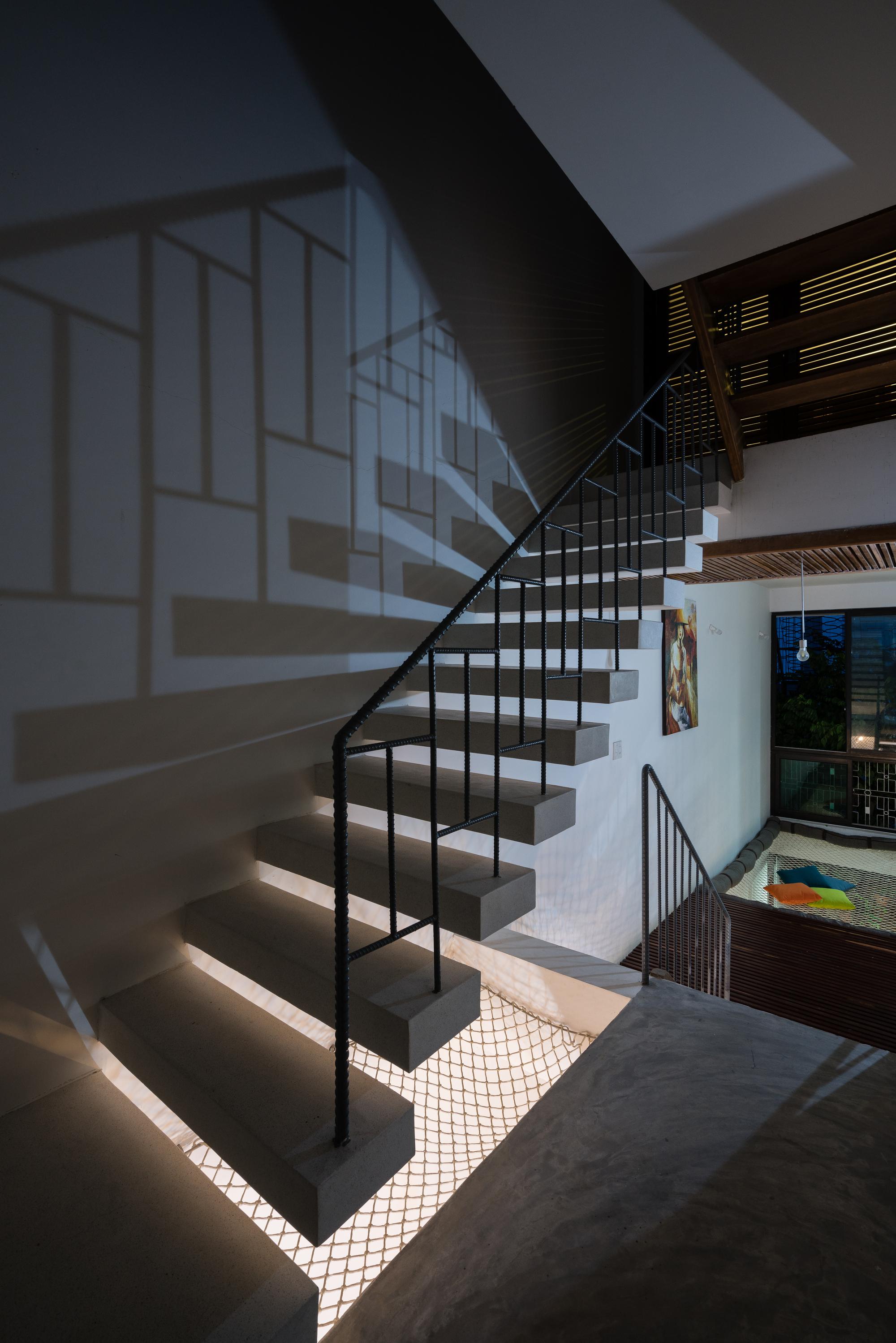 Các yếu tố ánh sáng và bóng tối cũng được truyền tải một cách thích hợp dựa trên nhận thức trực quan về sinh học cho từng nhóm tuổi của các thành viên trong gia đình. Từ bên ngoài vào bên trong, giữa các không gian, ánh sáng luôn đủ và các khu vực tối đủ sáng để cảm thấy thoải mái. Đó là sự phù hợp cho một ngôi nhà ống nhiệt đới ở vùng duyên hải Nam Trung Bộ Việt Nam.