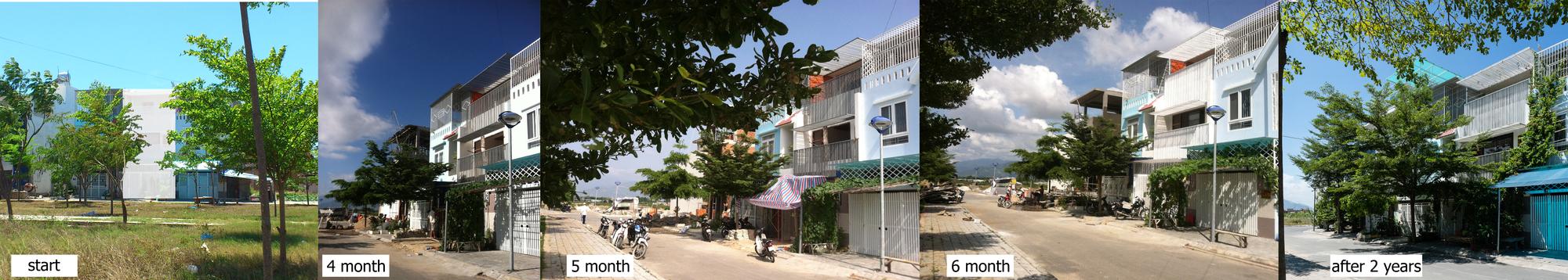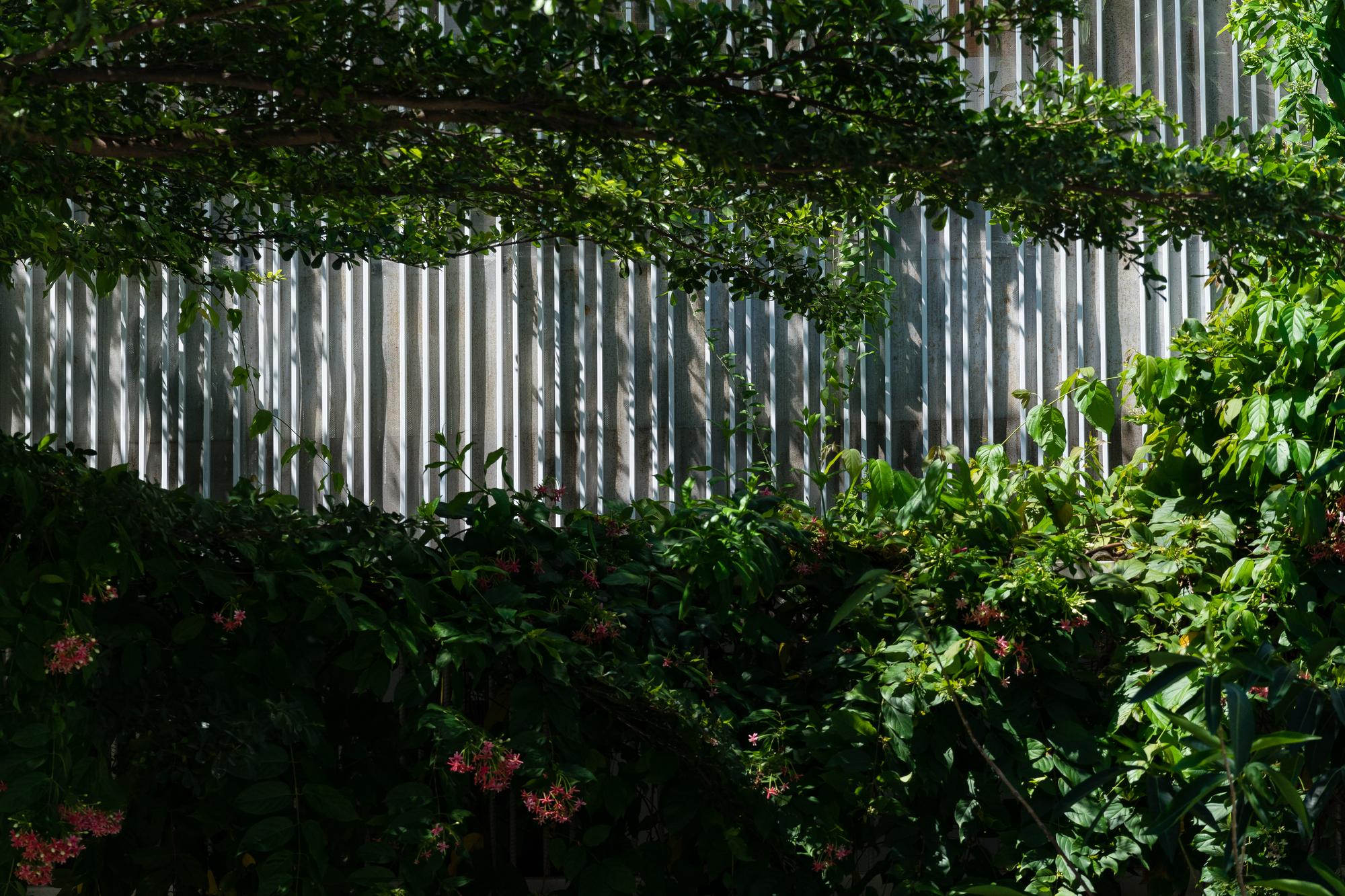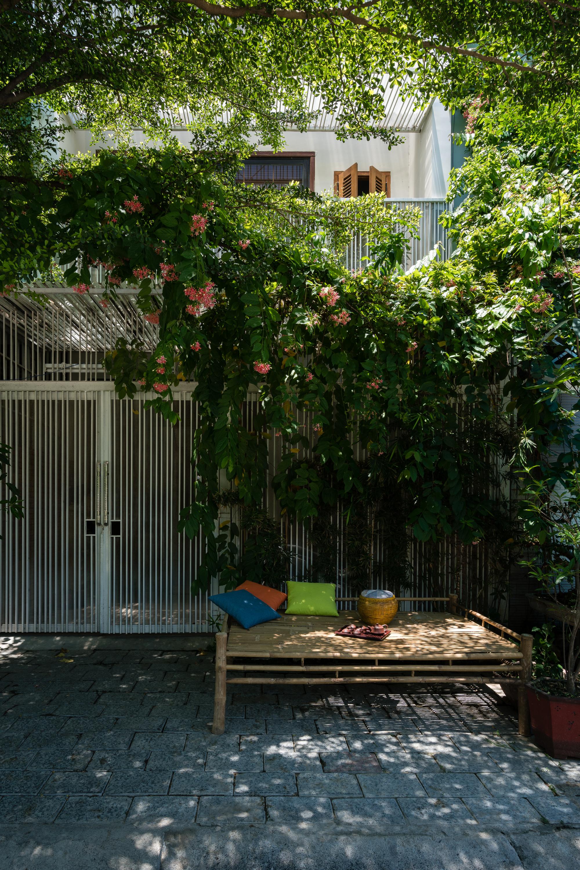 “Những bức ảnh này được chụp khi dự án được hoàn thành trong 2 năm. Trong bối cảnh đô thị hóa cực nhanh của Việt Nam, hai năm là đủ để nhận thức rõ sự tương tác của dự án với con người và môi trường ”. Chúng tôi là những người thiết kế và khách hàng - là những thế hệ trẻ, đã đến với nhau. Địa điểm này là đất có mặt tiền chính về phía tây trong một khu đô thị mới. Đối diện là vùng đất cỏ dại được trồng thành một công viên nhỏ trong tương lai.