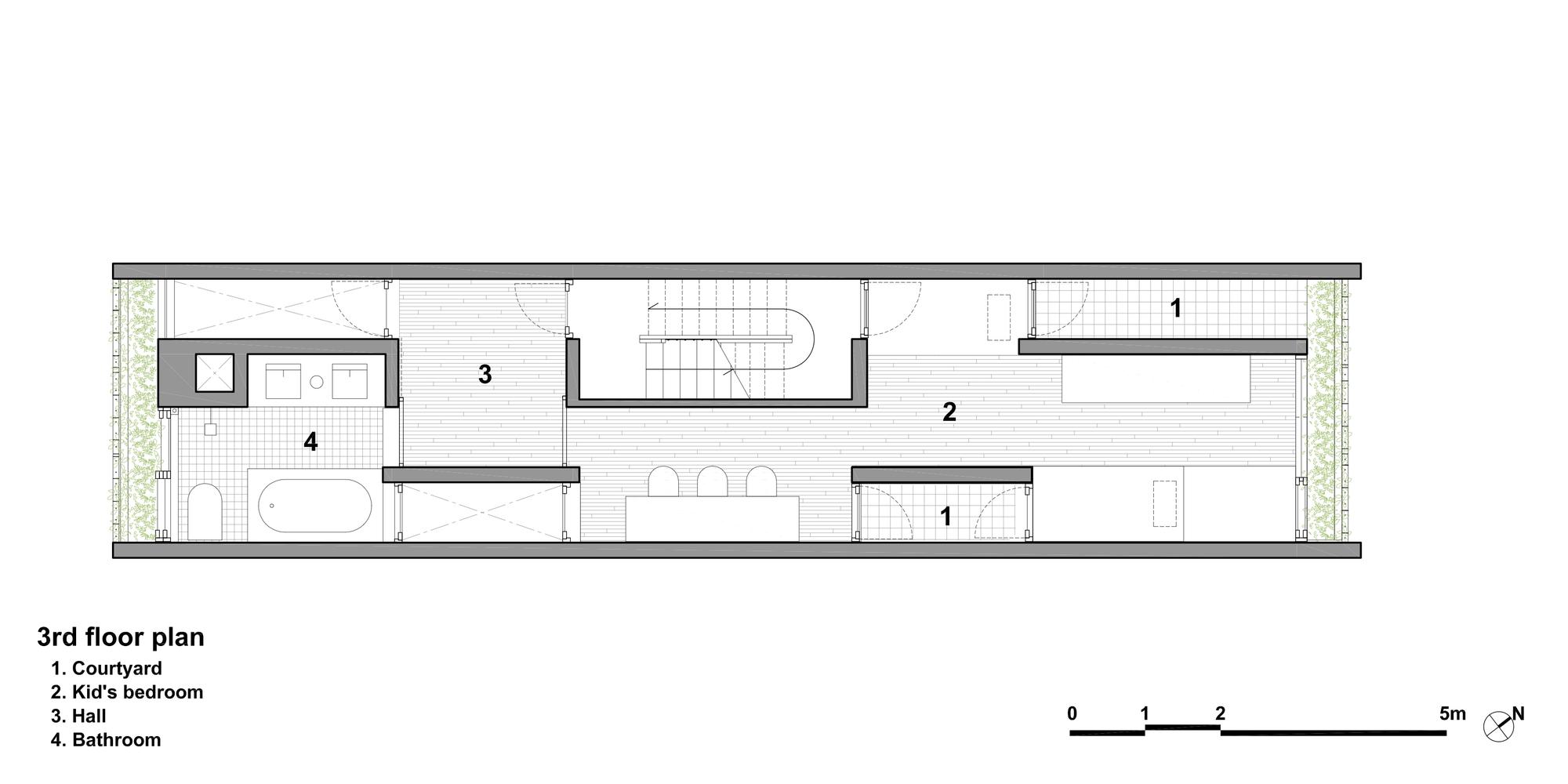 Ngôi nhà hơi thở dành cho một gia đình, nằm ở trung tâm thành phố Hồ Chí Minh . Khu đất rộng 3,9m và sâu 17,8m, chỉ có thể tiếp cận bởi một con hẻm nhỏ với môi trường xung quanh đông đúc. Trong khu dân cư cực kỳ dày đặc này, chúng tôi đã nhắm đến việc thiết kế một ngôi nhà giới thiệu môi trường bên ngoài trong khi vẫn đảm bảo sự riêng tư.
