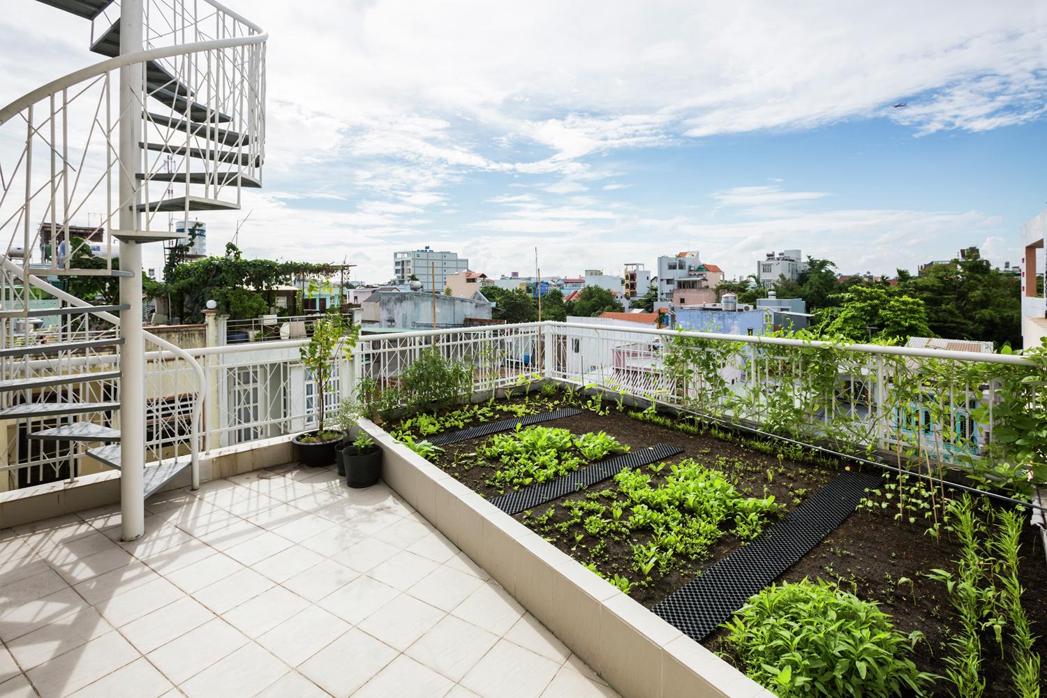 Ban công rất phổ biến trên các ngôi nhà Việt Nam, nhưng thường có hình chữ nhật rộng 1 mét, chỉ cho phép một hoặc hai chiếc ghế. Các cửa ra vào bên ngoài và cửa sổ và các cạnh ban công của ngôi nhà này được trải ra ở các góc để cho phép bàn ghế ở đầu 3 mét rộng của ban công.