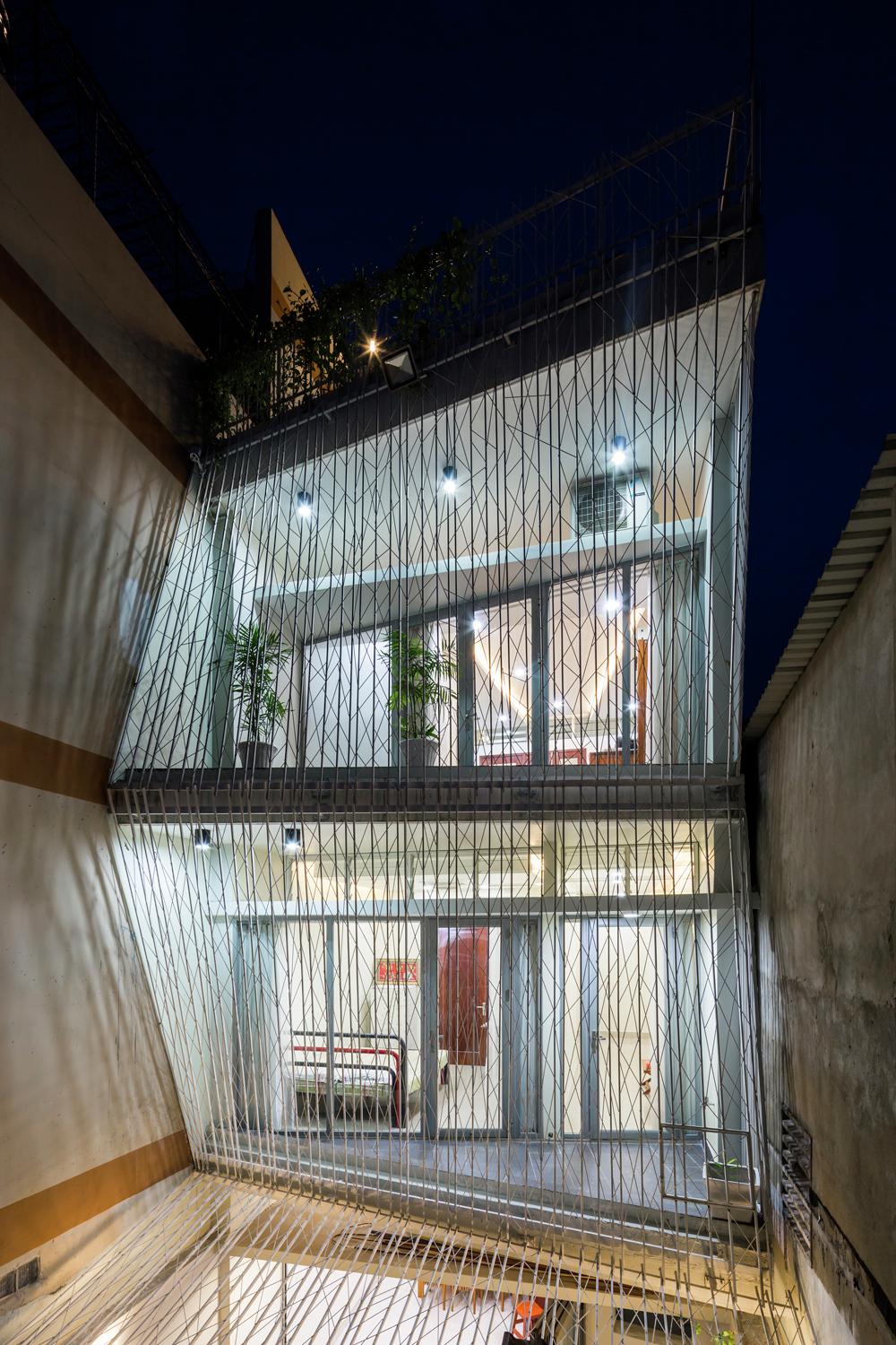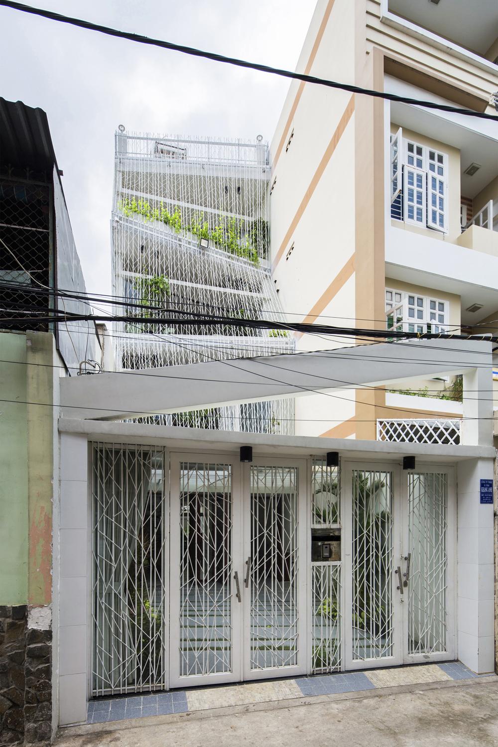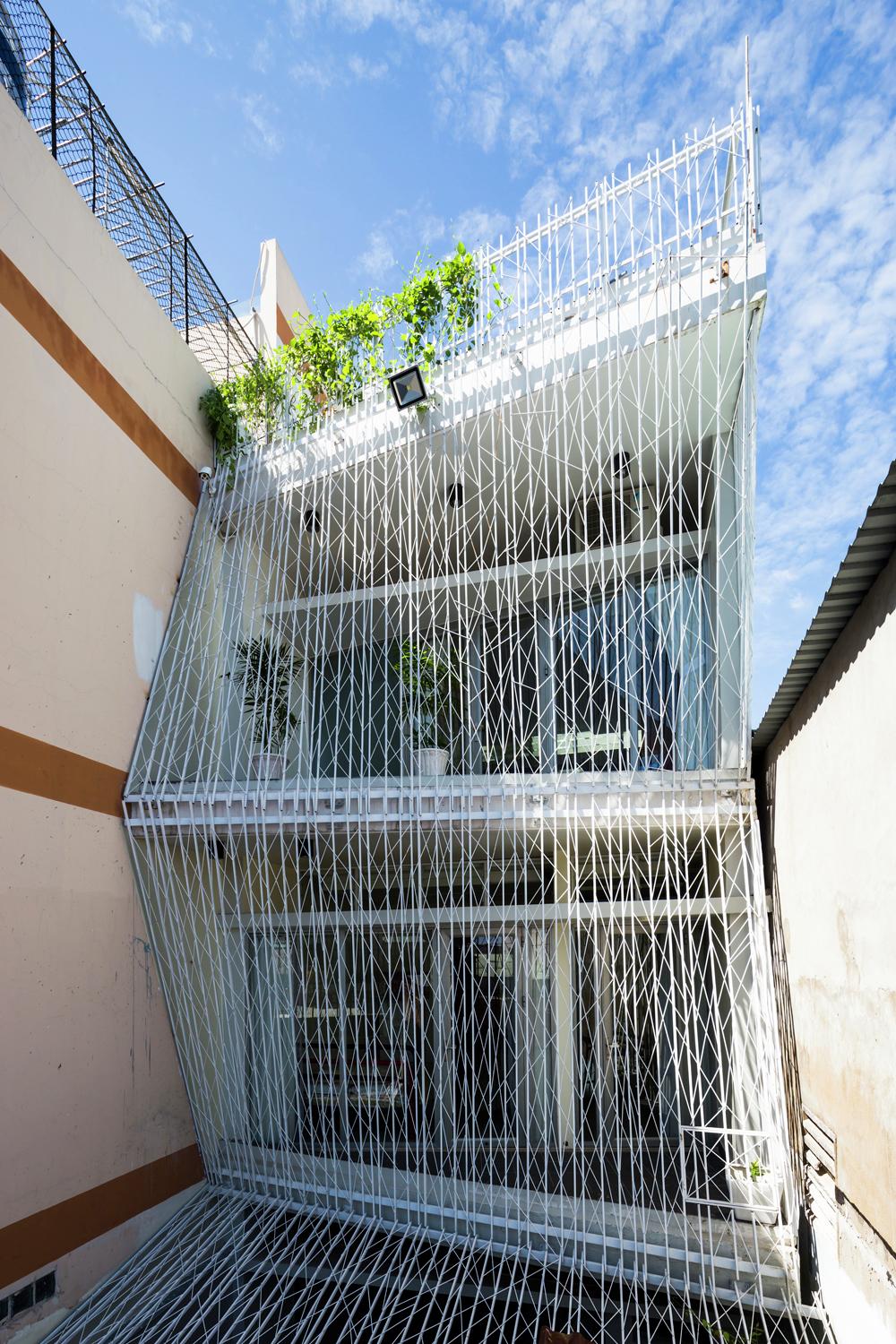 Cửa sổ và cửa ra vào được mở vào ban ngày ở hầu hết các ngôi nhà Việt Nam để thông gió, nhưng chúng phải đóng cửa vào ban đêm để đảm bảo an ninh. Trong hầu hết các ngôi nhà, lưới thép hoặc màn hình được cung cấp ở bên trong của tất cả các cửa sổ và cửa ra vào. Trong ngôi nhà này, lưới thép bao bọc ngôi nhà ở bên ngoài của tất cả các ban công, vì vậy cửa sổ và cửa ra vào có thể vẫn mở bất cứ lúc nào nếu muốn. Hiệu ứng giống như sống trong lồng chim thay vì các tế bào tù. Các màn hình thép bên ngoài ban công do đó mở rộng các phòng để bao gồm các ban công.