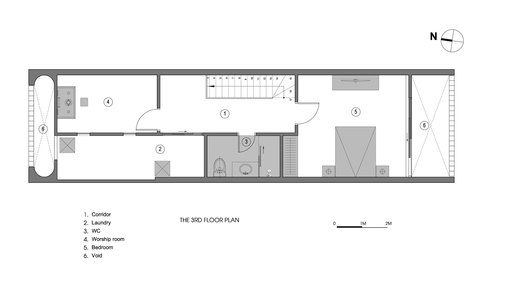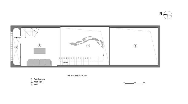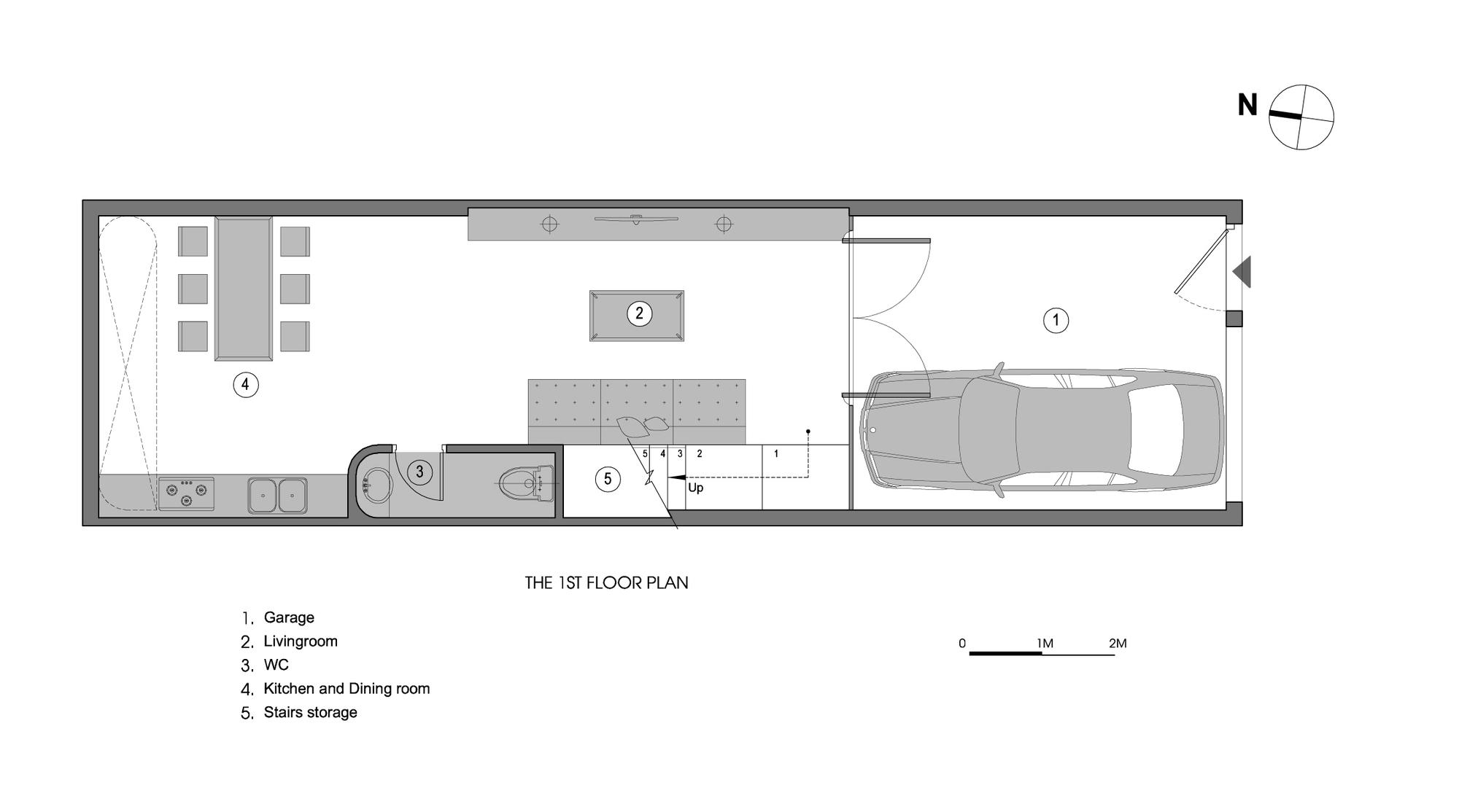 Mô tả văn bản do các kiến trúc sư cung cấp. Chúng tôi đã gặp khách hàng có yêu cầu thiết kế một ngôi nhà mới rộng 76m2 (rộng 4,5m, dài 17m) tại khu đô thị. Chủ nhân mong muốn có một ngôi nhà ba gian đủ chỗ cho một gia đình bốn người, một cặp vợ chồng trẻ và hai con. Trước khi lên ý tưởng, họ đưa ra một số yêu cầu cần tuân theo: một ngôi nhà khác biệt so với những ngôi nhà trong khu vực xung quanh và một ngôi nhà có sự kết nối chặt chẽ giữa các thành viên trong gia đình.