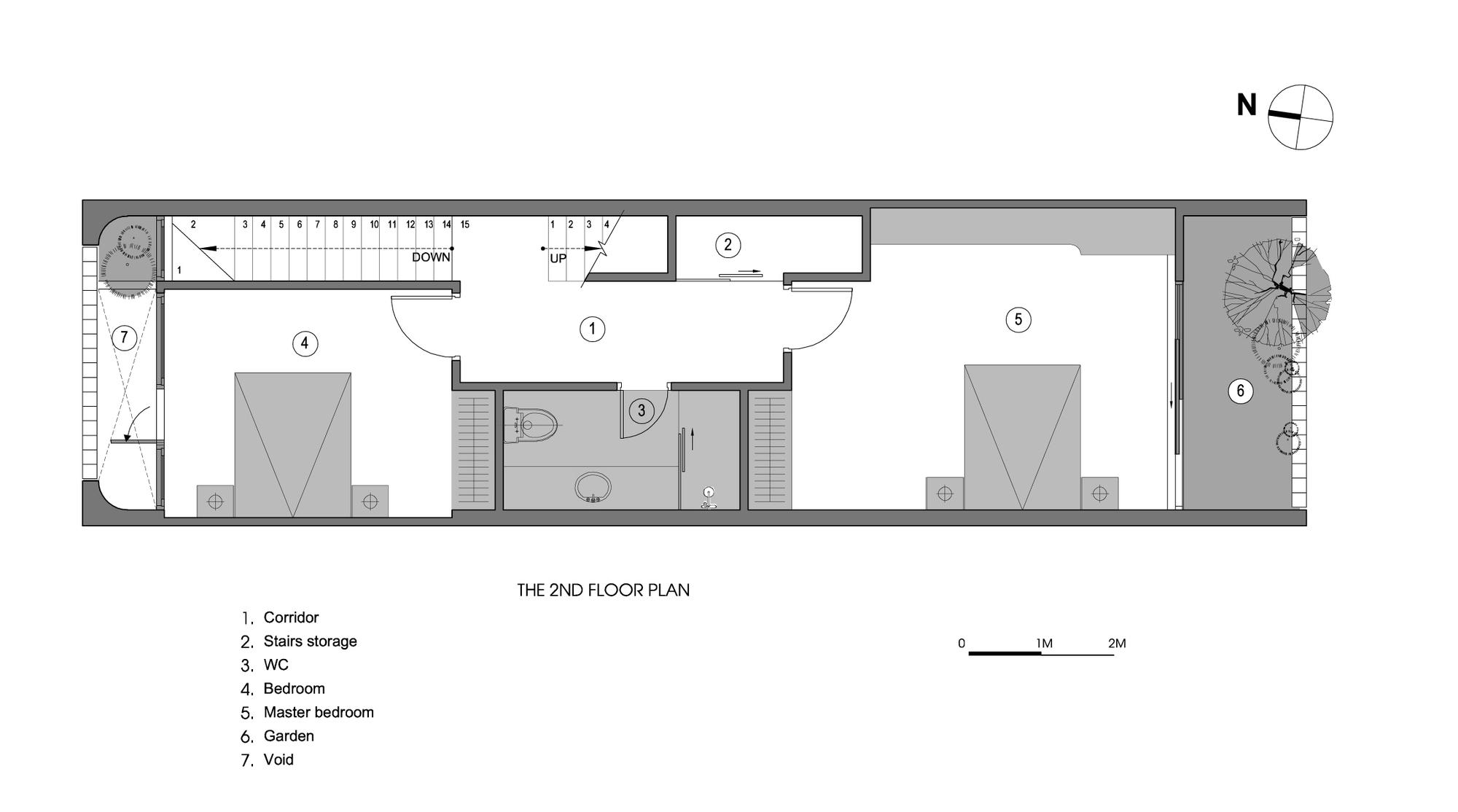 Ý định tiếp theo là thiết kế một lối sống mới cho gia đình họ bằng cách tạo ra nhiều khoảng trống trong nhà. Vì mục đích này, chúng tôi đã thiết kế một trung tâm ở giữa tầng một và tầng hai. Bằng cách này, nó có một khoảng trống lớn liên kết giữa phòng khách và phòng sinh hoạt gia đình để những không gian đó rộng hơn để sử dụng và có thể sử dụng linh hoạt cho các hoạt động sinh hoạt. Ngoài ra, giữa các không gian khác trong nhà cũng có những khoảng trống, đây là khu vực chung để các thành viên trong gia đình cùng sinh hoạt, chia sẻ nhằm xây dựng mối liên kết bền chặt giữa họ. Ngoài ra, các khoảng trống đã mang ánh sáng ban ngày vào nhà và tạo ra hệ thống thông gió tự nhiên đầy đủ giúp cho người ở có nhiều ánh sáng mặt trời và không khí trong lành.